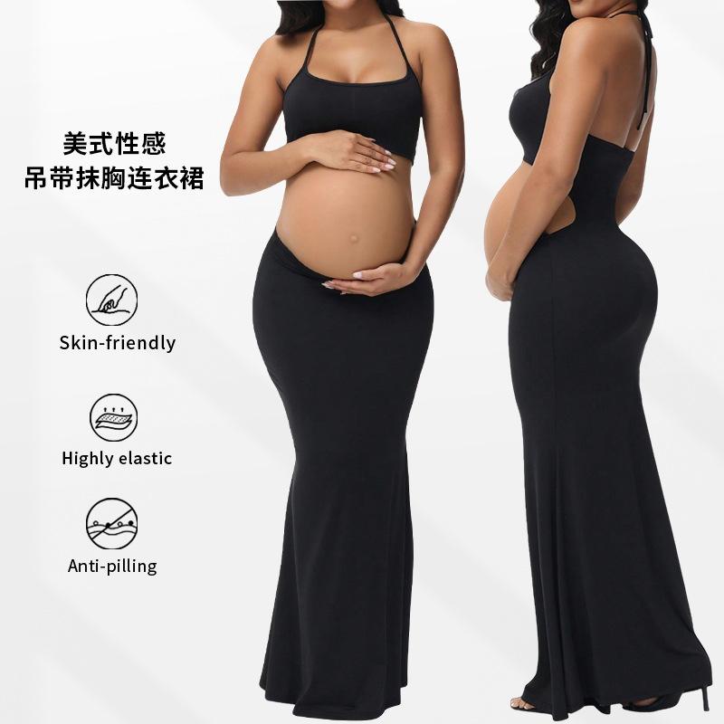 Europeo y Americano Transfronterizo 2025 Ropa para Fotos de Maternidad Nuevo Estudio Fotográfico Fotografía Sexy Ajustado Elegante Tirantes Largo
