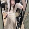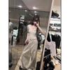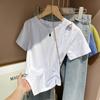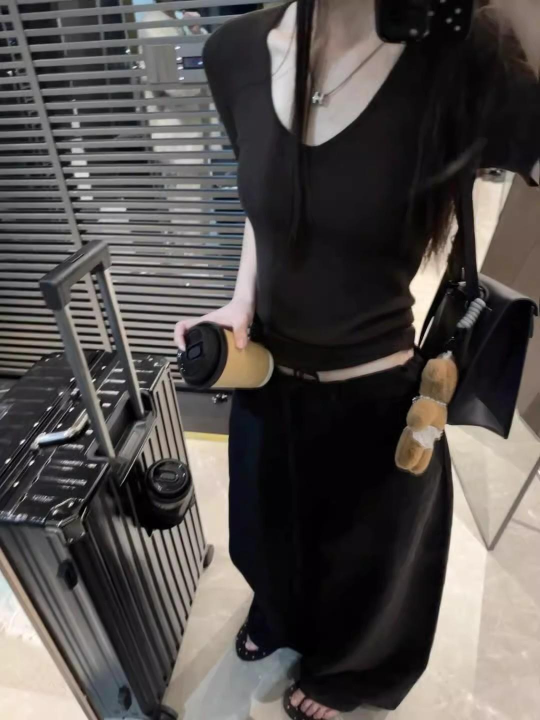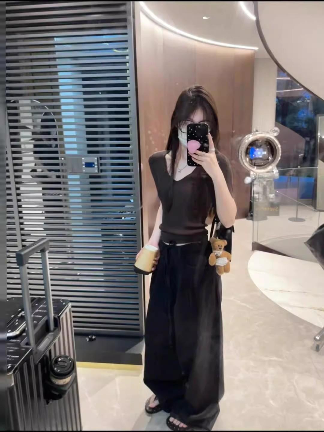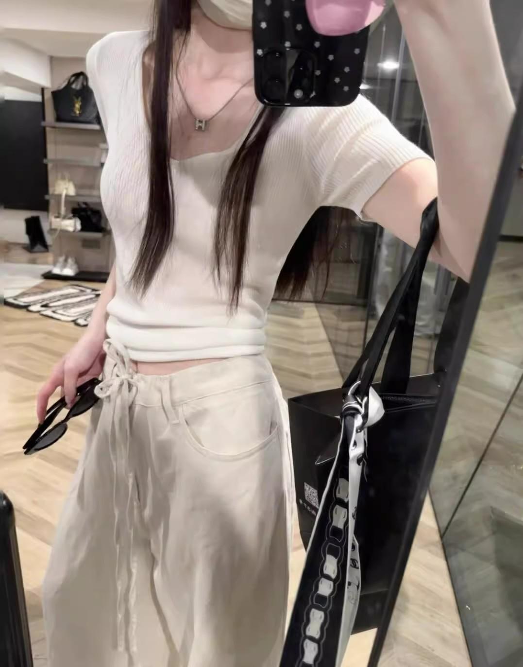 Camiseta Marrón de Corte Slim con Cuello en V Profundo y Manga Corta para Mujer Verano 2025 Tejido de Punto Estilo Coreano Elegante Clavícula Top de Media Manga