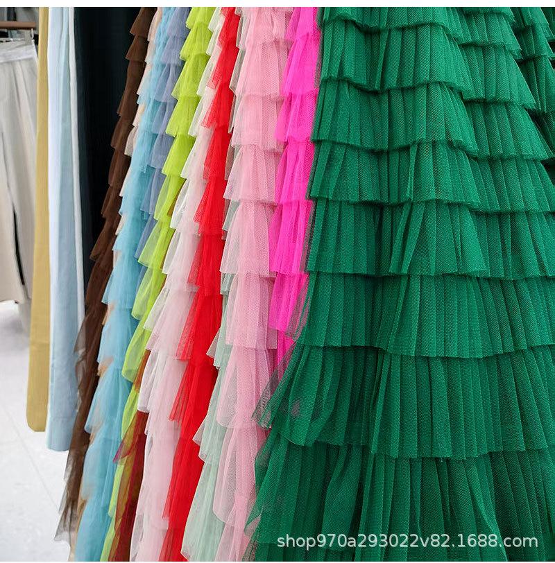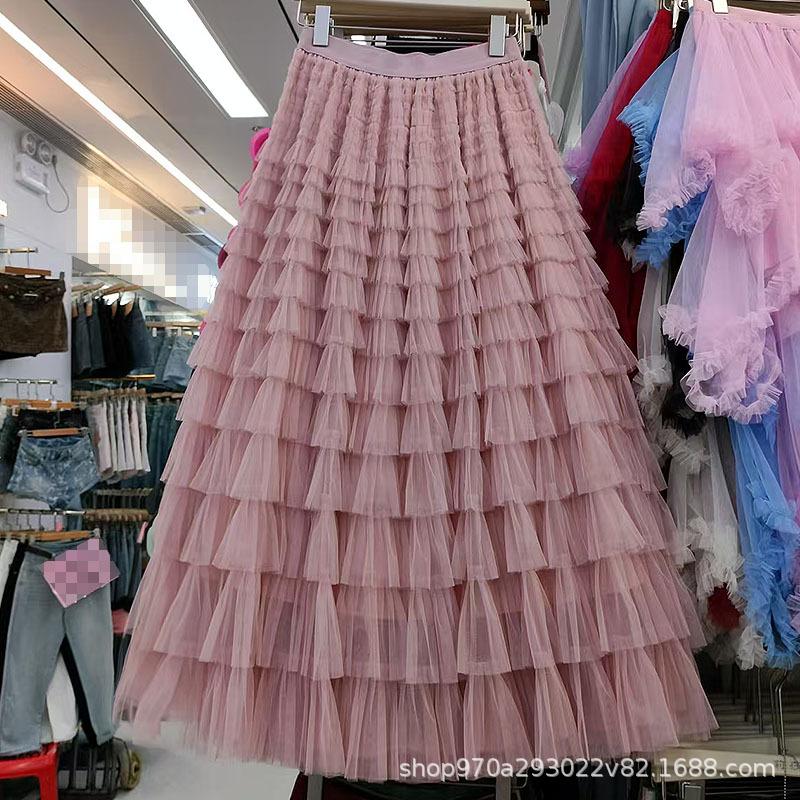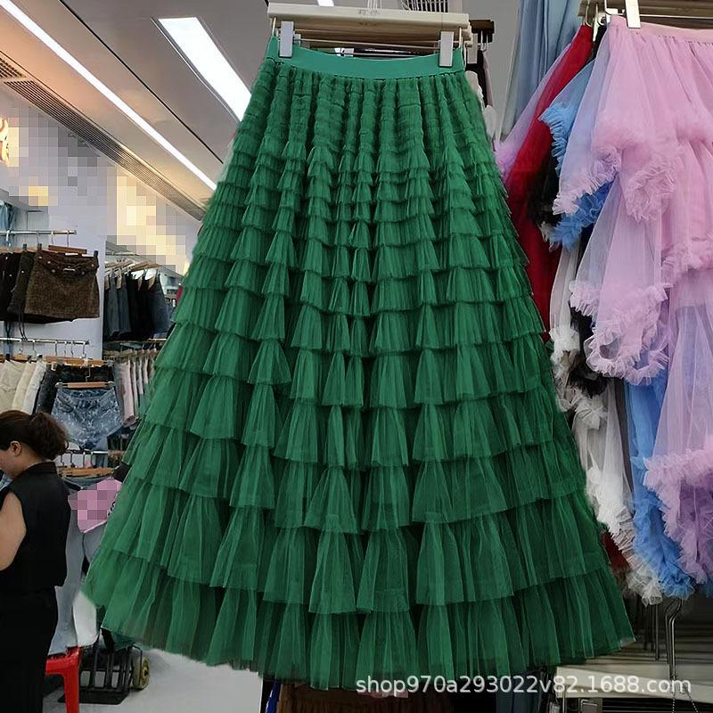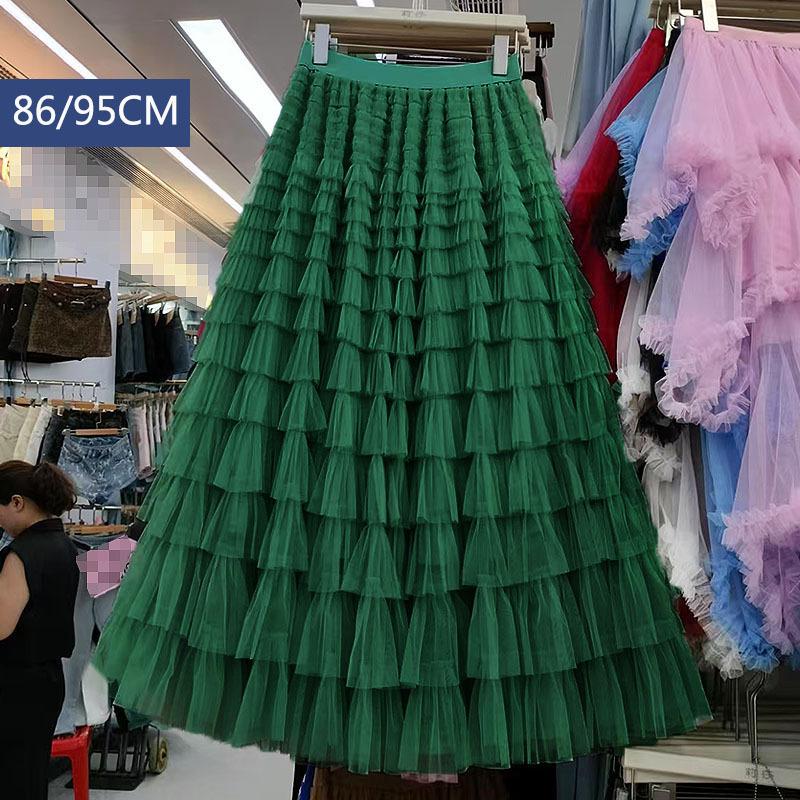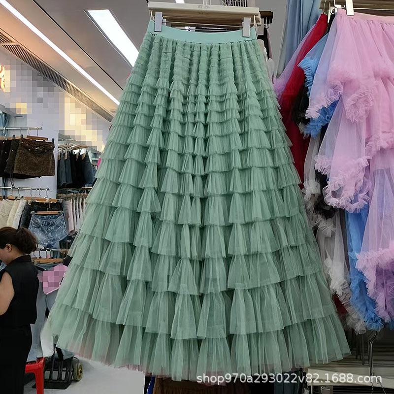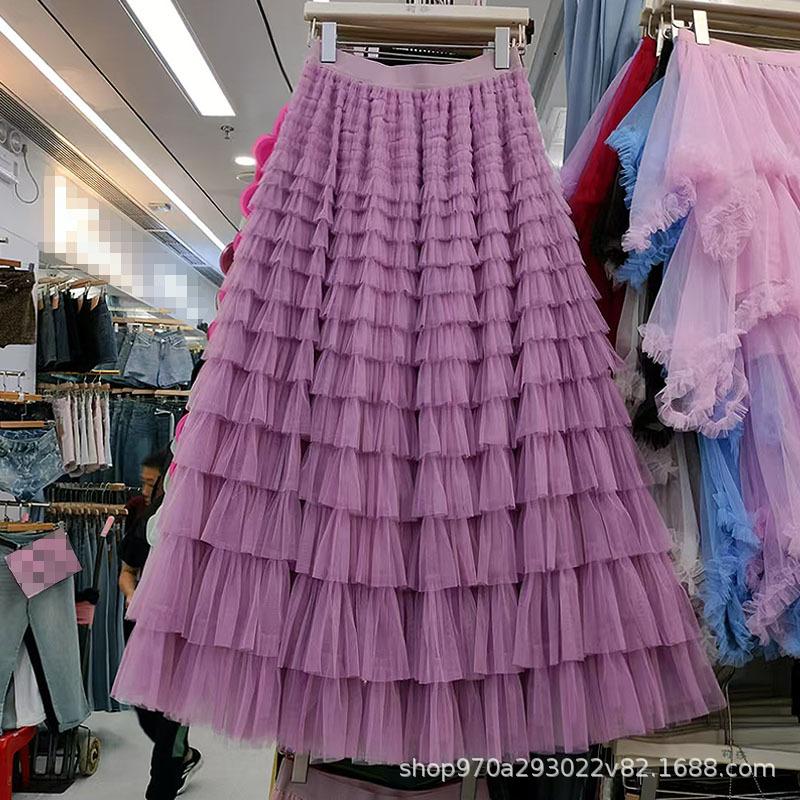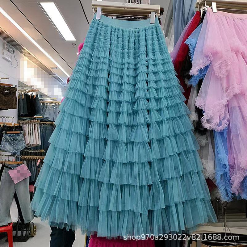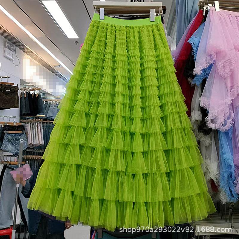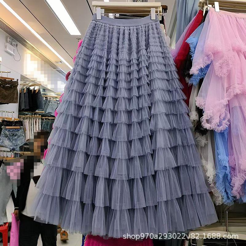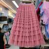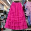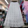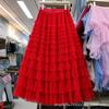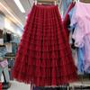 Falda de malla lasaña de comercio exterior talla grande cintura alta falda midi temperamento falda de vuelo grande falda súper hada falda pastel