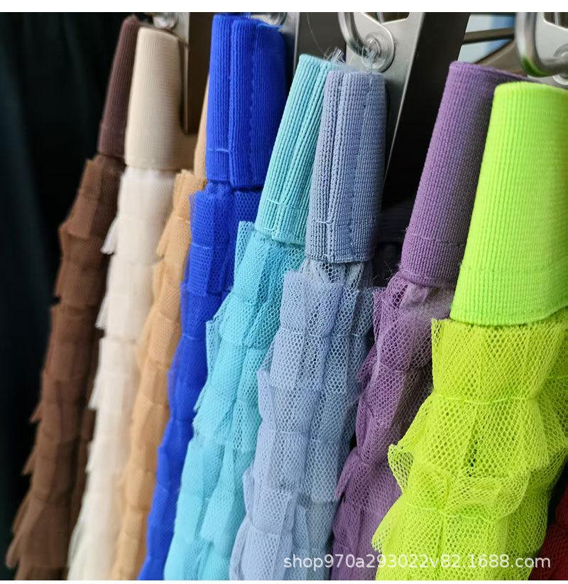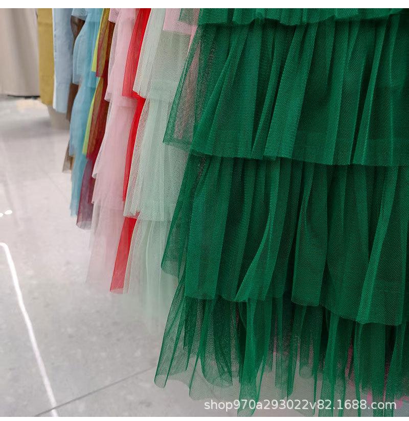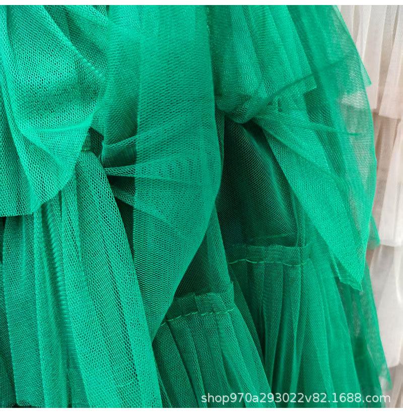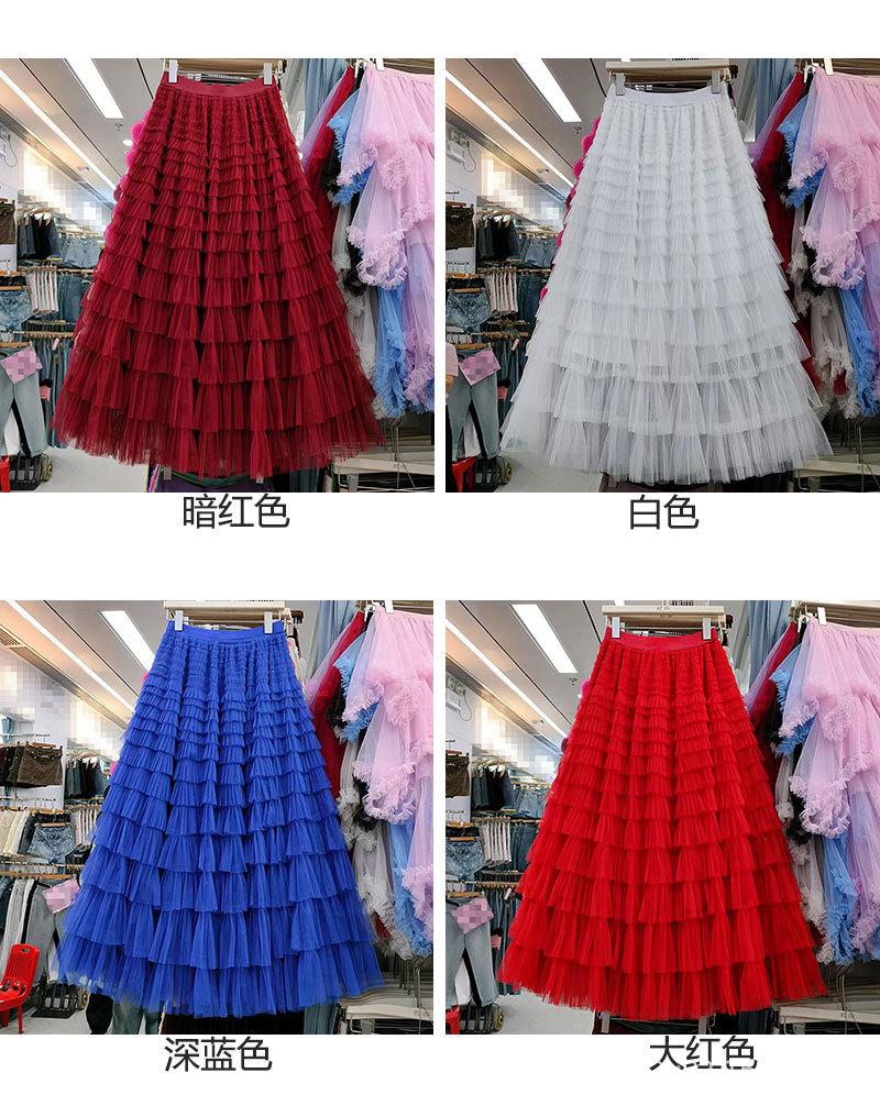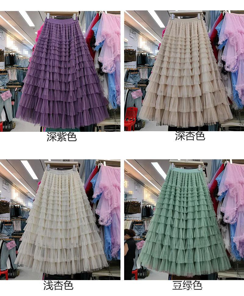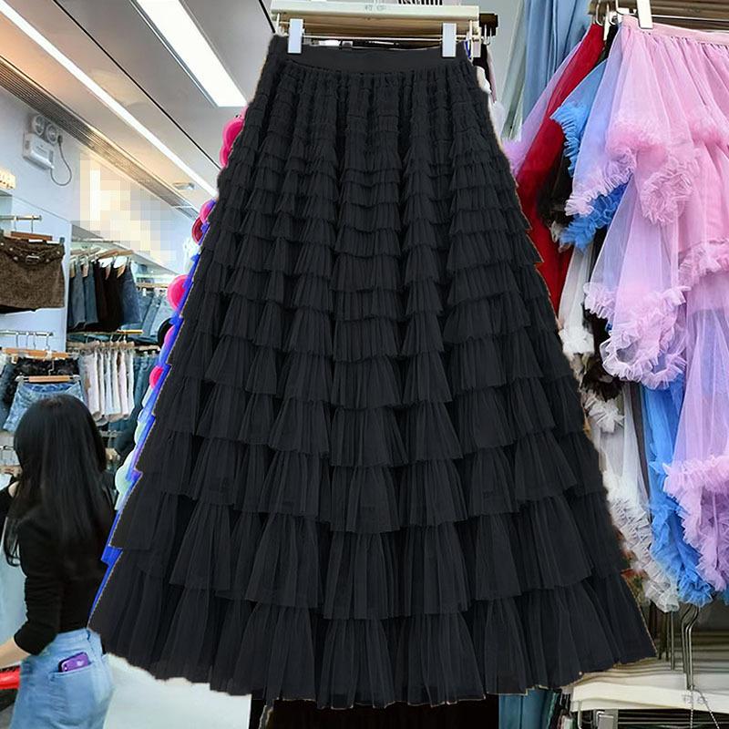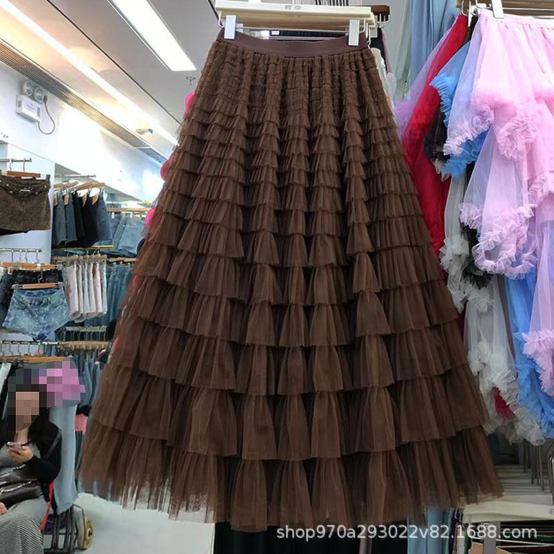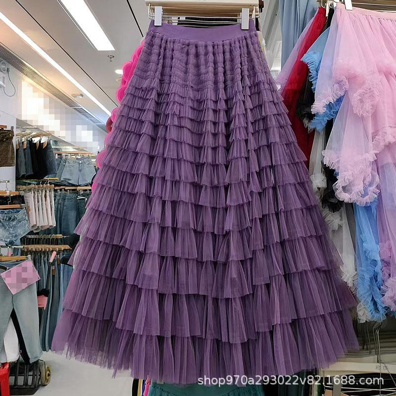Falda de malla lasaña de comercio exterior talla grande cintura alta falda midi temperamento falda de vuelo grande falda súper hada falda pastel