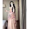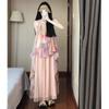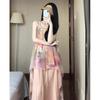 Vestido de Tirantes Pintura al Óleo Atmósfera Francesa para Mujer Verano Temperamento Estilo Vacaciones Junto al Mar Malla Falso Dos Piezas Falda Larga