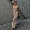 2025 Algodón Cuello en V Sin Mangas Top Chaleco Pantalón Traje de Mujer Europeo y Americano Nuevo Color Sólido Elegante Commuter Conjunto de Dos Piezas
