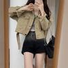 Chaqueta de Mezclilla Corta de Primavera y Otoño Estilo Americano para Mujer, Top de Manga Corta Estilo Petite Hong Kong de Moda Urbana Veraniega, Ropa Exterior Ligera