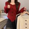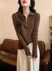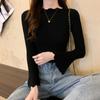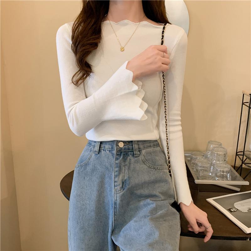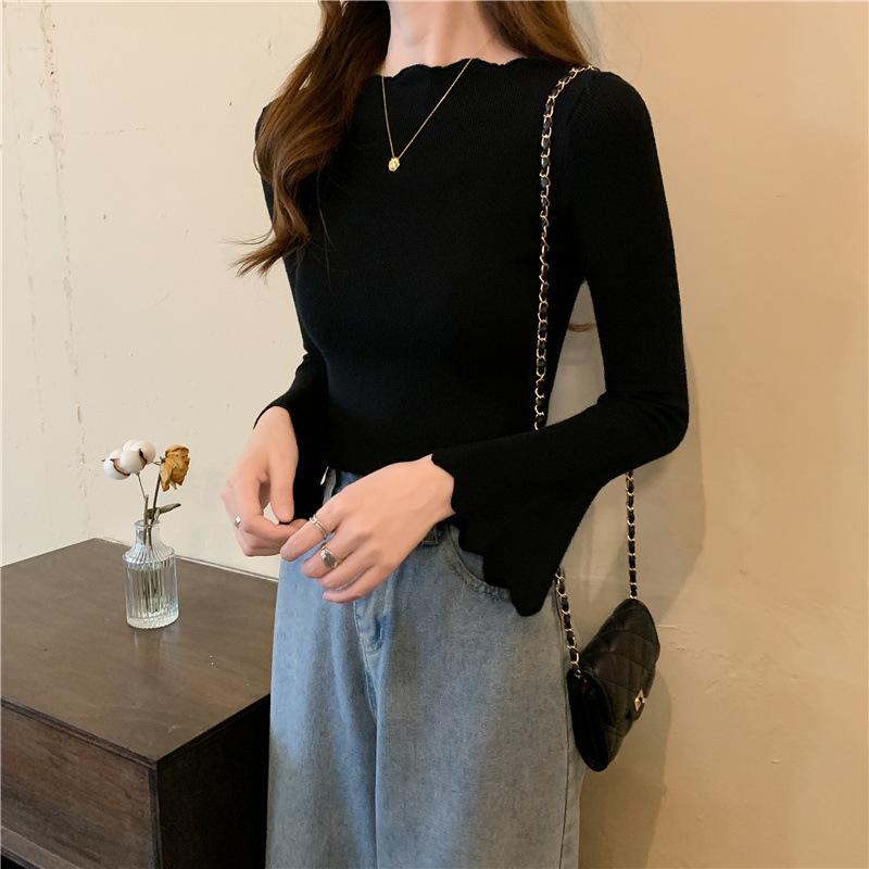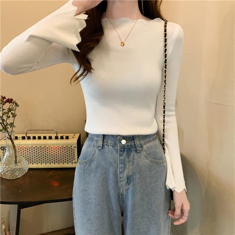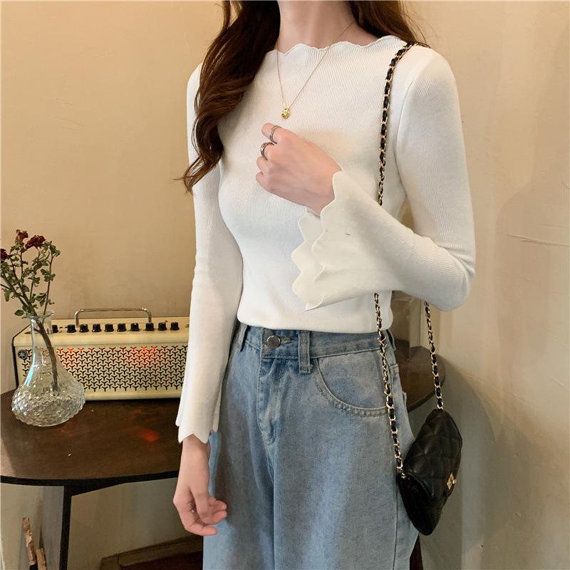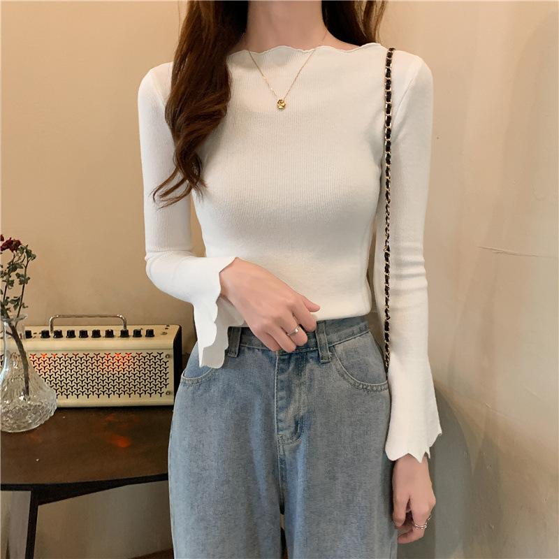 Otoño e Invierno Nuevo Suéter Base de Manga Larga Ajustado Diseño de Estilo Occidental Nicho Suéter de Manga Trompeta para Mujer