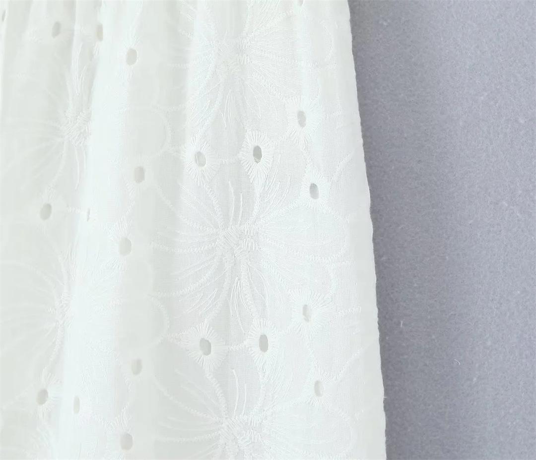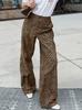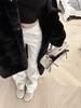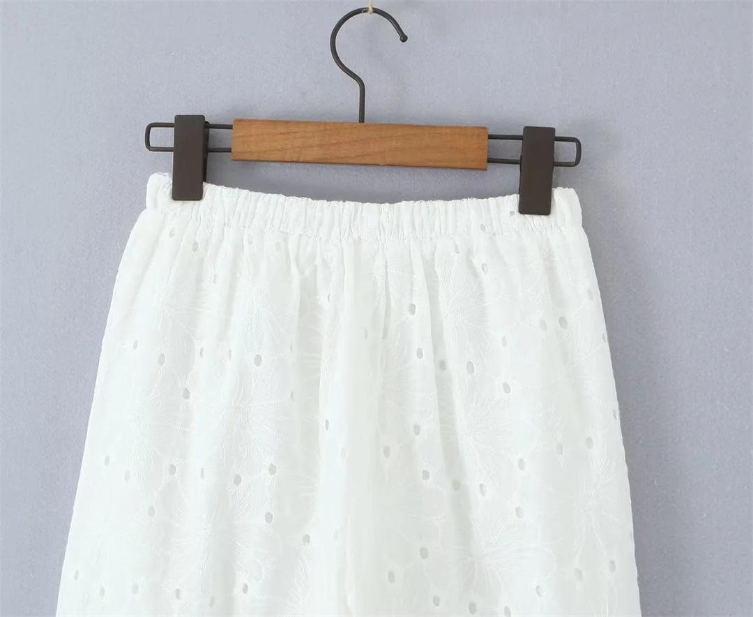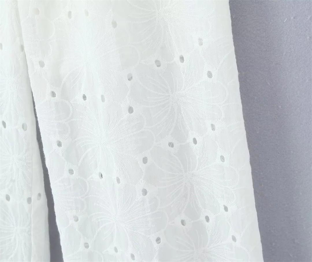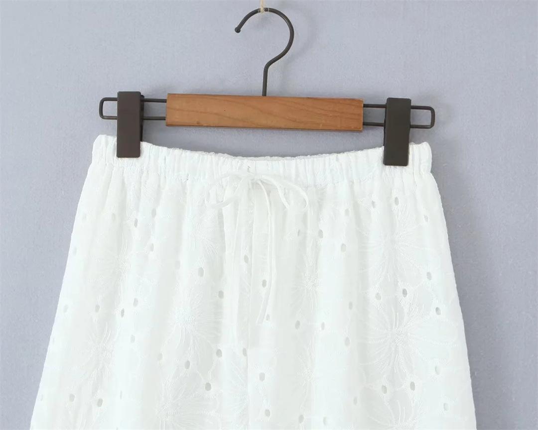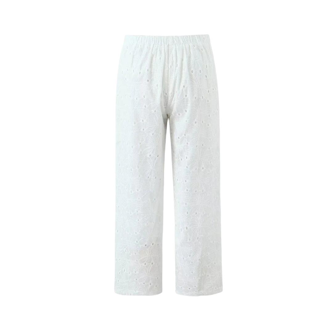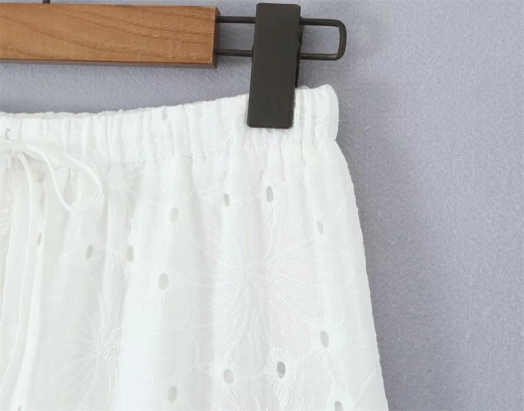 Pantalones rectos elásticos de tiro bajo con cordón estilo europeo y americano para mujer Diseño nicho Bordado Recorte Sexy Casual Blanco