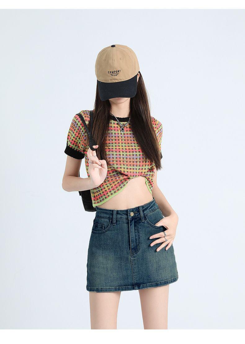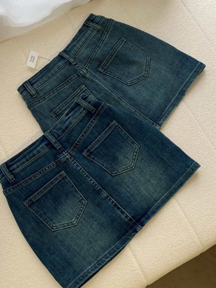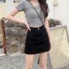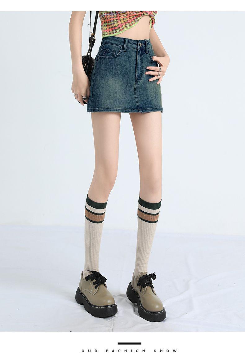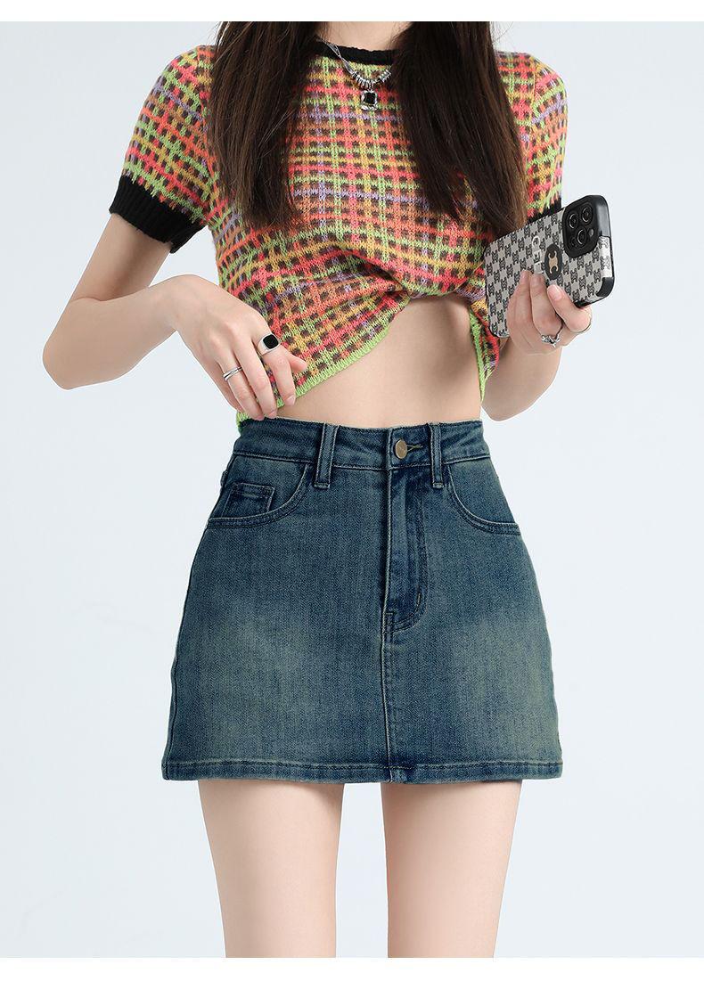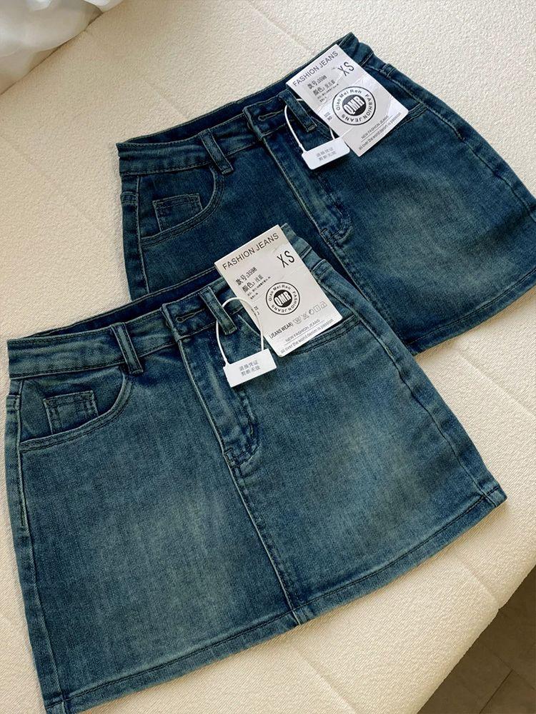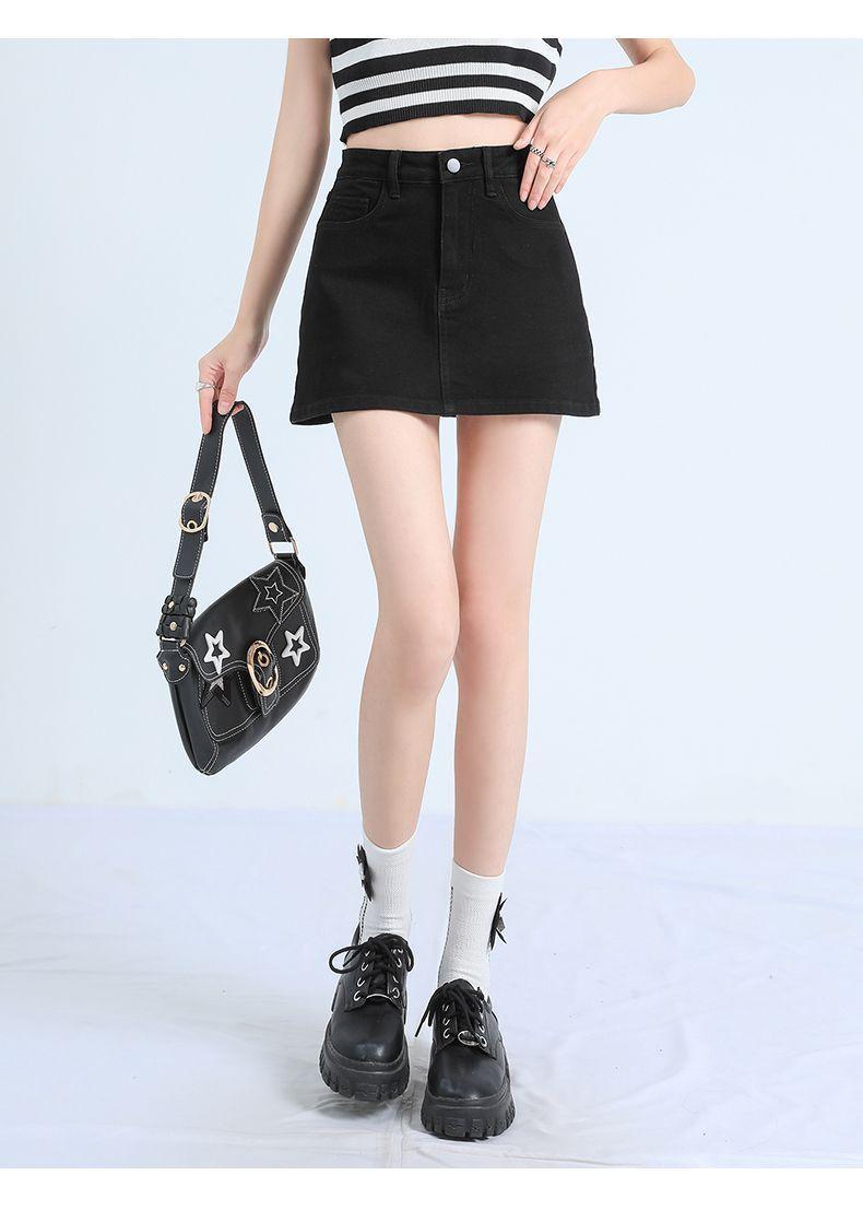 Falda Corta de Mezclilla Estilo Coreano Petite Nueva 2025 Adelgazante Elástica de Cintura Alta Ajustada Primavera Verano para Mujer que Realza la Estatura