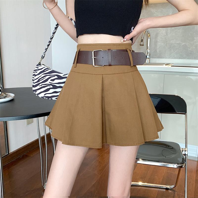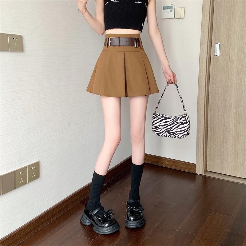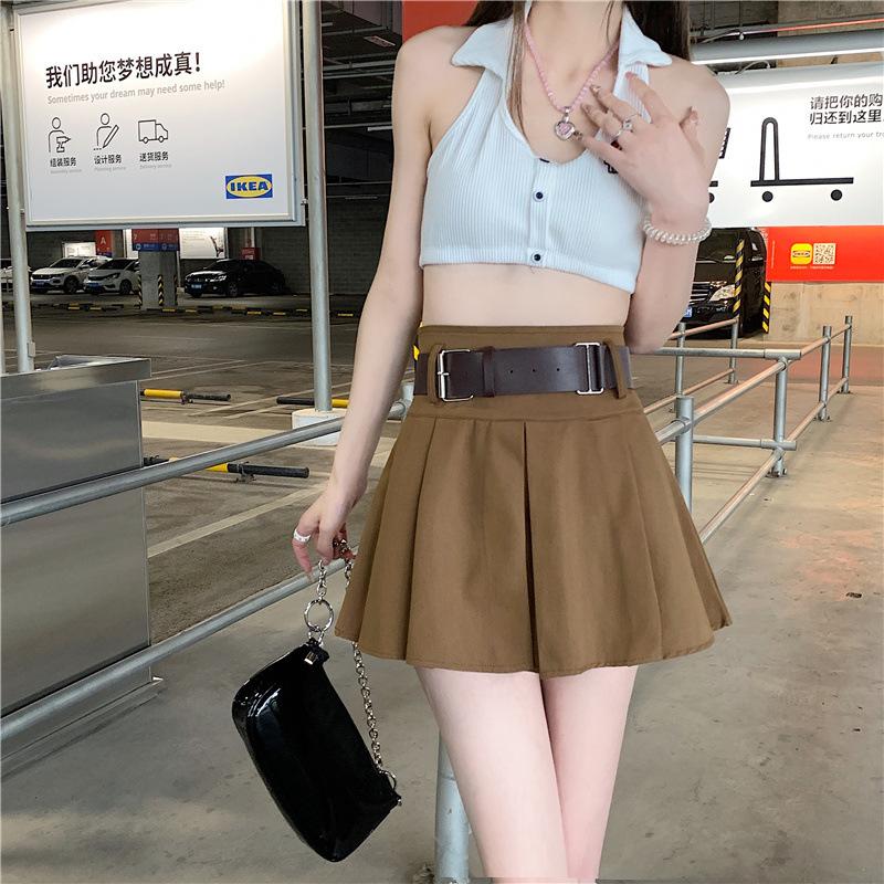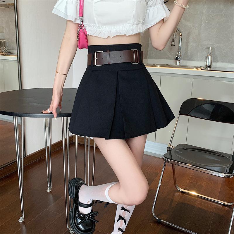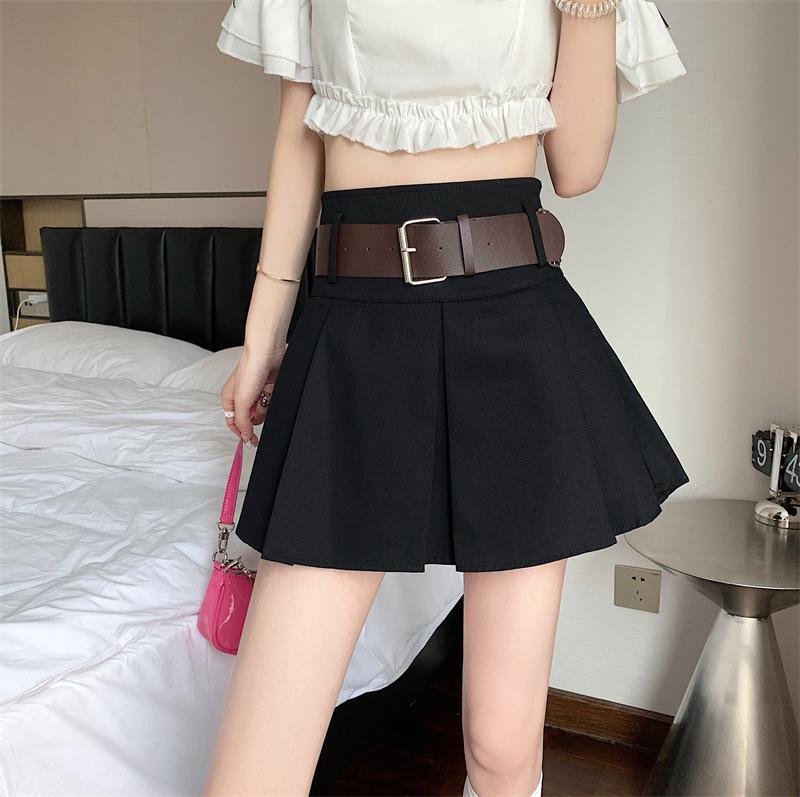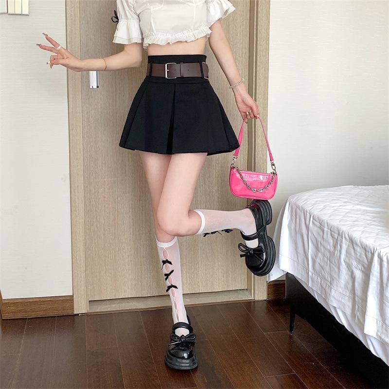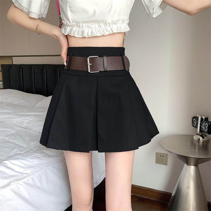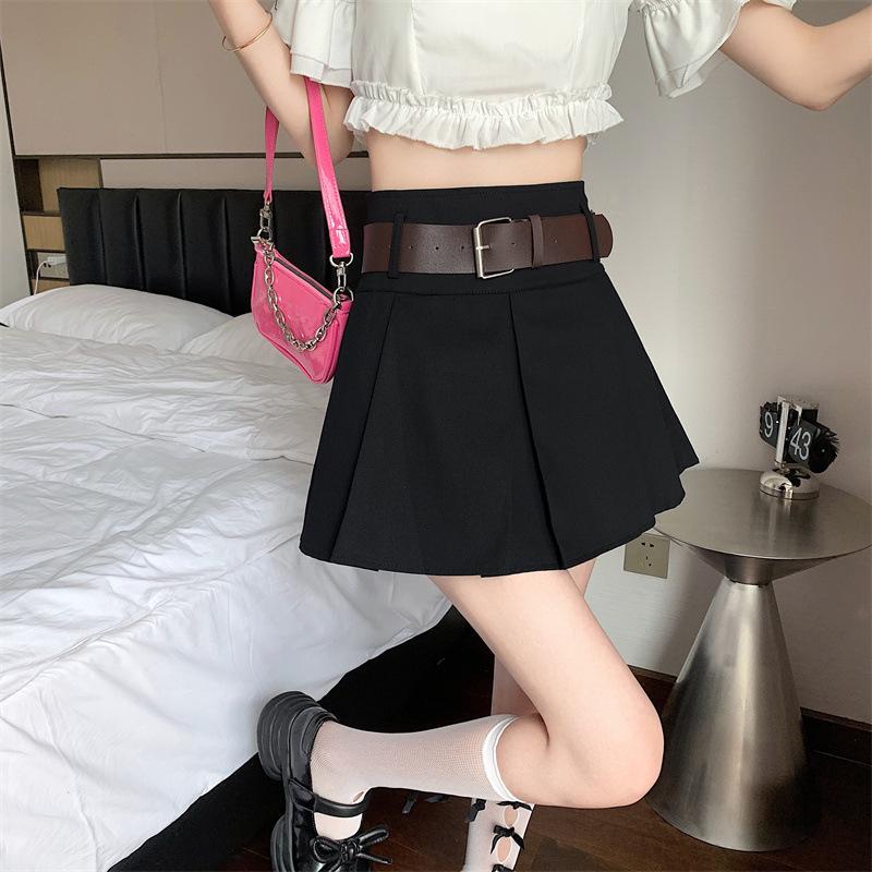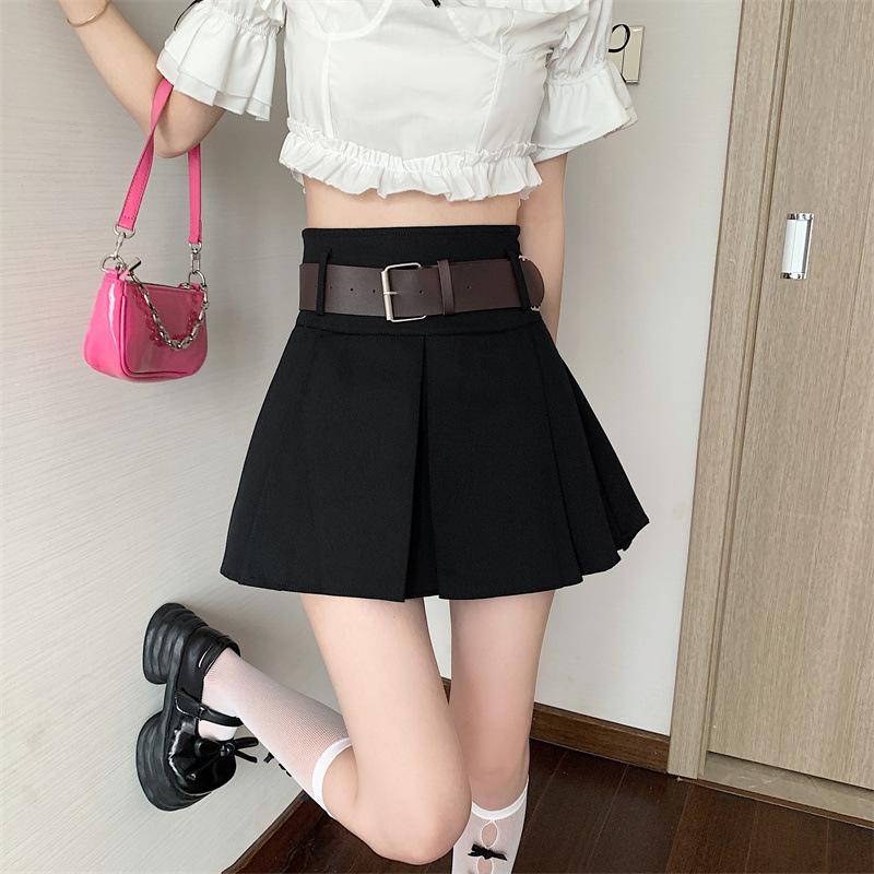 Falda plisada retro americana para mujer, primavera y verano, nueva, cintura alta, falda línea A de chica picante, falda negra pequeña