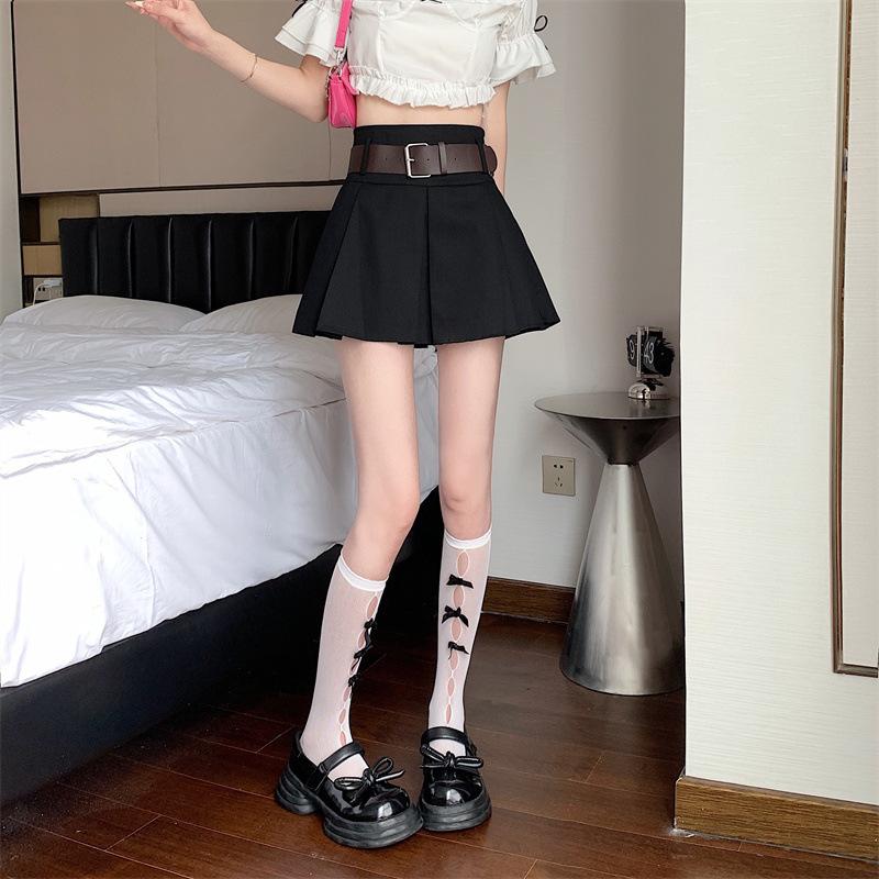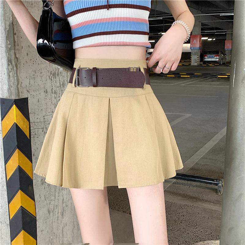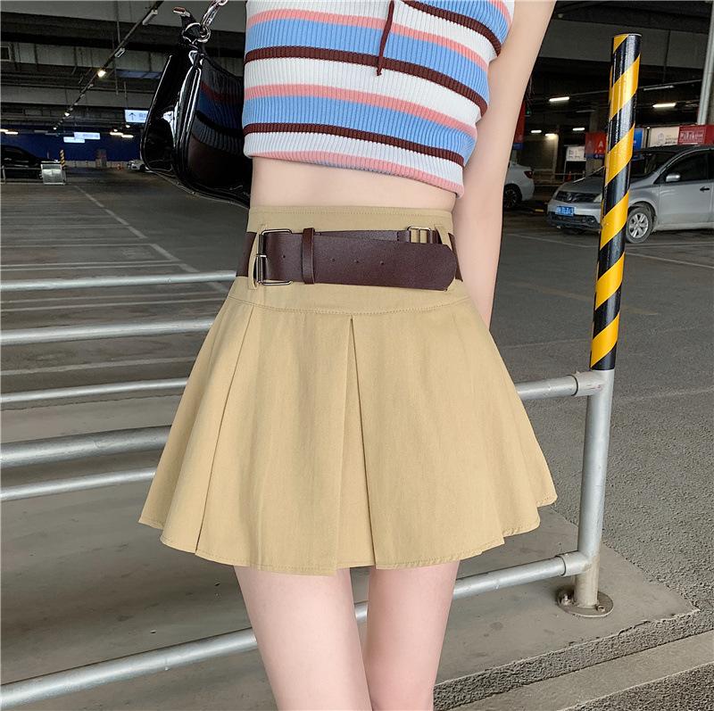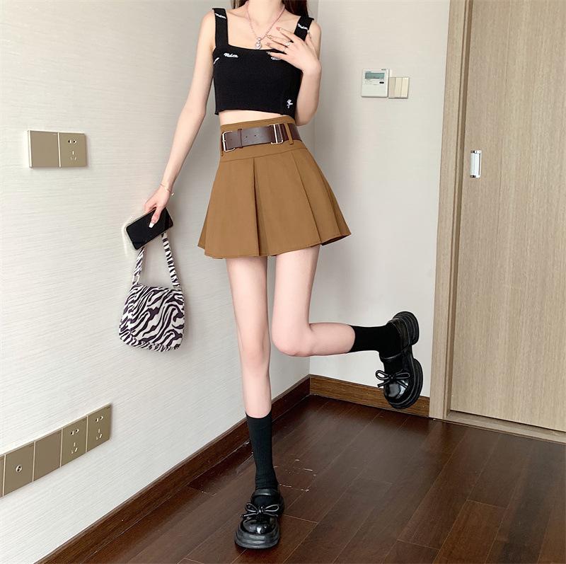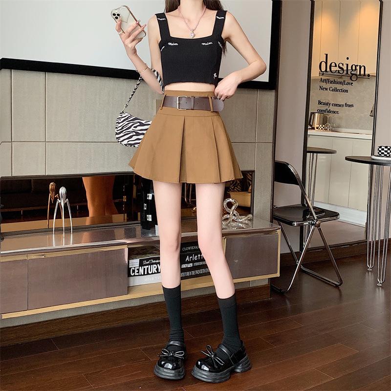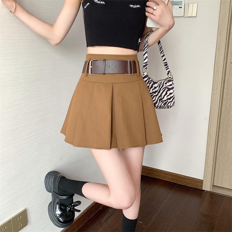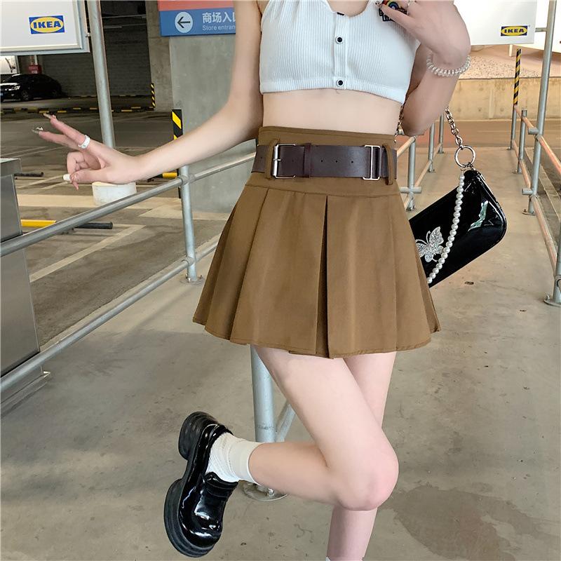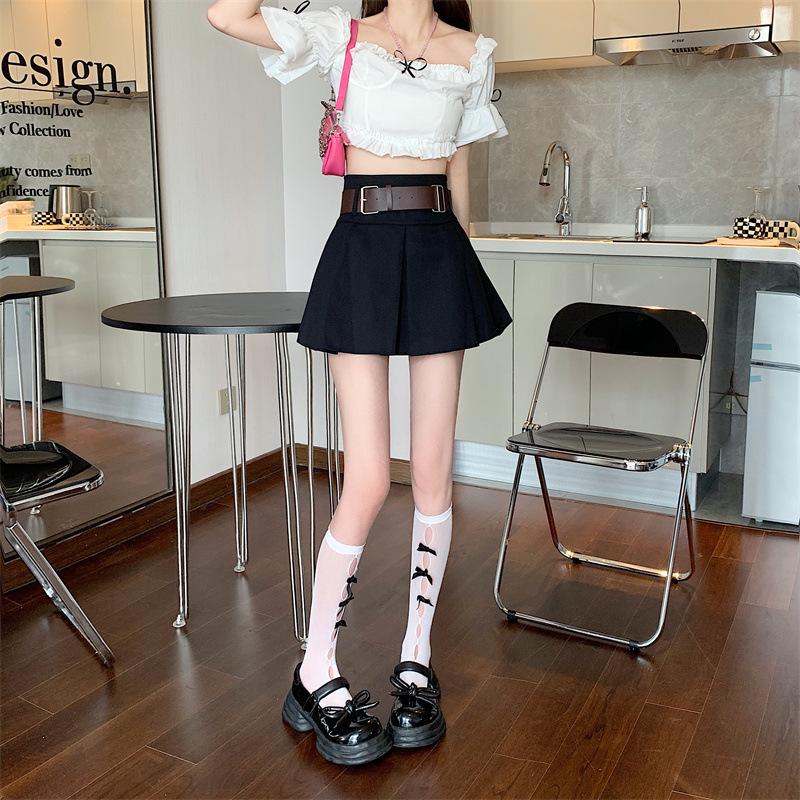 Falda plisada retro americana para mujer, primavera y verano, nueva, cintura alta, falda línea A de chica picante, falda negra pequeña
