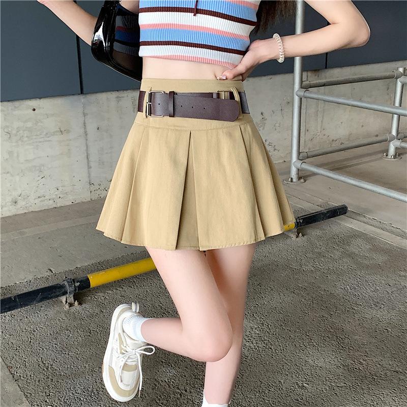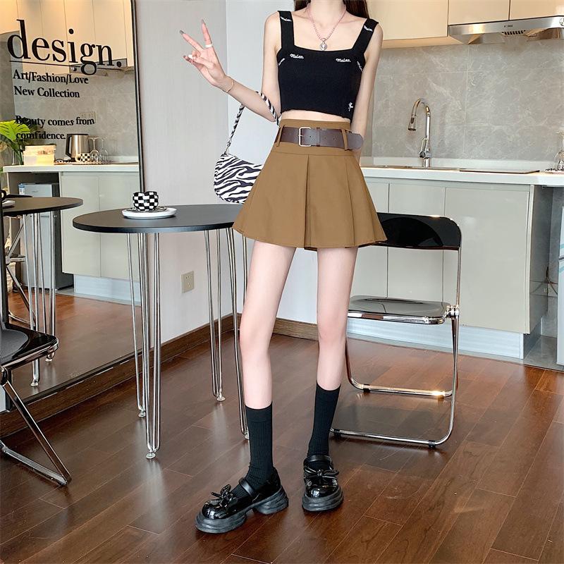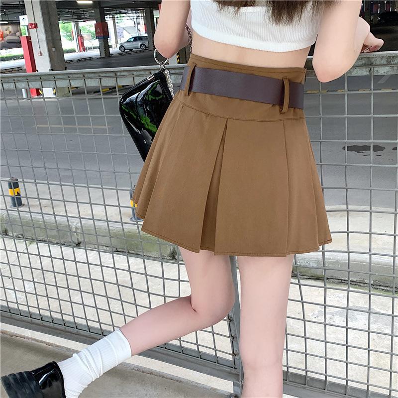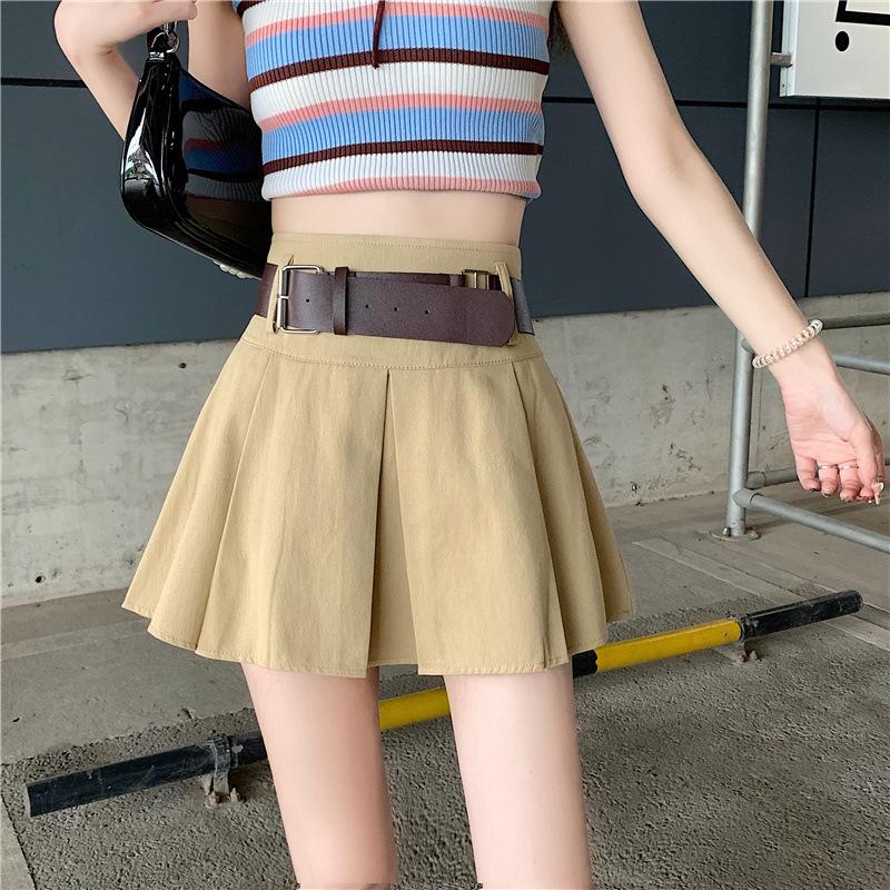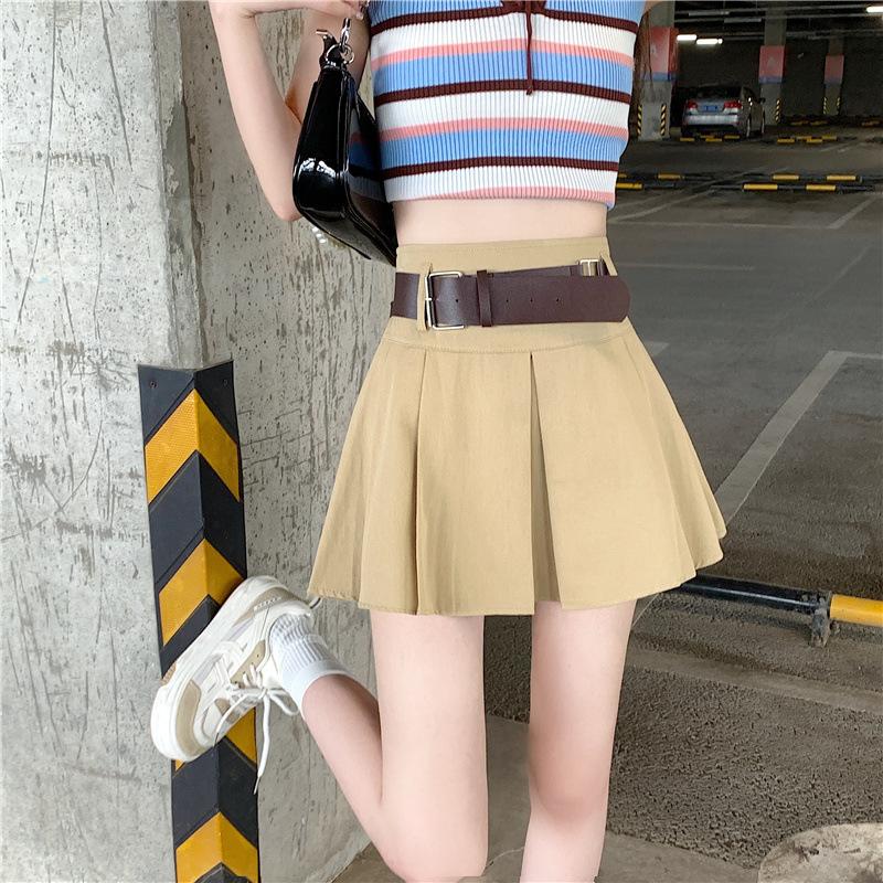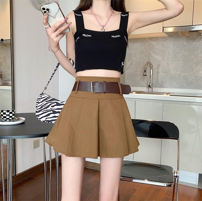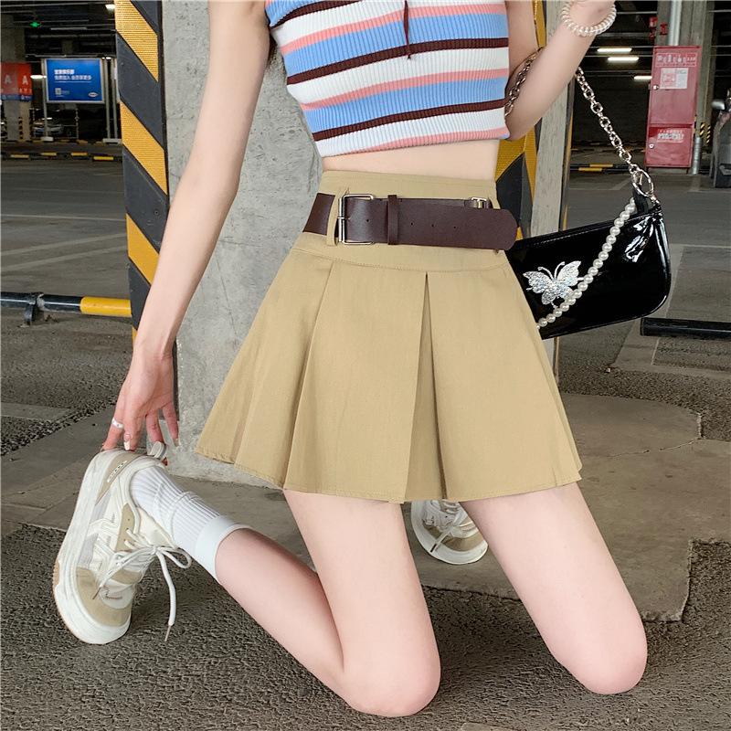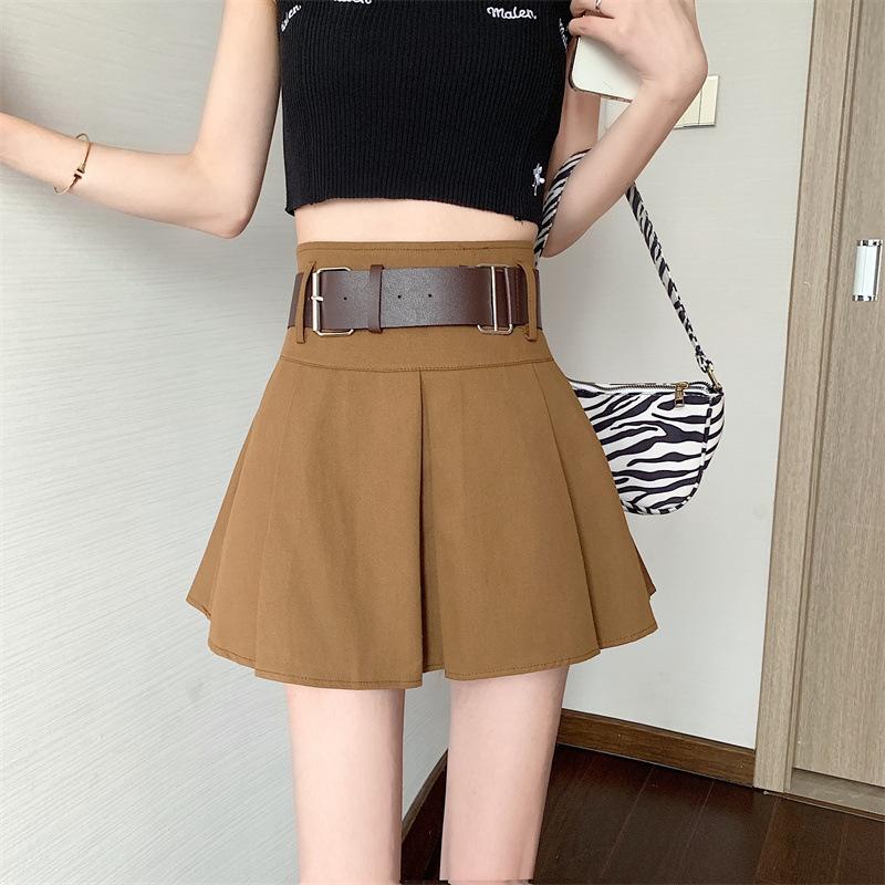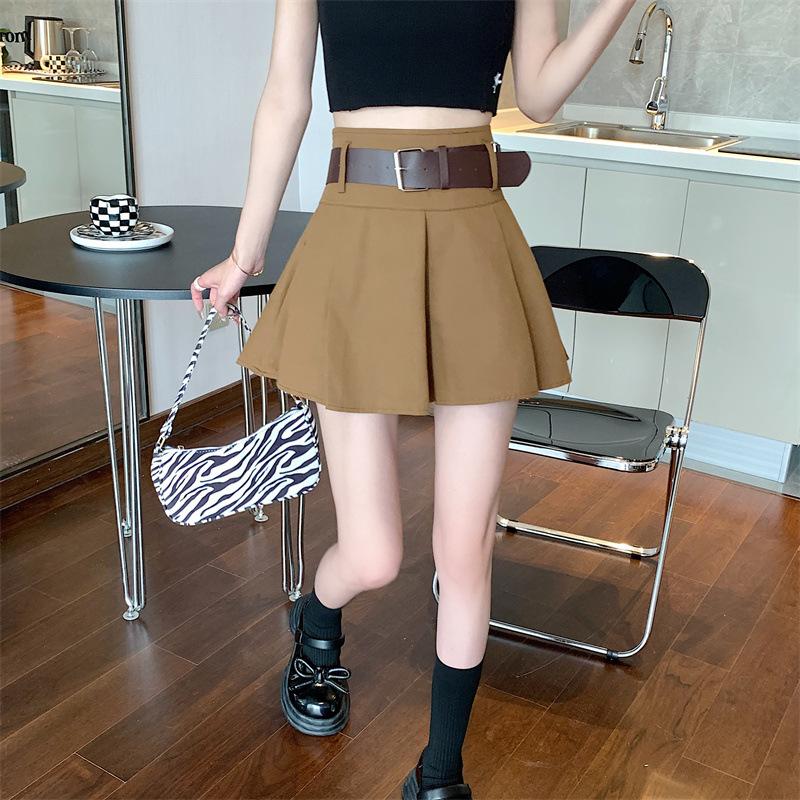 Falda plisada retro americana para mujer, primavera y verano, nueva, cintura alta, falda línea A de chica picante, falda negra pequeña