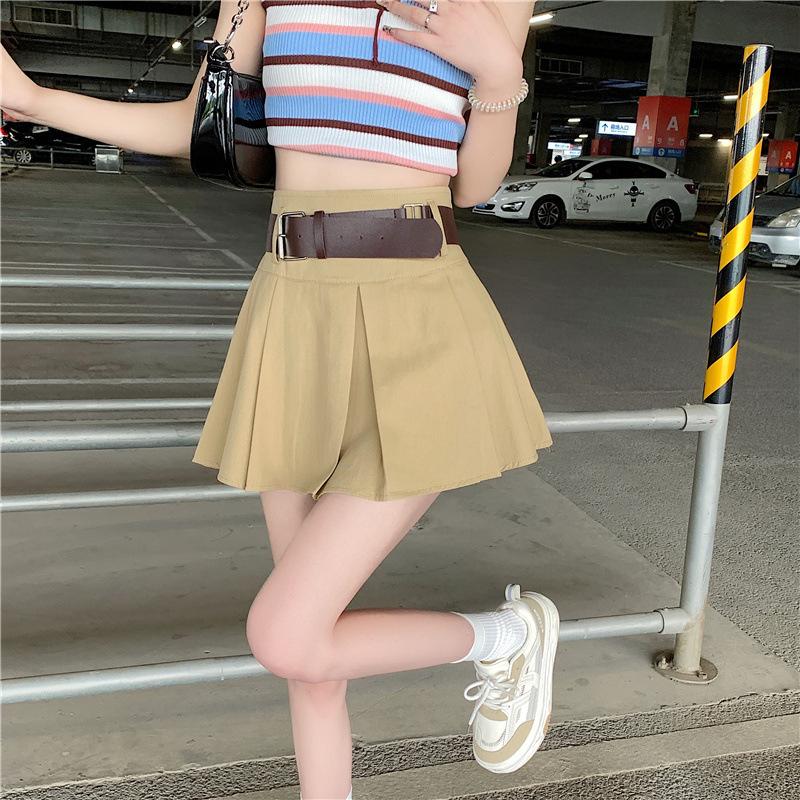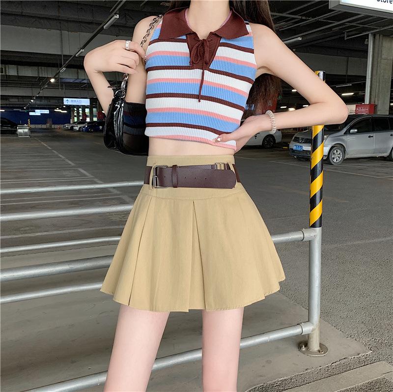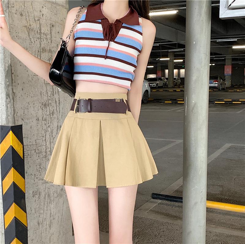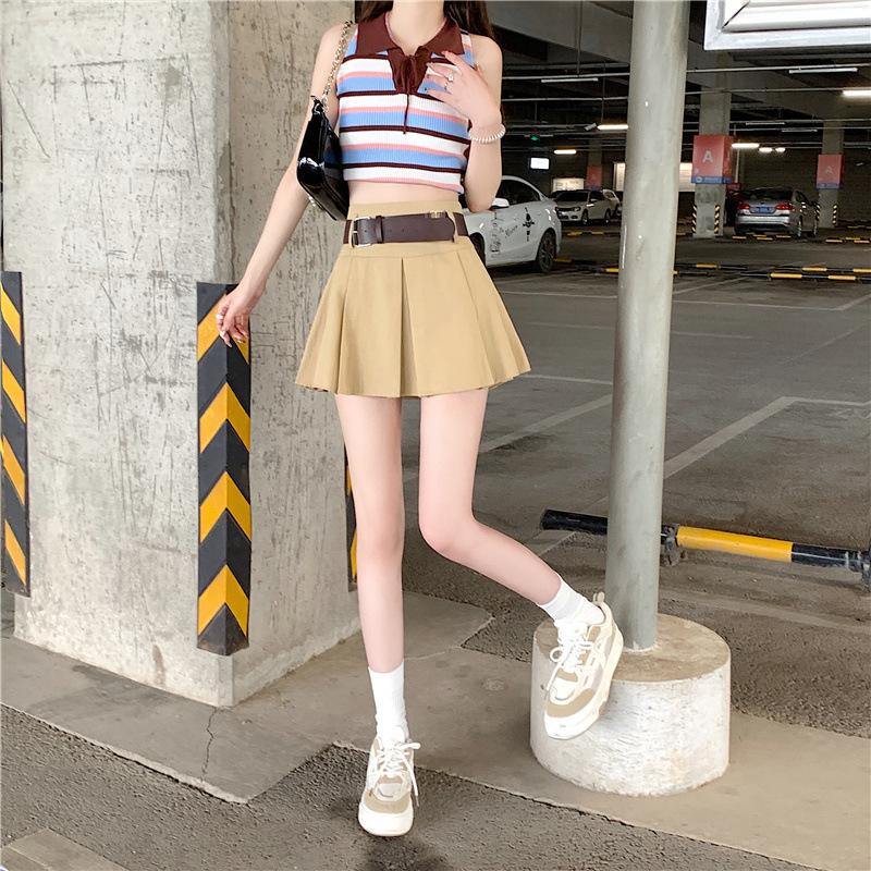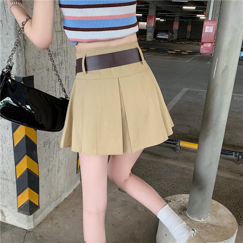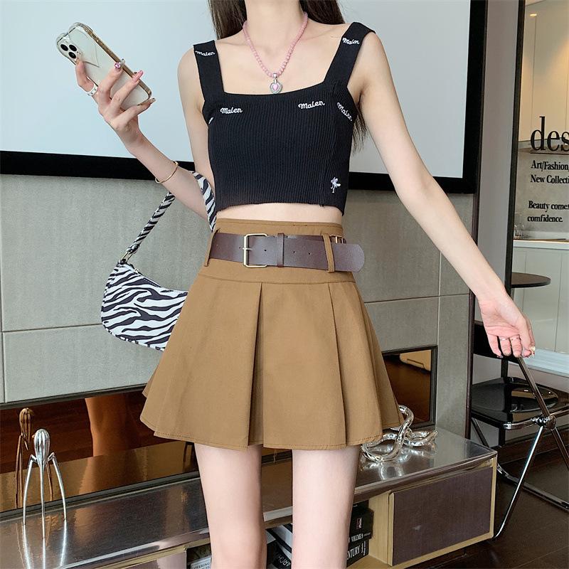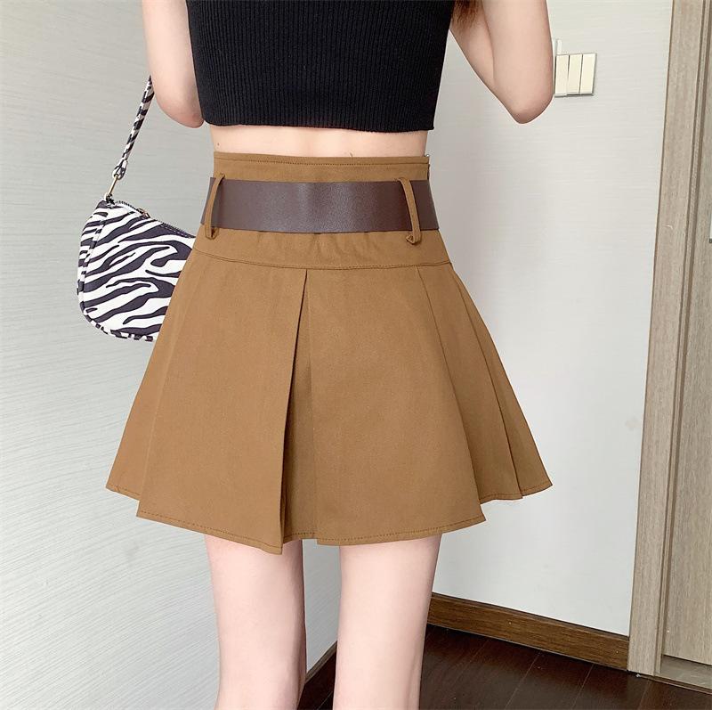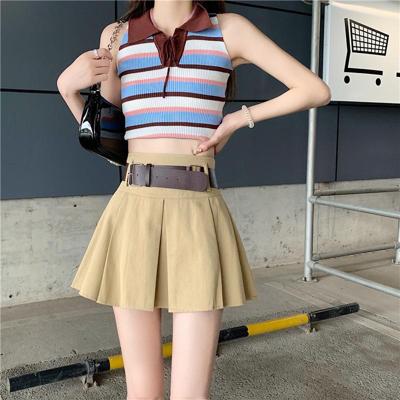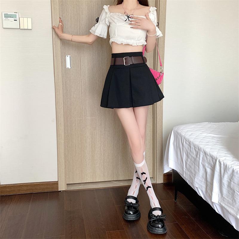 Falda plisada retro americana para mujer, primavera y verano, nueva, cintura alta, falda línea A de chica picante, falda negra pequeña