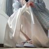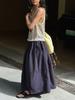 Lvu Verano Nuevo Japonés Simple Color Sólido Costuras Falda Línea A Seca y Cómoda Falda Larga Esponjosa Tridimensional para Mujer