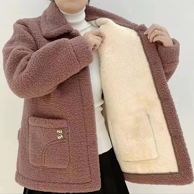 Abrigo de Terciopelo de Otoño e Invierno para Mamá, Elegante Top con Cuello Alto, Abrigo de Algodón Grueso de Terciopelo de Partículas Cortavientos y Cálido para Edad Media y Avanzada