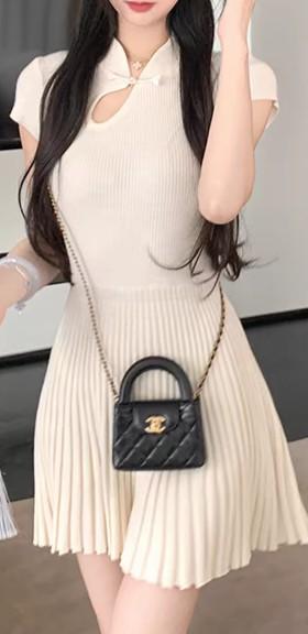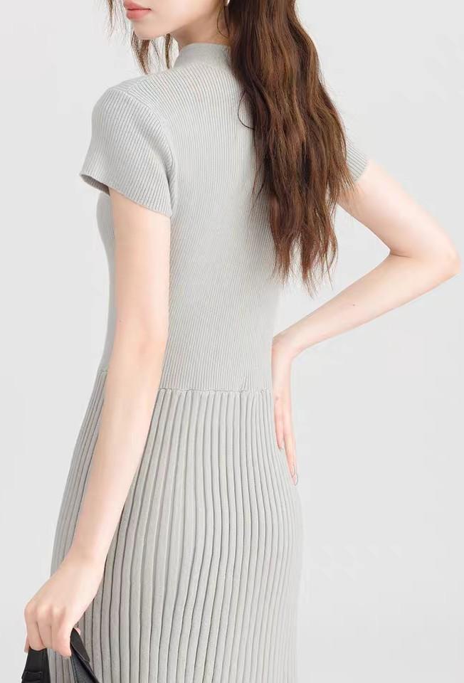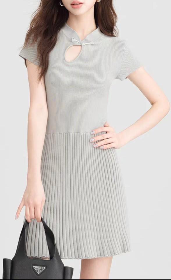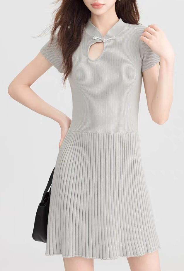 Cheongsam de Estilo Francés Suave Vestido Mejorado con Cuello Mao Estilo Verano Falda Corta de Punto para Personas Pequeñas