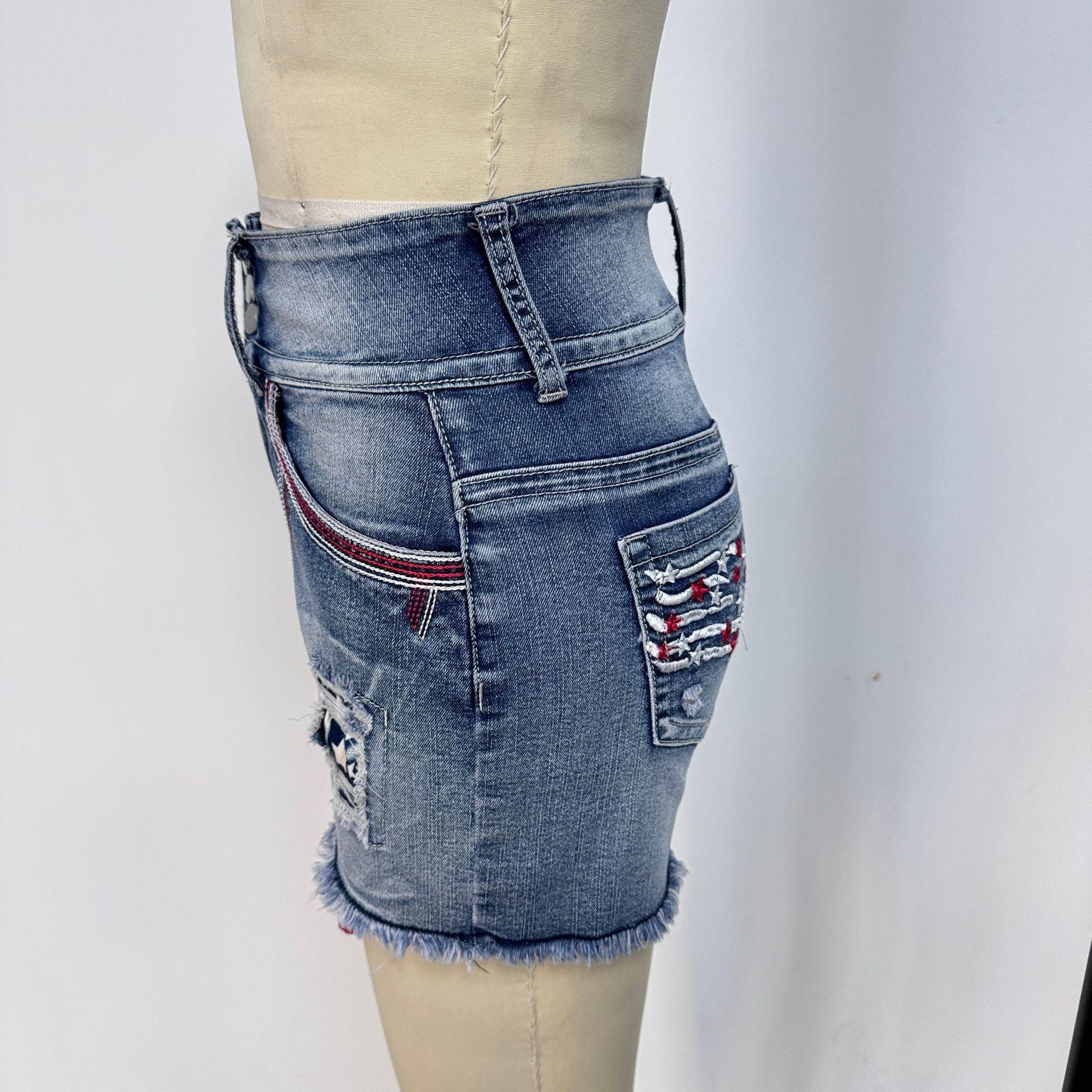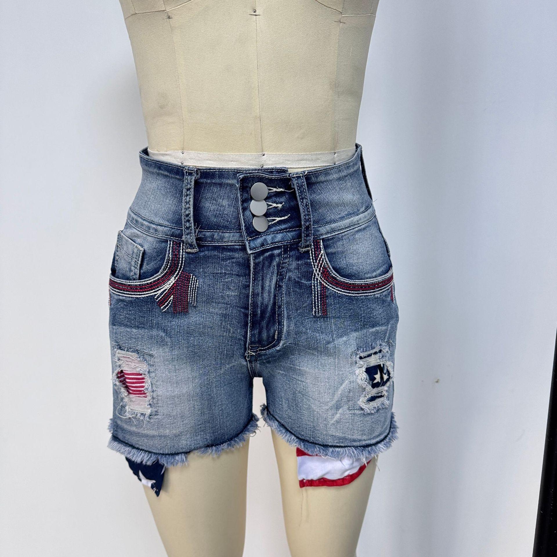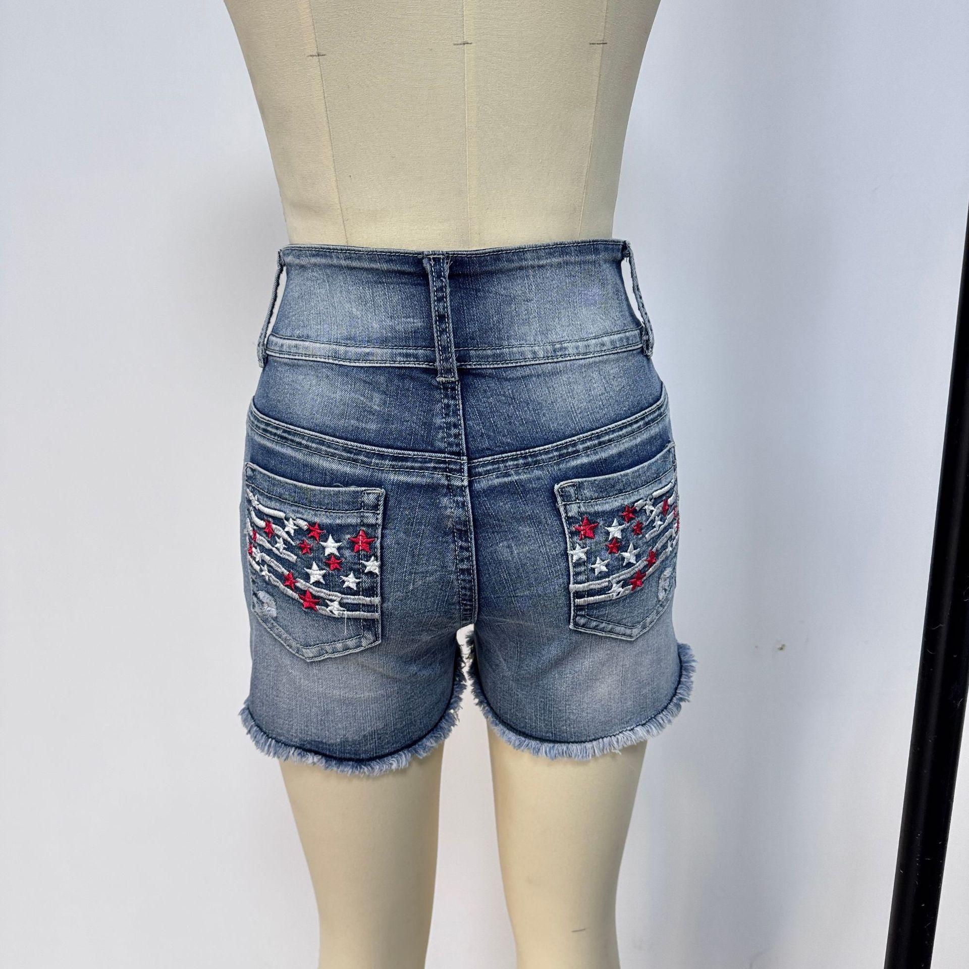 Jeans Rectos Casuales de Moda Europeos y Americanos Transfronterizos de Comercio Exterior Bordados Estampados de Pechera Múltiple de Cintura Alta Cómodos de Corte Ajustado