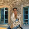 2025 Exportación Nuevo Aliexpress Amazon Suéter para Mujer Suelto Cuello en V Pata de Gallo Manga Larga Cárdigan de Punto
