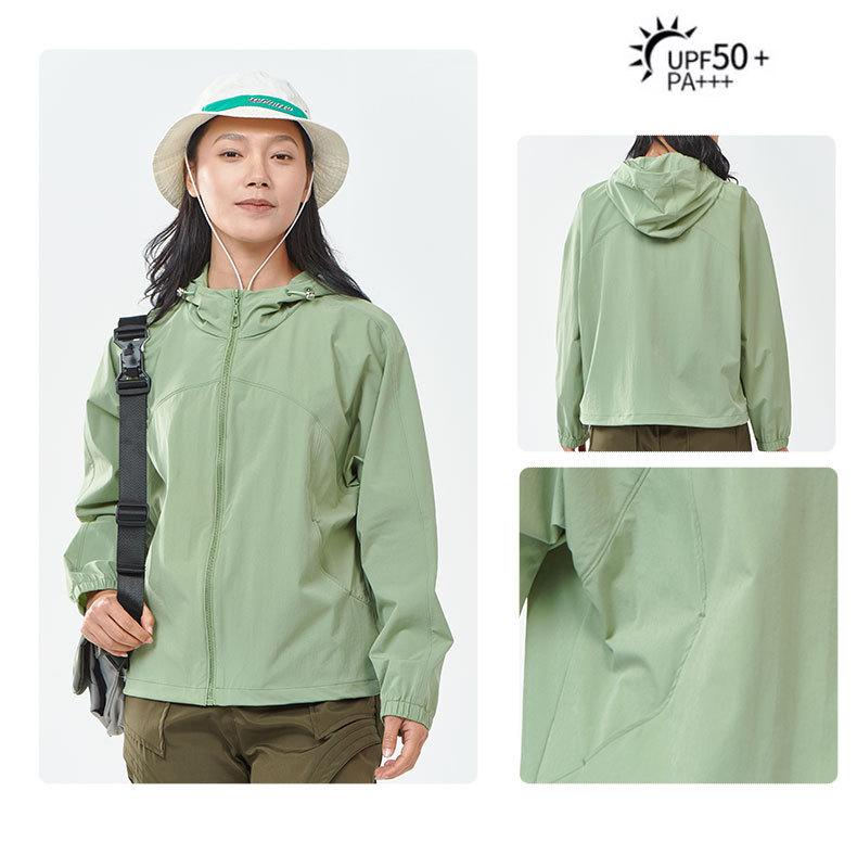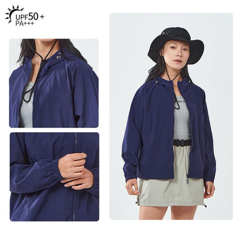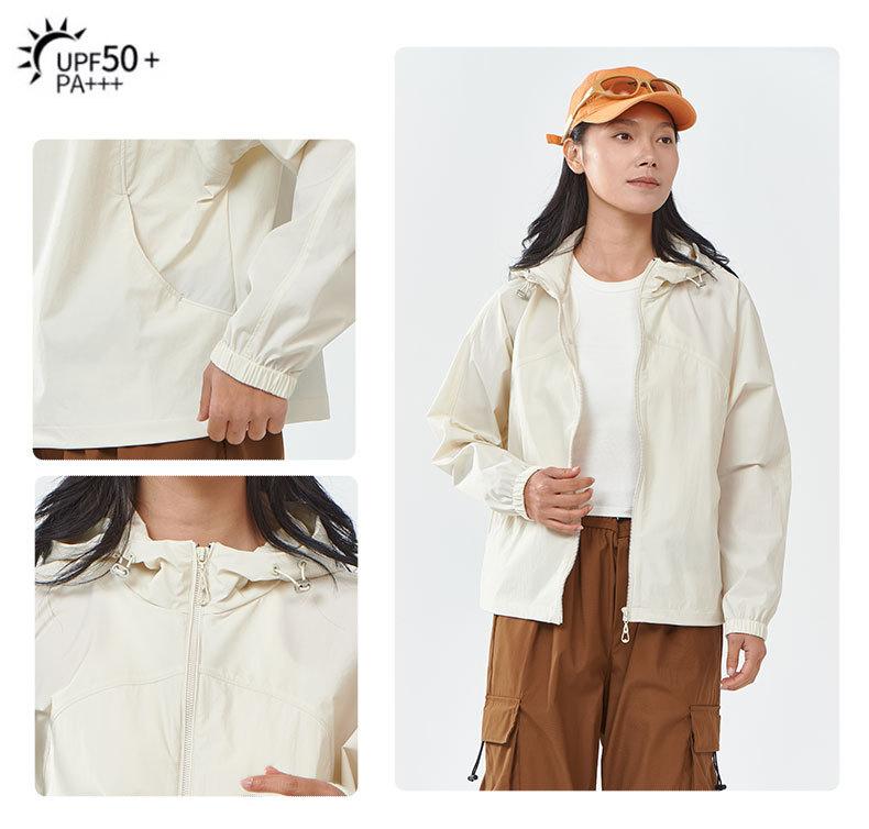 Popular Ropa de Protección Solar con Capucha para Mujer Nueva Holgada a la Moda Ropa para la Piel Chaqueta de Viaje Top Fresco Verano Logotipo Estampado
