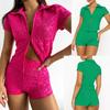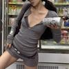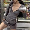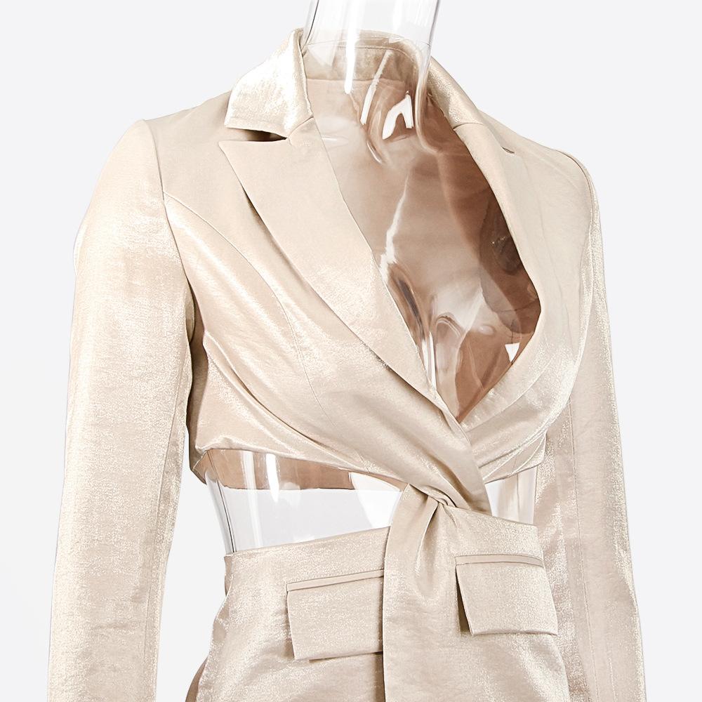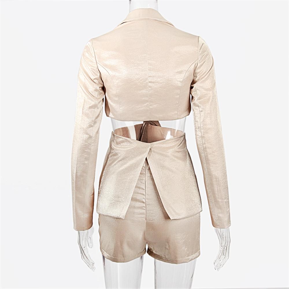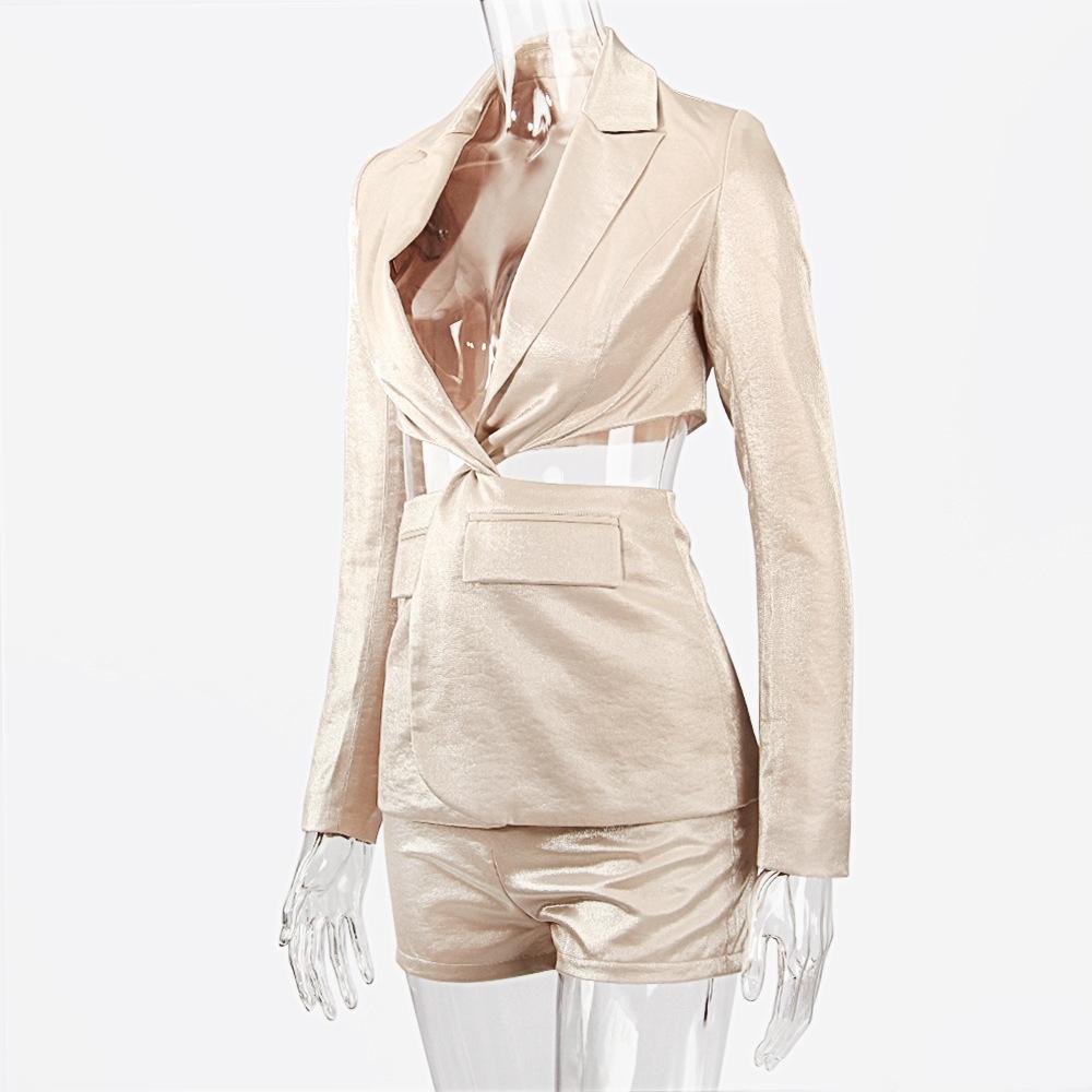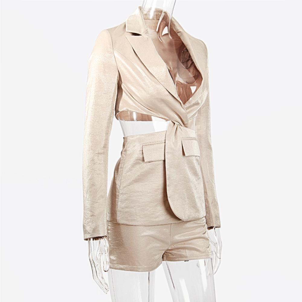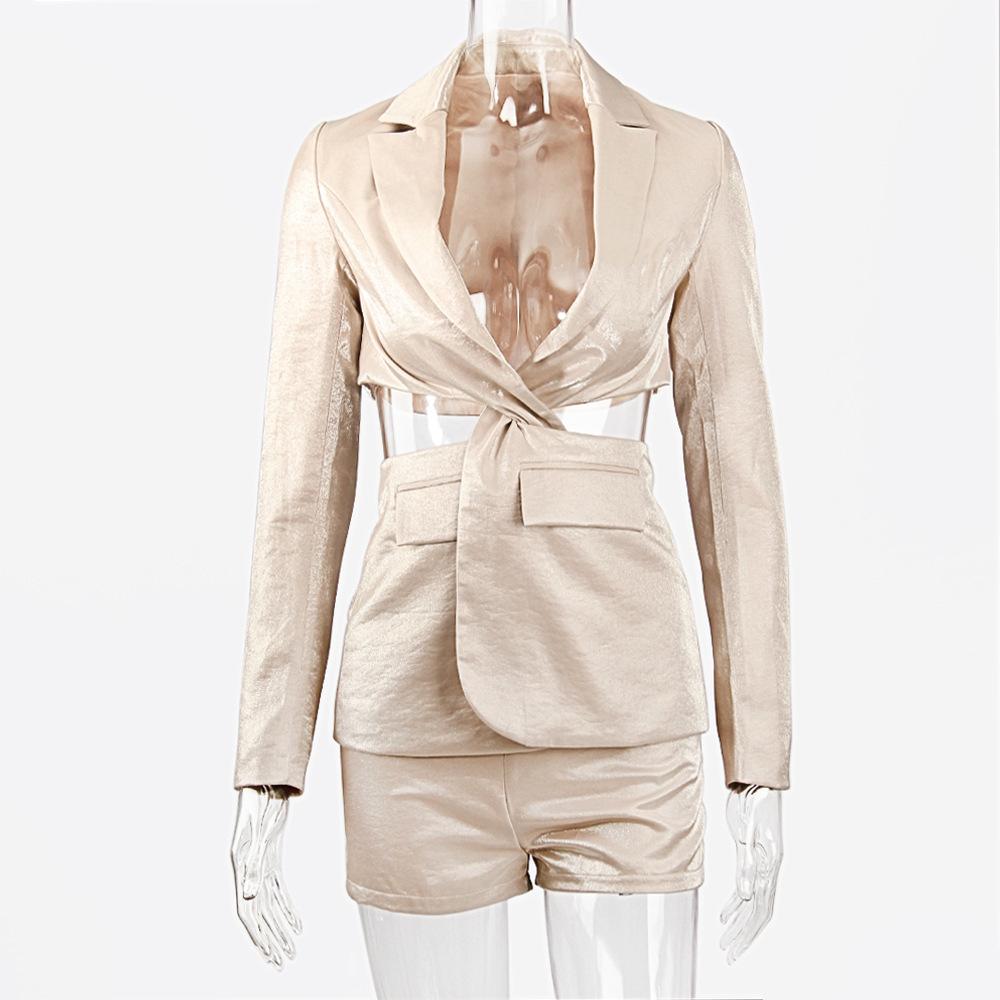 Traje hueco de manga larga personalizado de otoño e invierno, shorts de dos piezas, comercio exterior, color sólido, sexy sin espalda, traje de moda europeo y americano para mujer