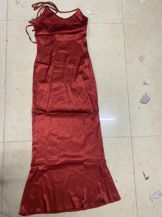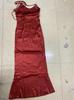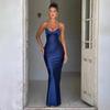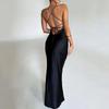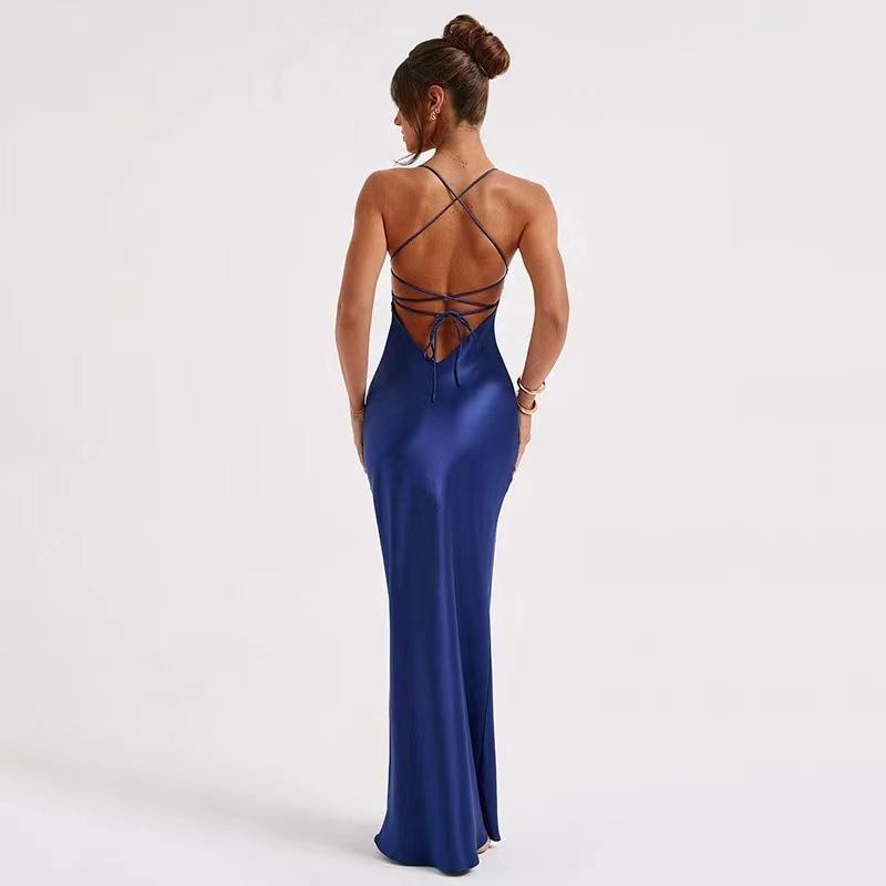 Temperamento Transfronterizo Sexy Tirantes Delgados Cruzados Vestido Largo de Satén sin Espalda Cintura Ajustada Ropa de Mujer