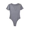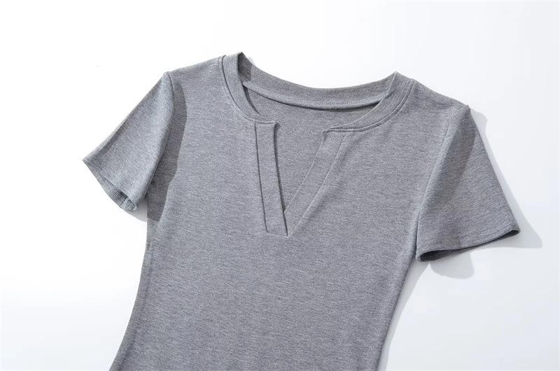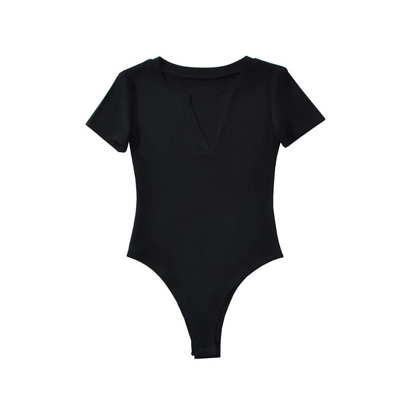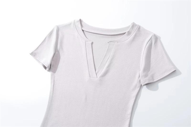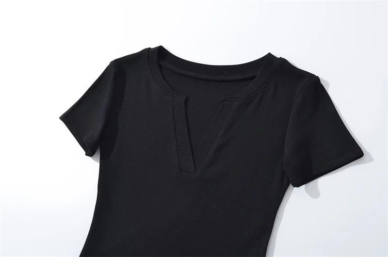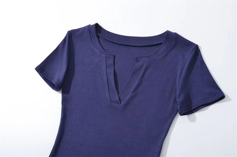 Mono de manga larga con cuello medio abierto de color sólido estilo Spice Girl americano Primavera Nuevo Elástico Ajustado Ajustado Camiseta Base Top para Mujer