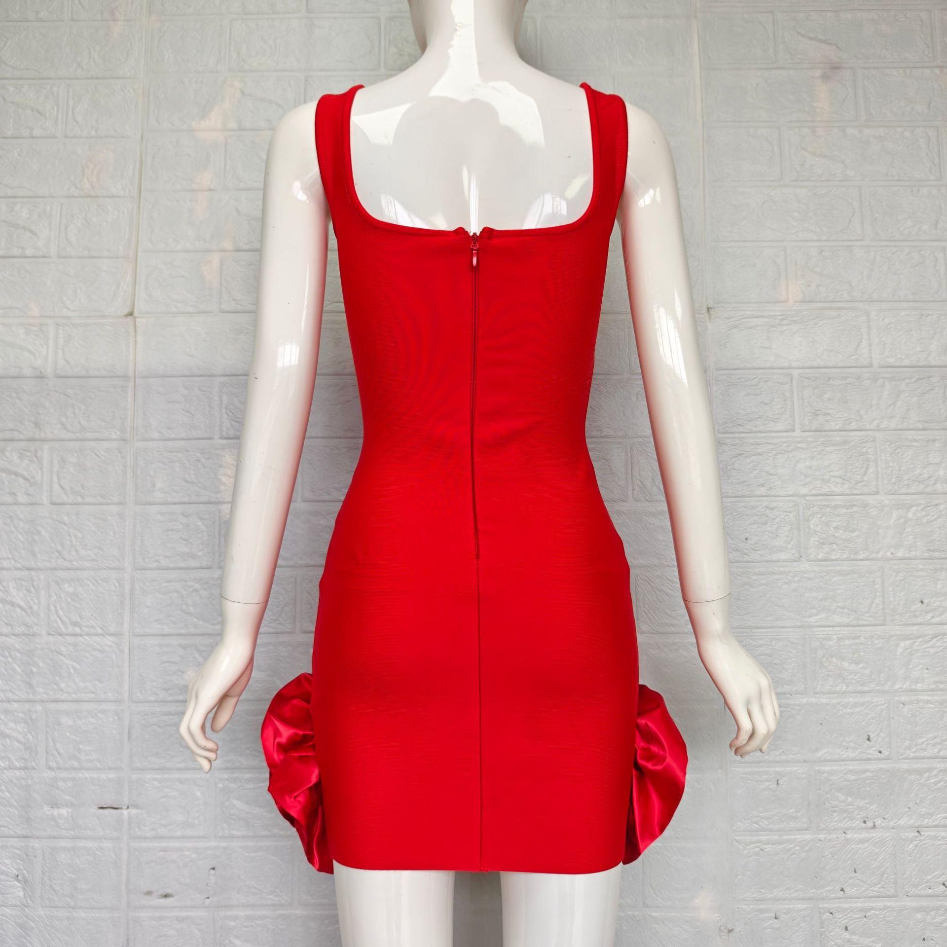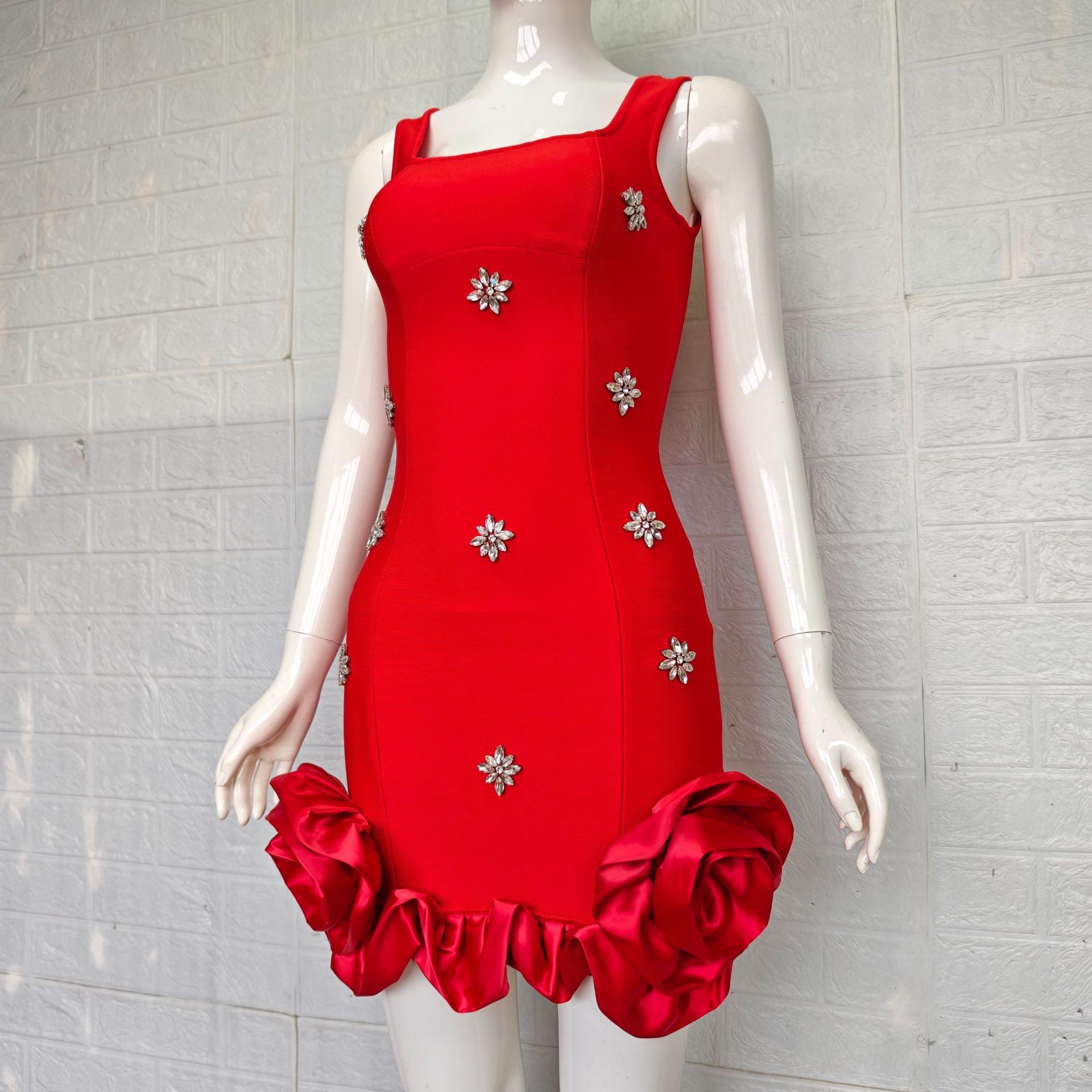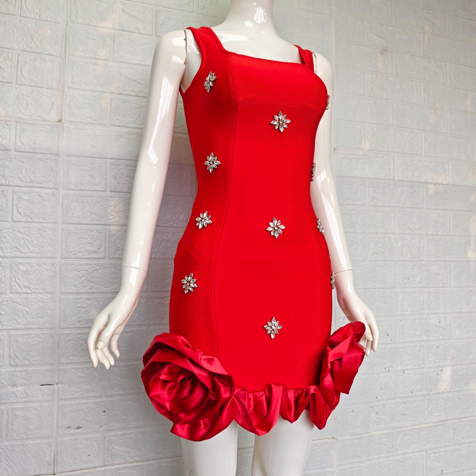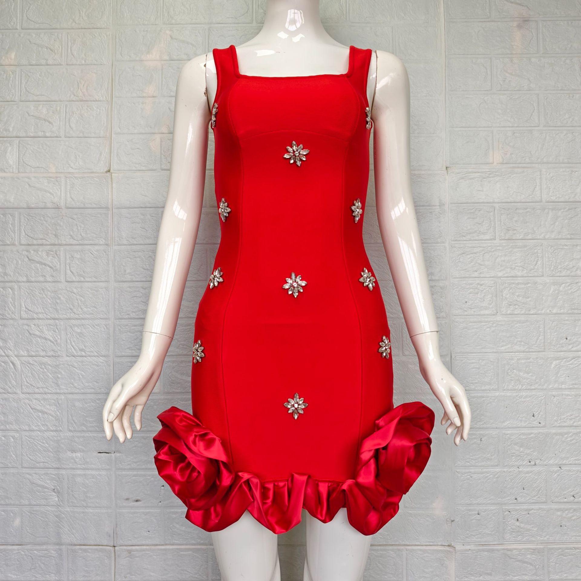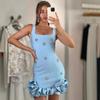 Nuevo Camisola Sexy Transfronteriza Europea y Americana con Volantes de Pedrería, Vestido de Vendaje para Mujer Estilo Socialité, Vestido de Noche