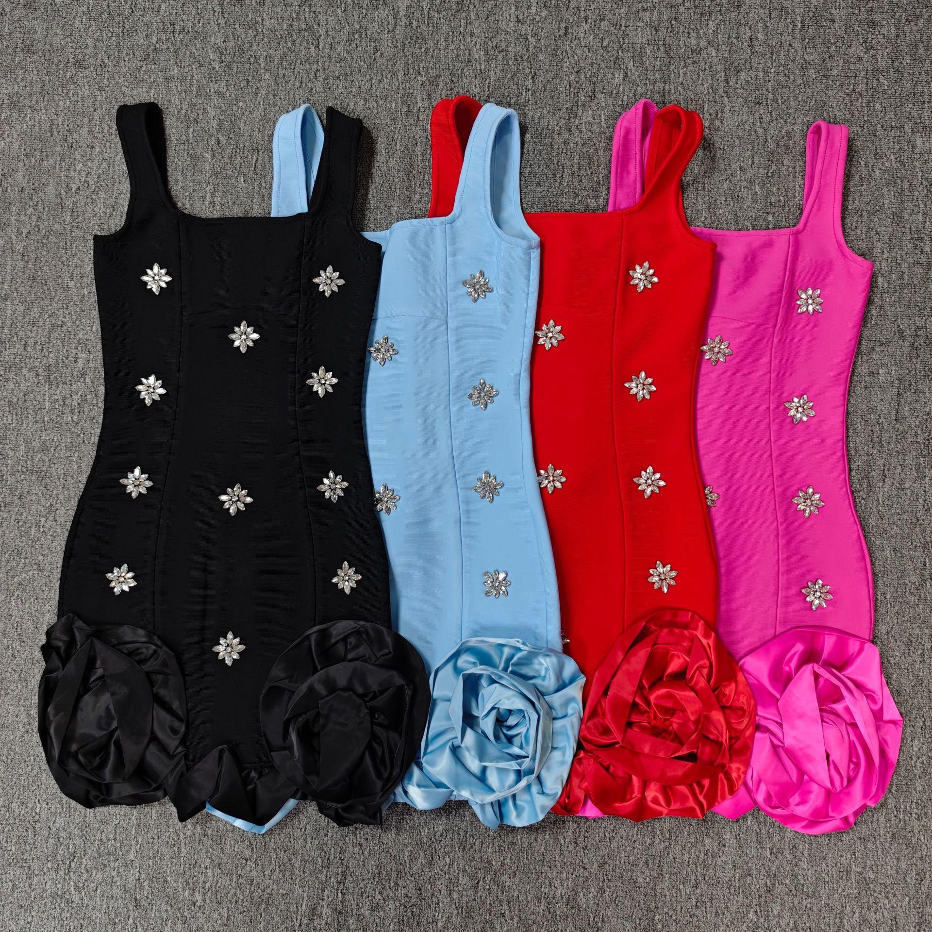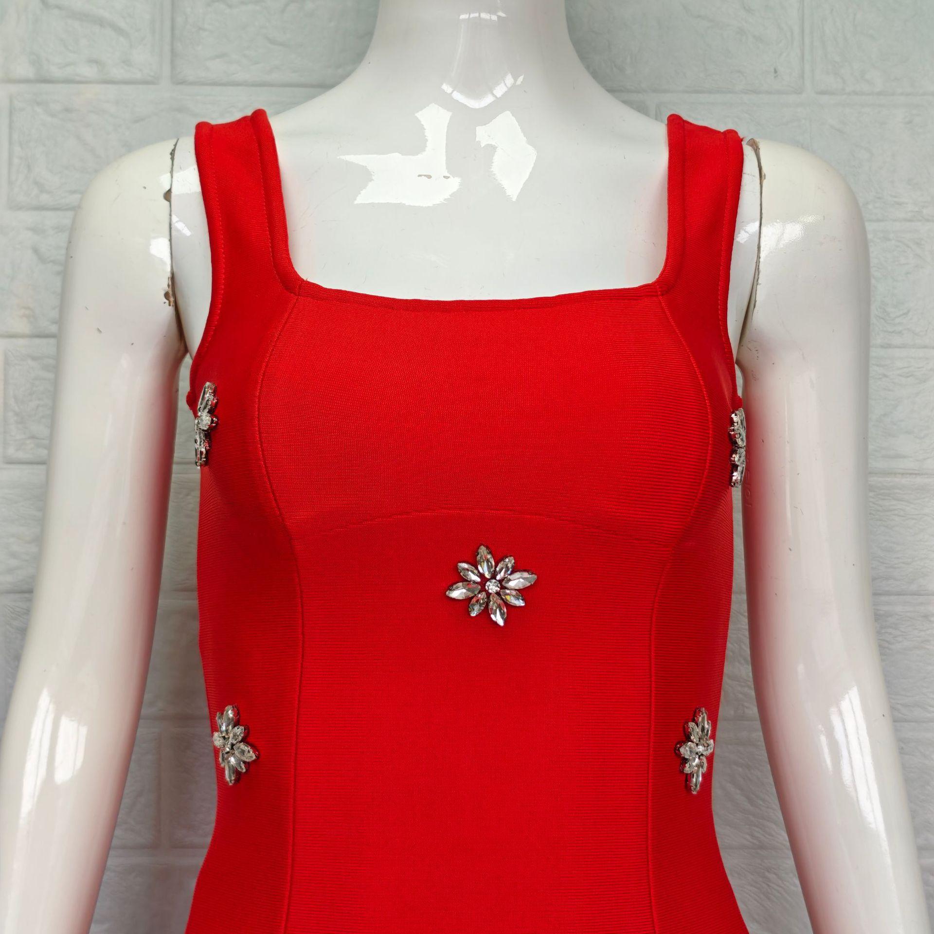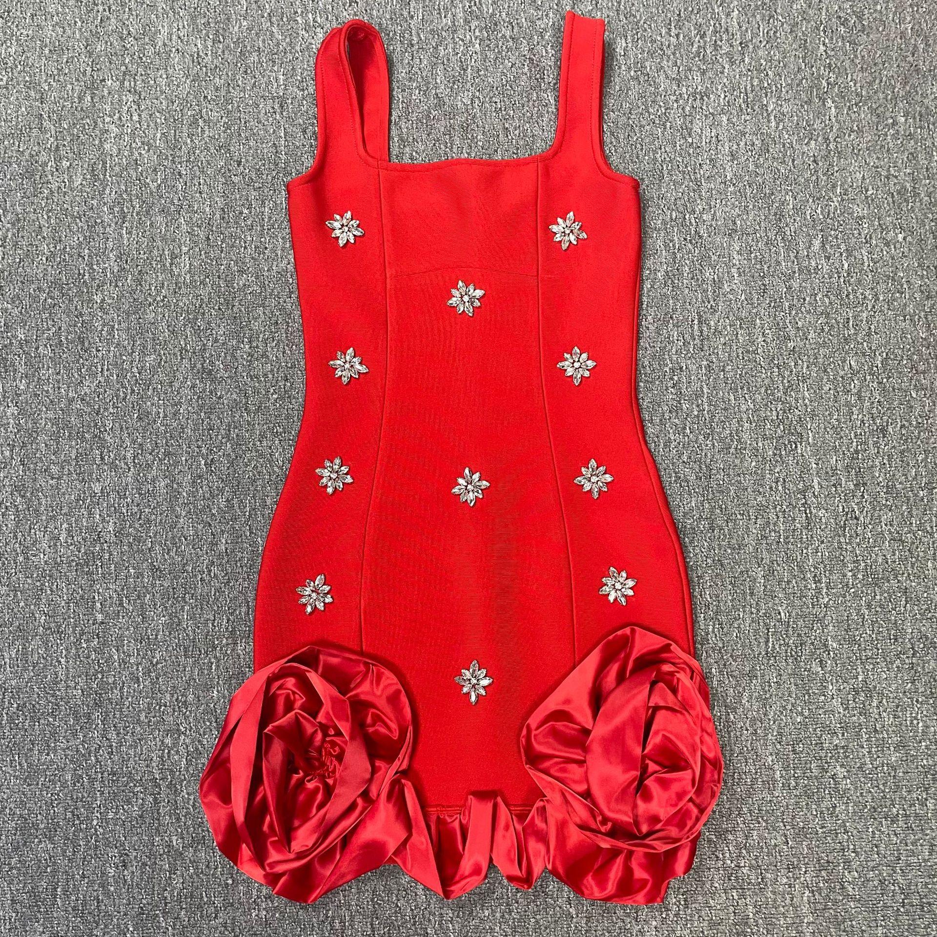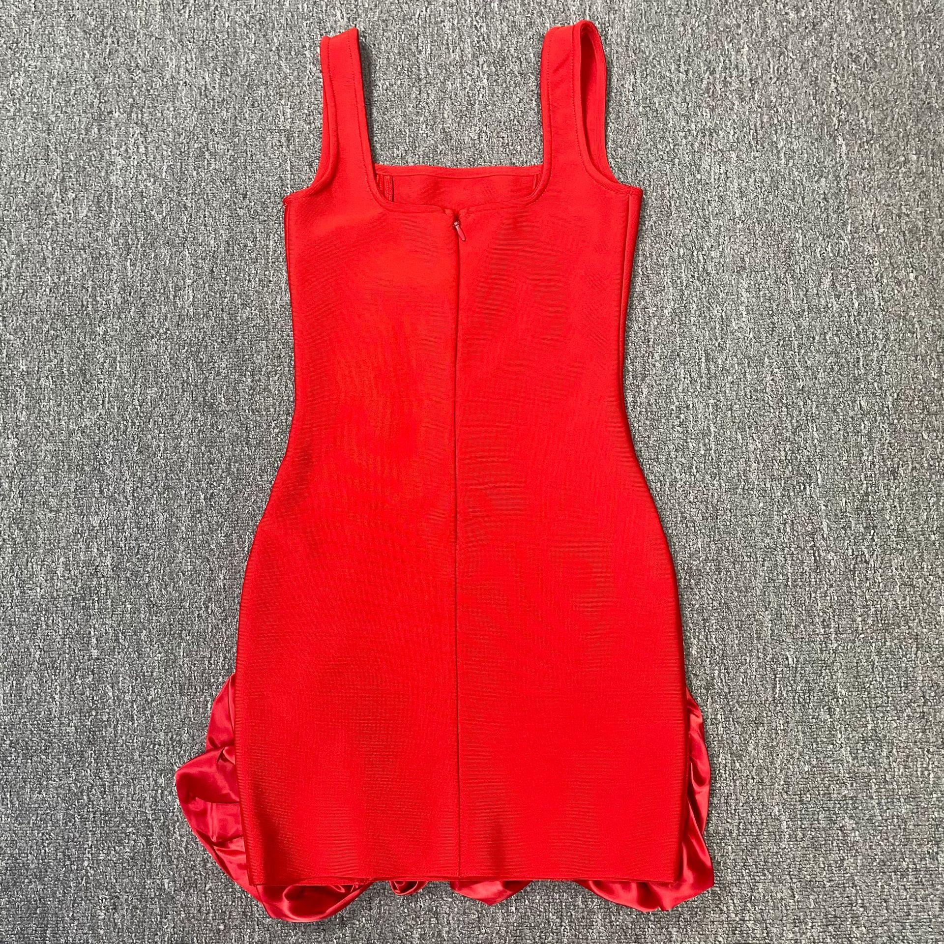 Nuevo Camisola Sexy Transfronteriza Europea y Americana con Volantes de Pedrería, Vestido de Vendaje para Mujer Estilo Socialité, Vestido de Noche