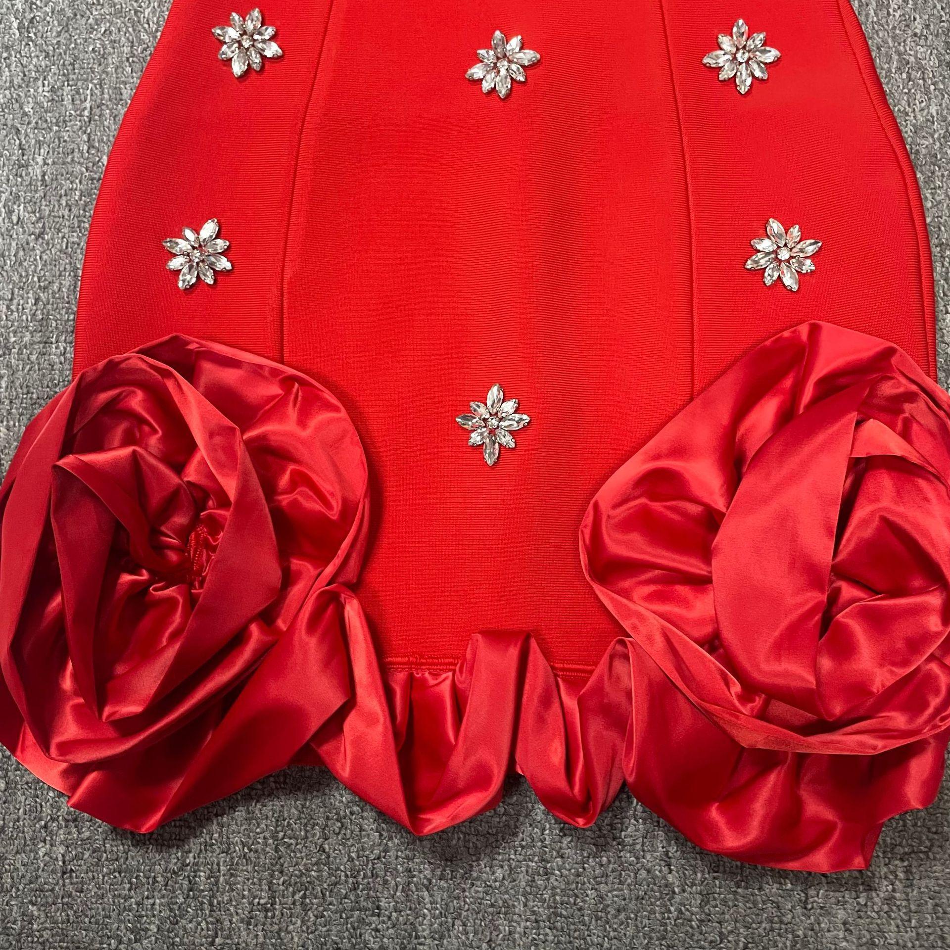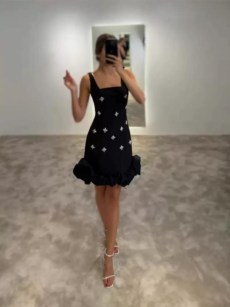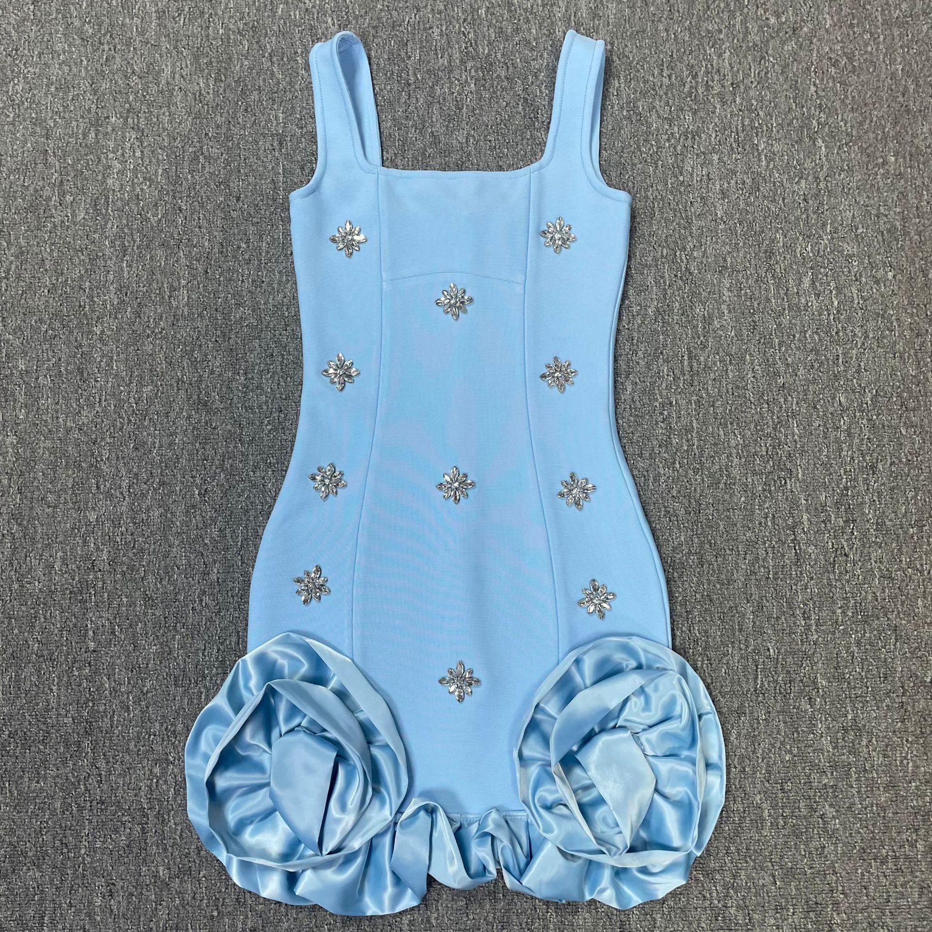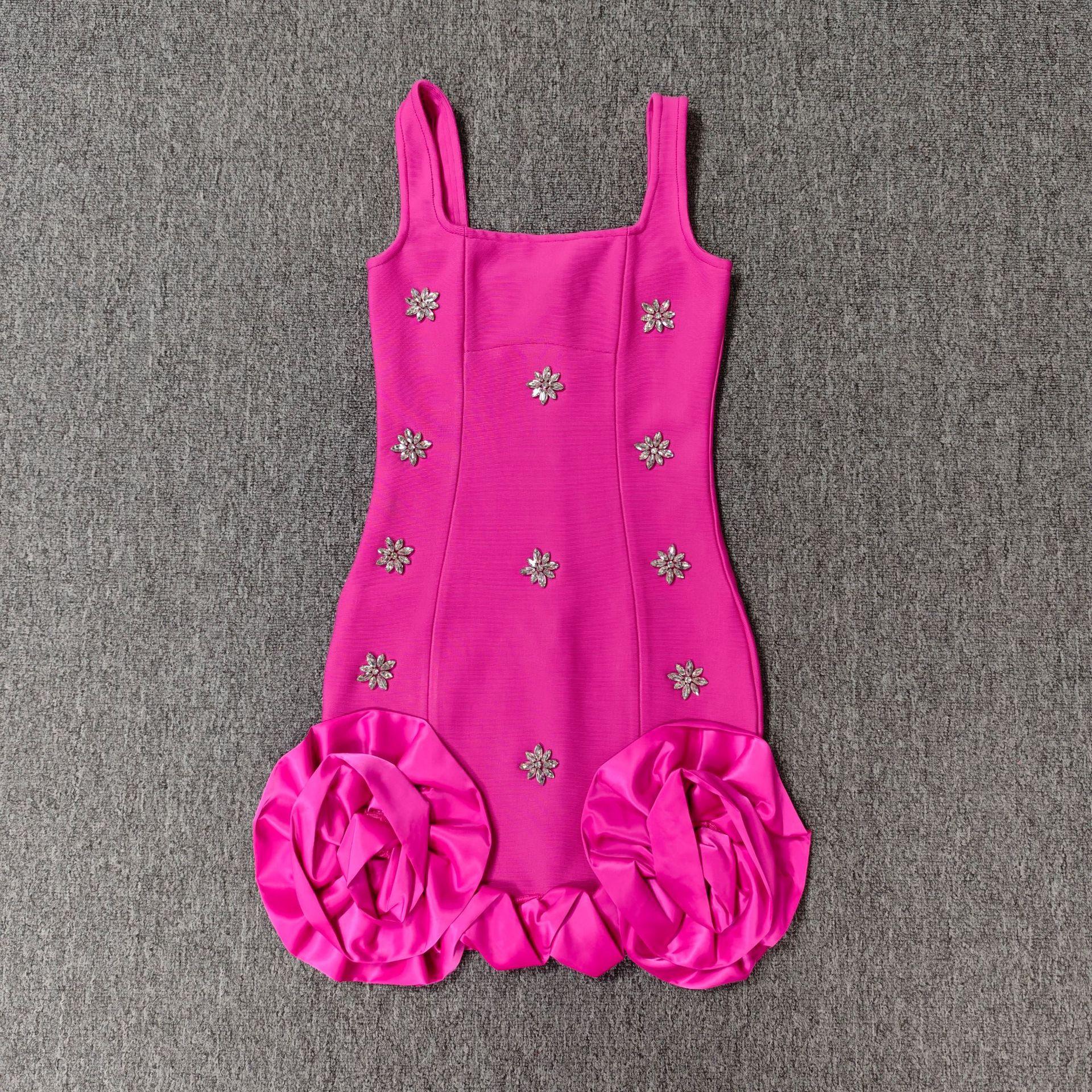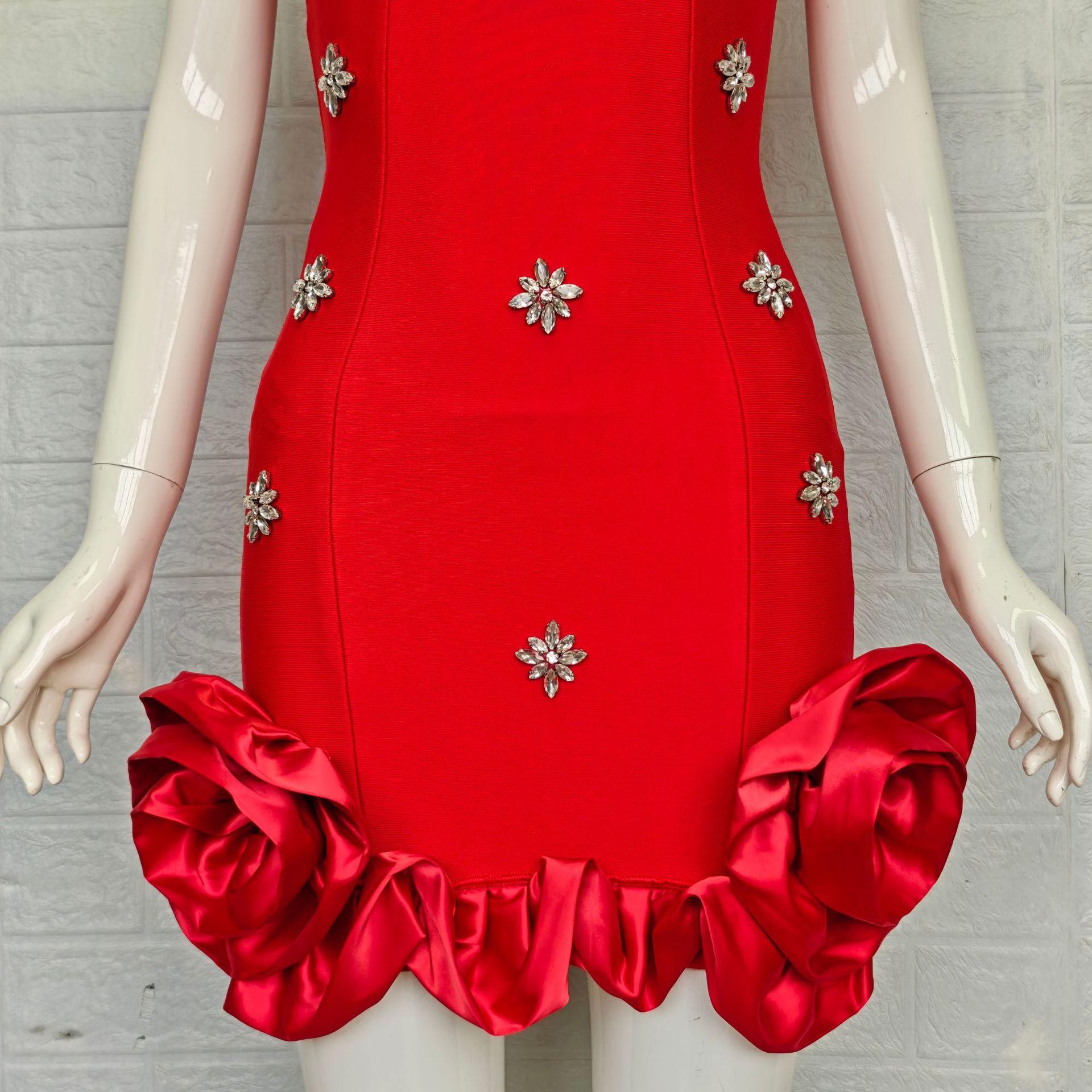 Nuevo Camisola Sexy Transfronteriza Europea y Americana con Volantes de Pedrería, Vestido de Vendaje para Mujer Estilo Socialité, Vestido de Noche