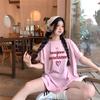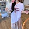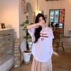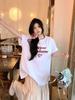 2025 Nuevo Estilo de Verano Dulce y Fresco Estampado de Letras Diseño Holgado y Versátil con Cuello Redondo Estilo Dulce Estilo de Largo Medio
