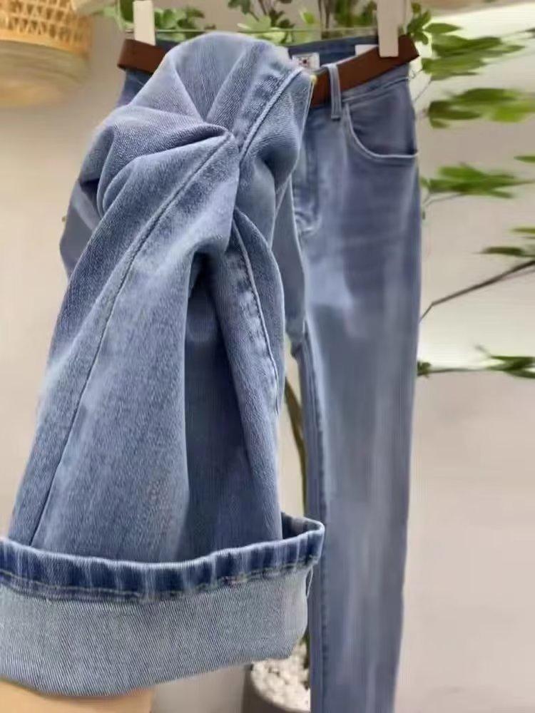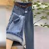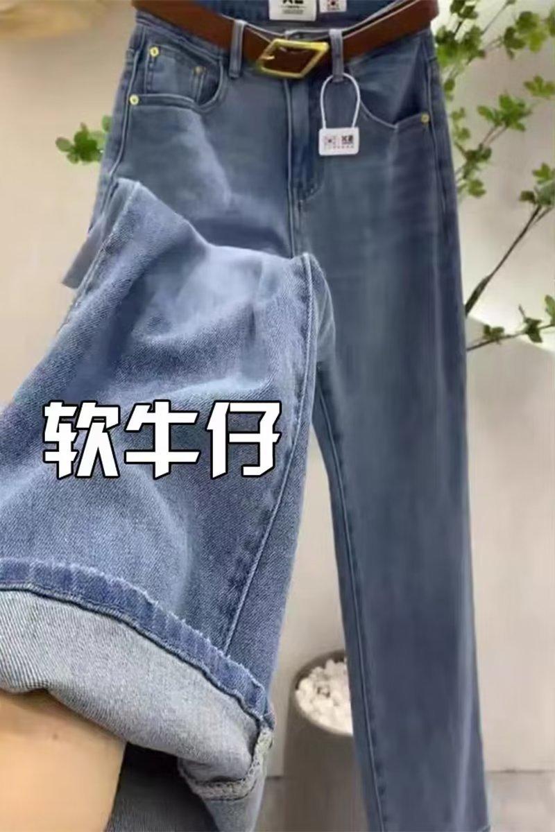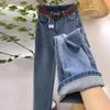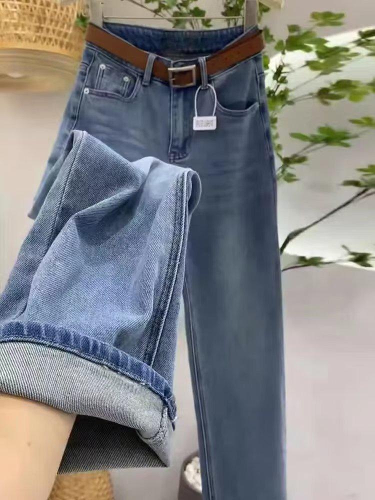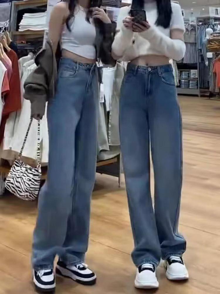 Jeans de Mujer Sueltos Rectos Verano 2024 Nuevos Primavera y Otoño Cintura Alta Costuras Pantalones Pequeños de Pierna Ancha