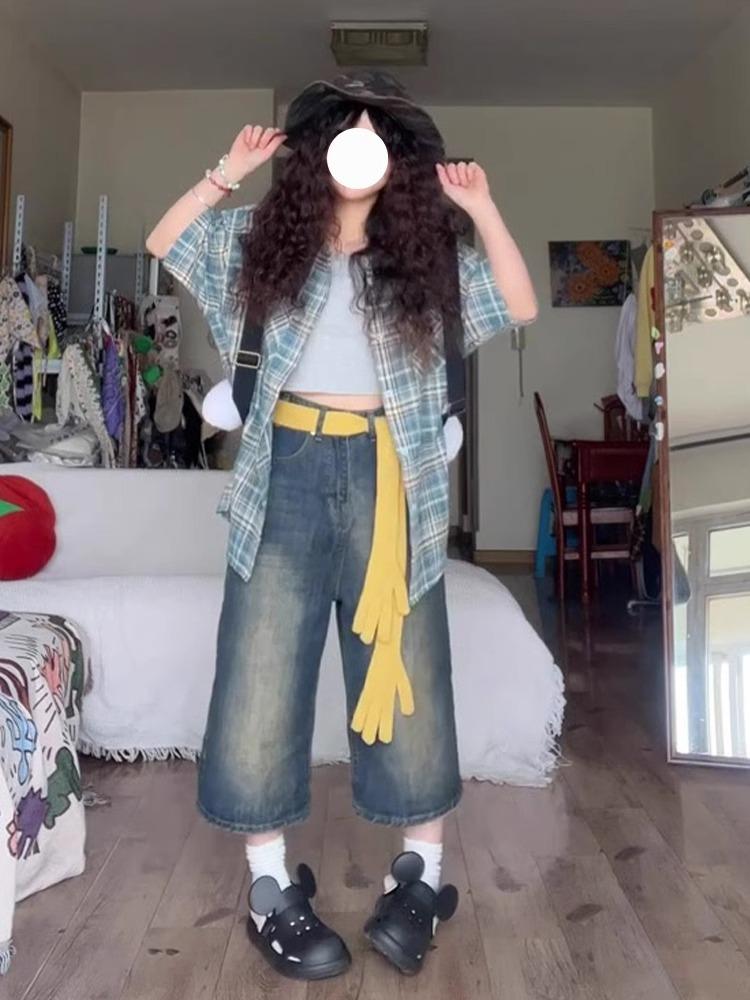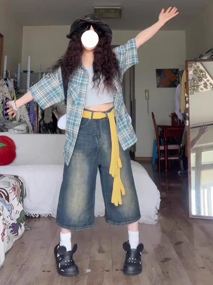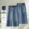 Jeans Retro de Pierna Ancha Recortados para Mujer Talla Grande Verano 2025 Nuevo mm Gordo Aspecto Adelgazante Fluido Pantalones de Pierna Ancha
