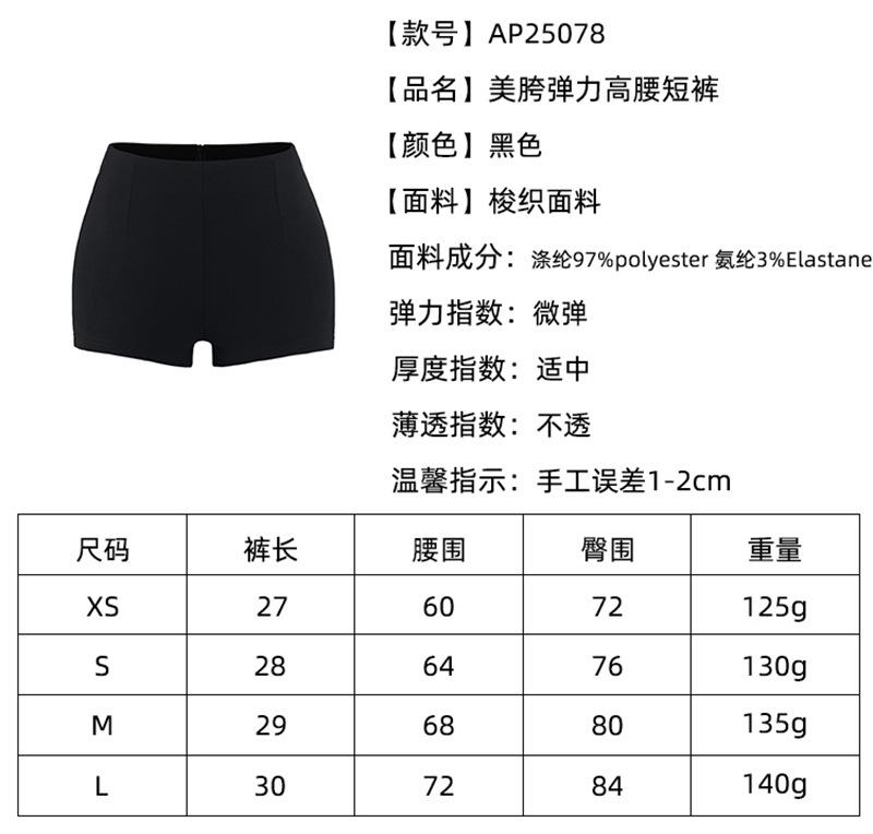 25078-2025 Pantalones cortos casuales sexy elásticos de estilo europeo y americano para mujer, ajustados, de cintura alta, para cadera