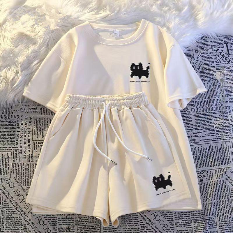 Traje Deportivo Casual Adelgazante Holgado de Verano 2025 Estilo Coreano Estilo Perezoso Estudiante Manga Corta Shorts Conjunto de Dos Piezas Moderno