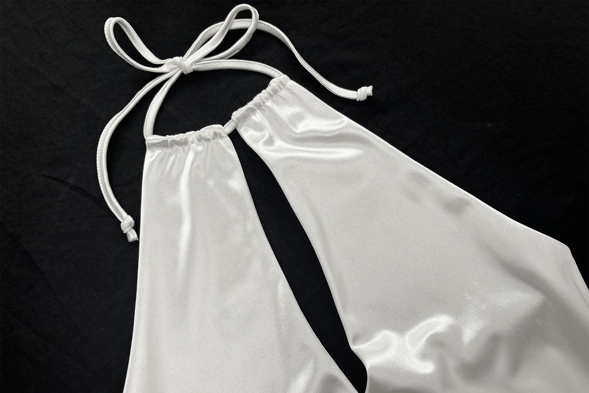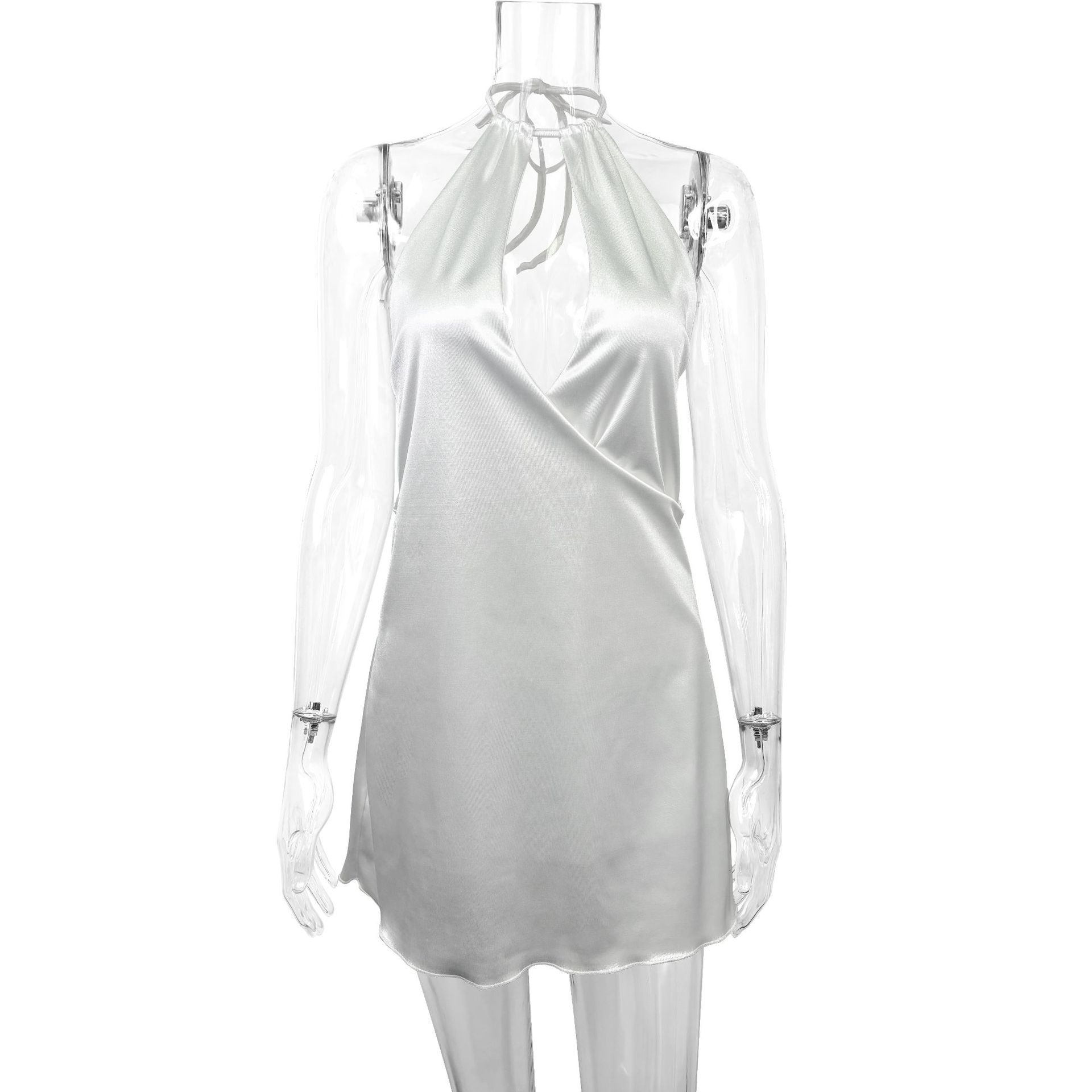 Cuello halter ajustable a voluntad, diseño de falda corta irregular, estilo más europeo y americano,