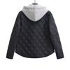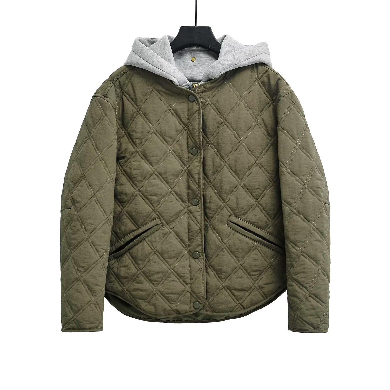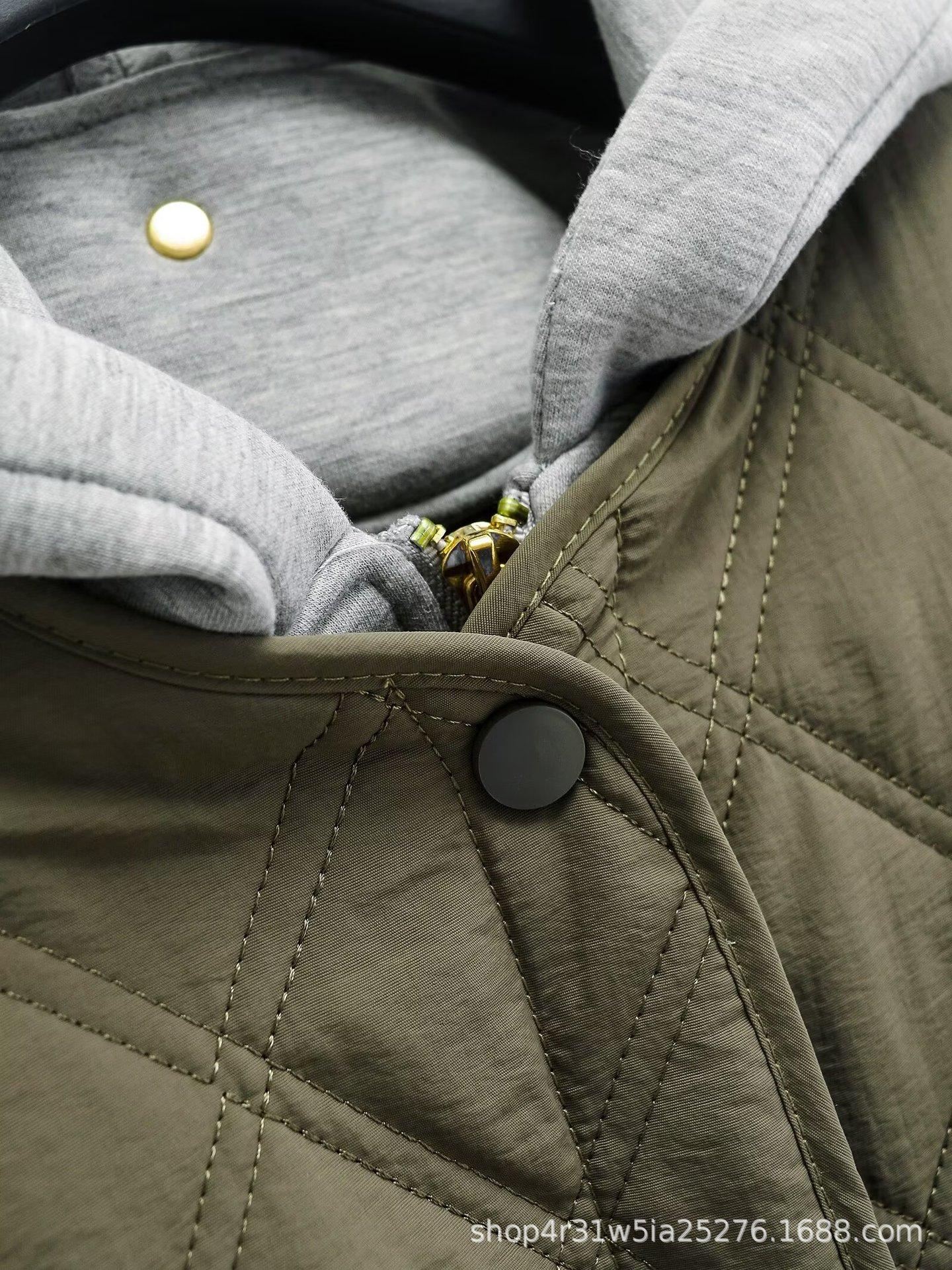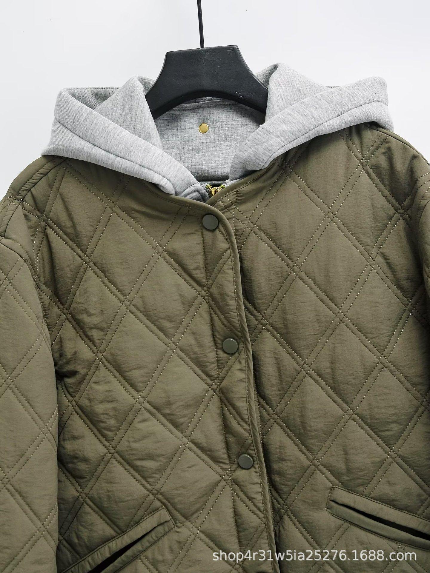 2024 Nuevo Invierno Falso Dos Piezas Desmontable Empalmado con Capucha Algodón Ropa Exterior Suelto Casual Acolchado Línea Chaqueta