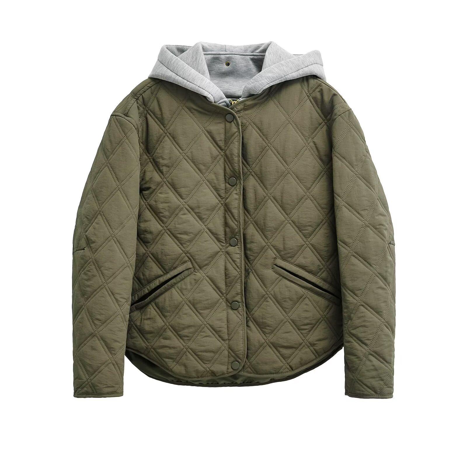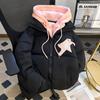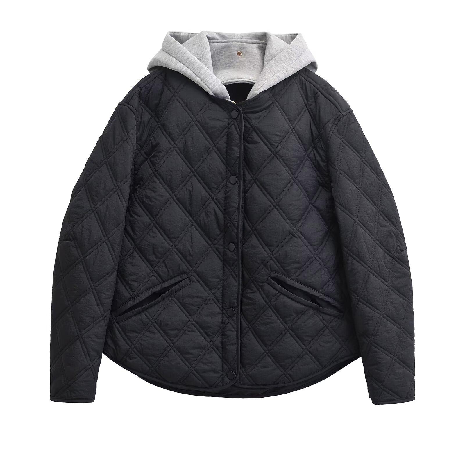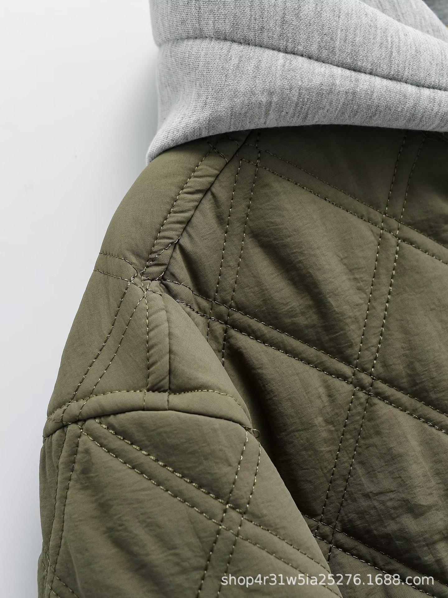 2024 Nuevo Invierno Falso Dos Piezas Desmontable Empalmado con Capucha Algodón Ropa Exterior Suelto Casual Acolchado Línea Chaqueta