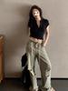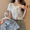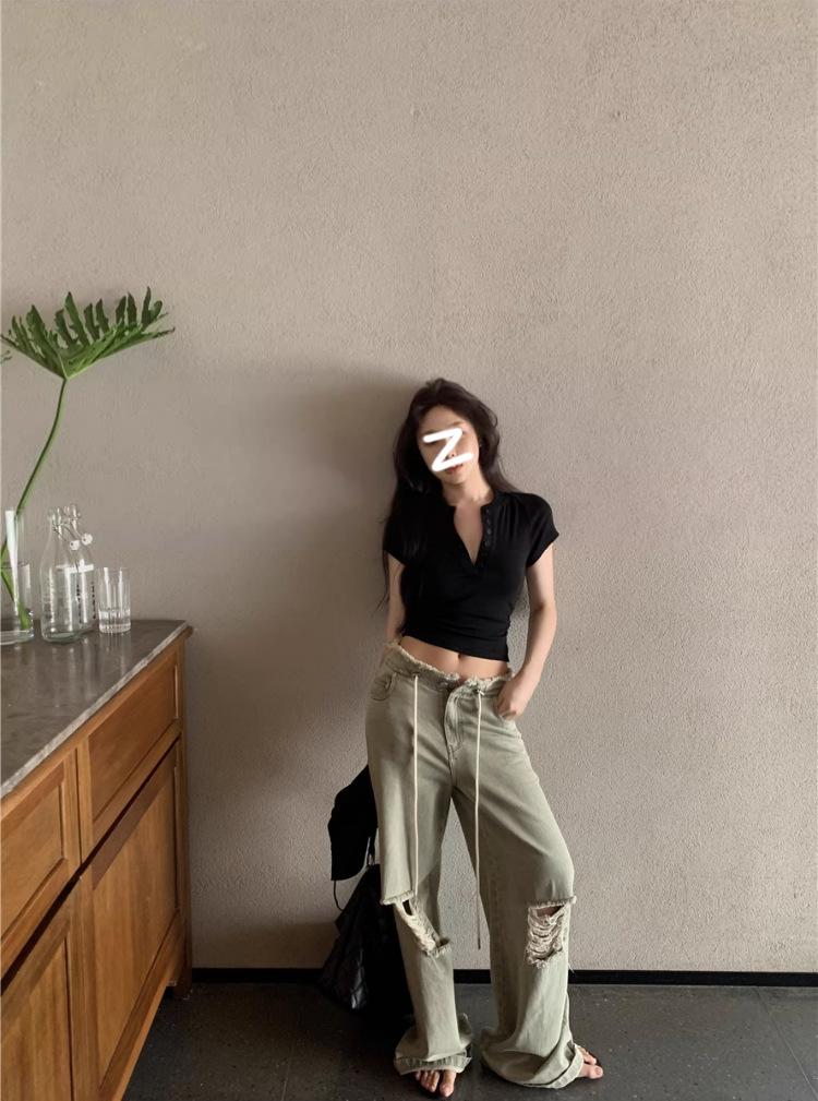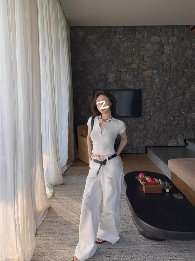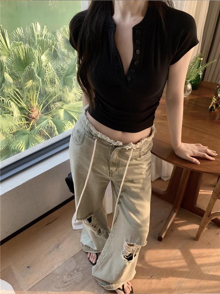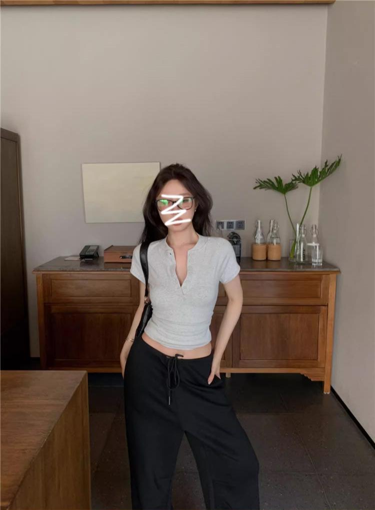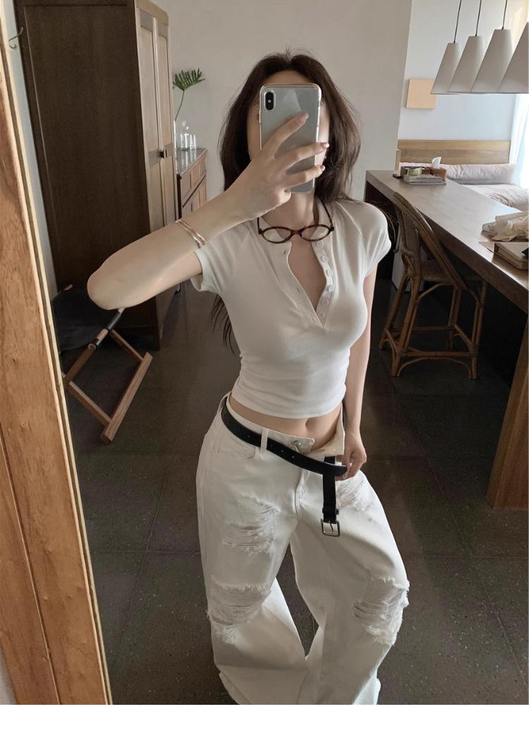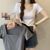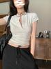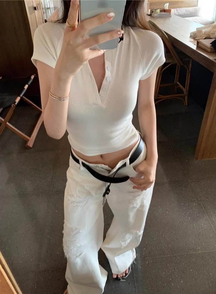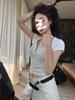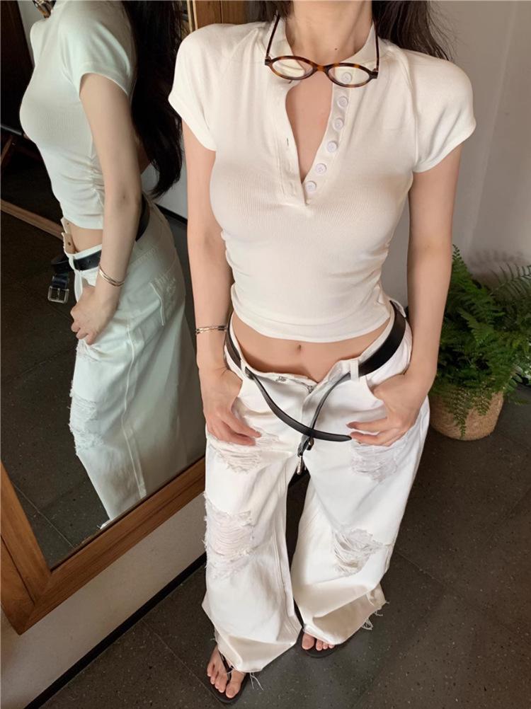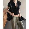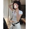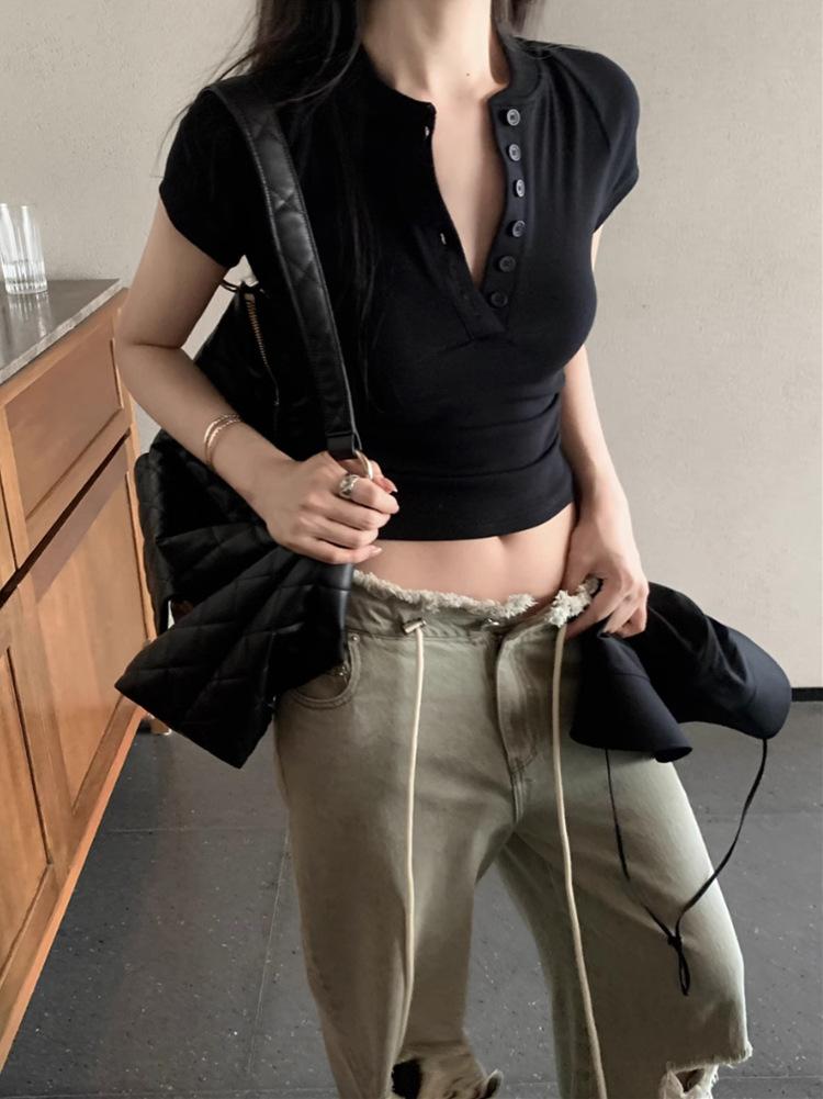 Camiseta Francesa de Cuello Medio Abierto y Manga Corta para Mujer, Diseño de Verano de Nicho, Ajustada, Adelgazante, Estilo Spice Girl, Top Corto
