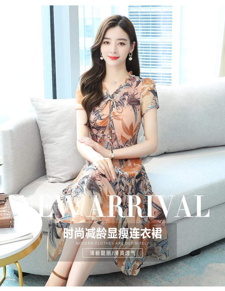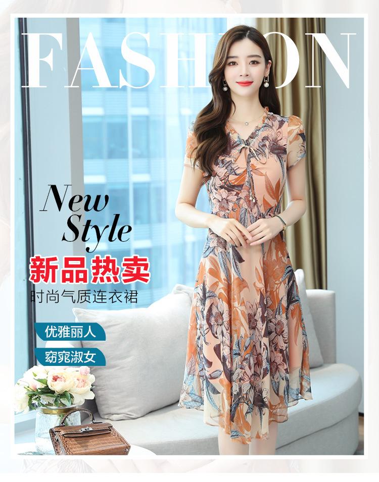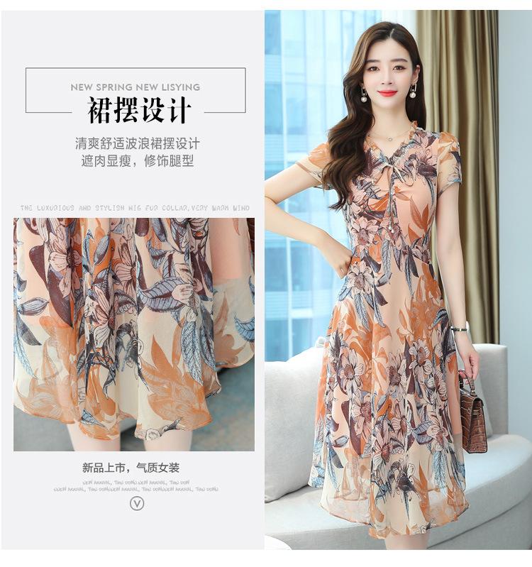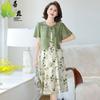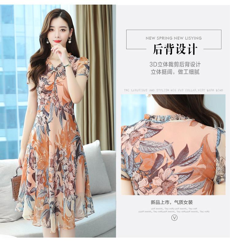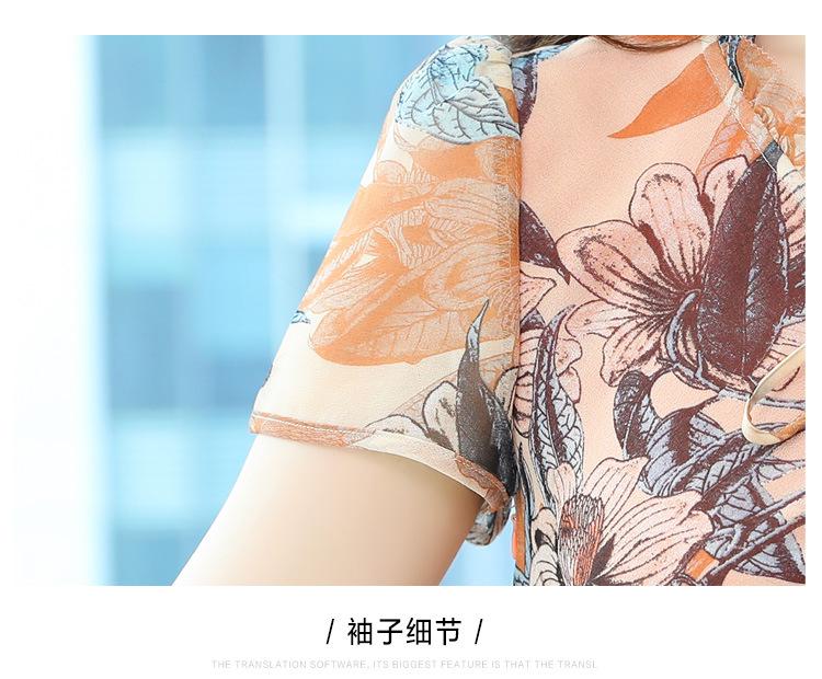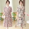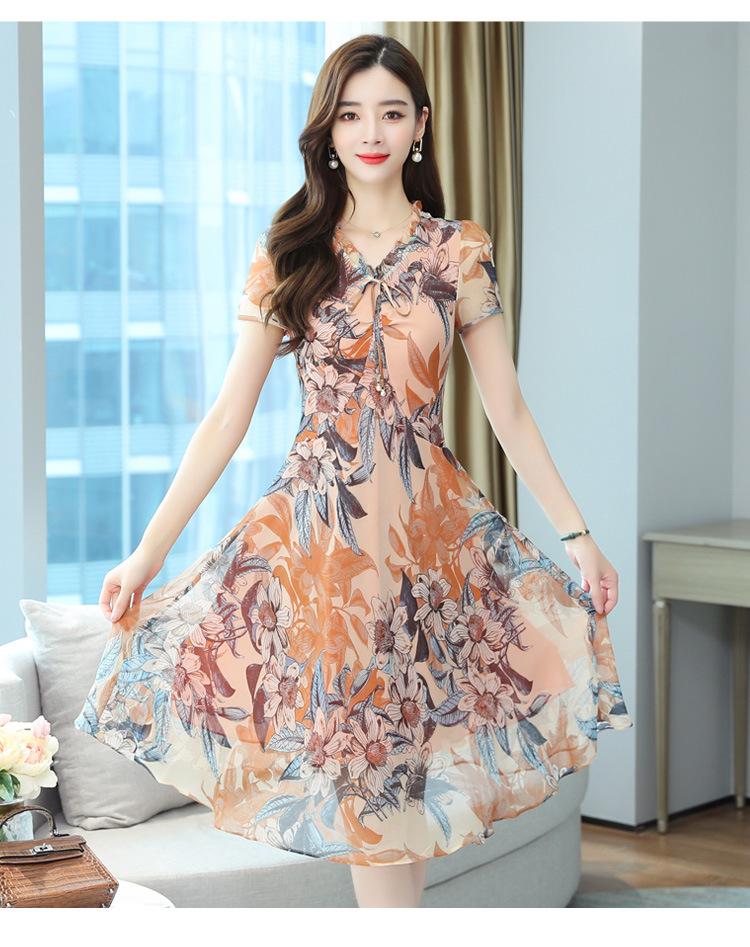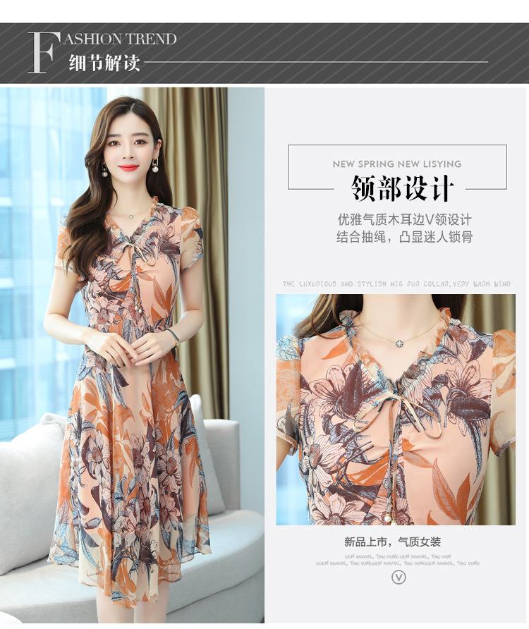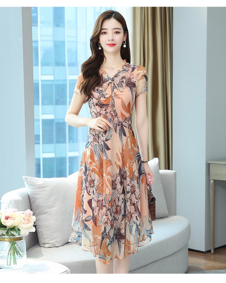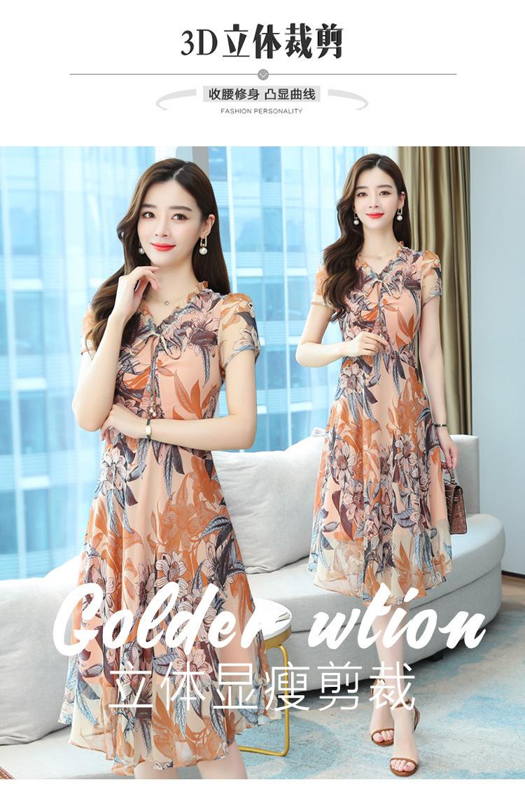 Vestido de Gasa Floral de Verano Nuevo Estilo para Madres de Mediana Edad Que Cubre el Vientre y Luce Adelgazante