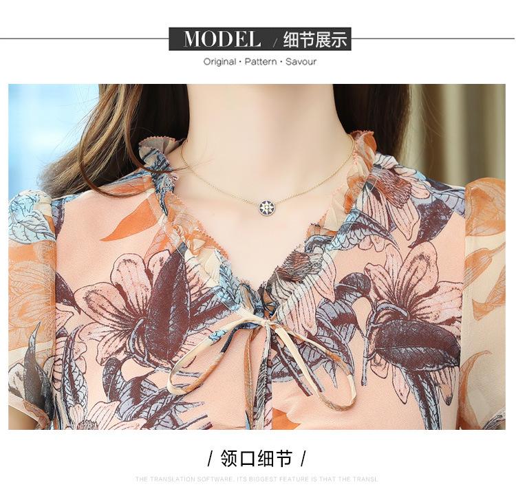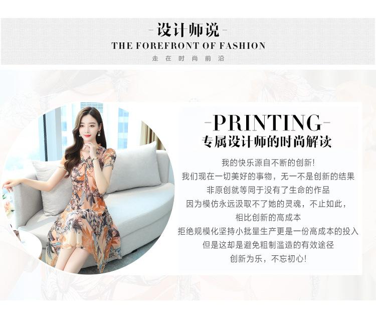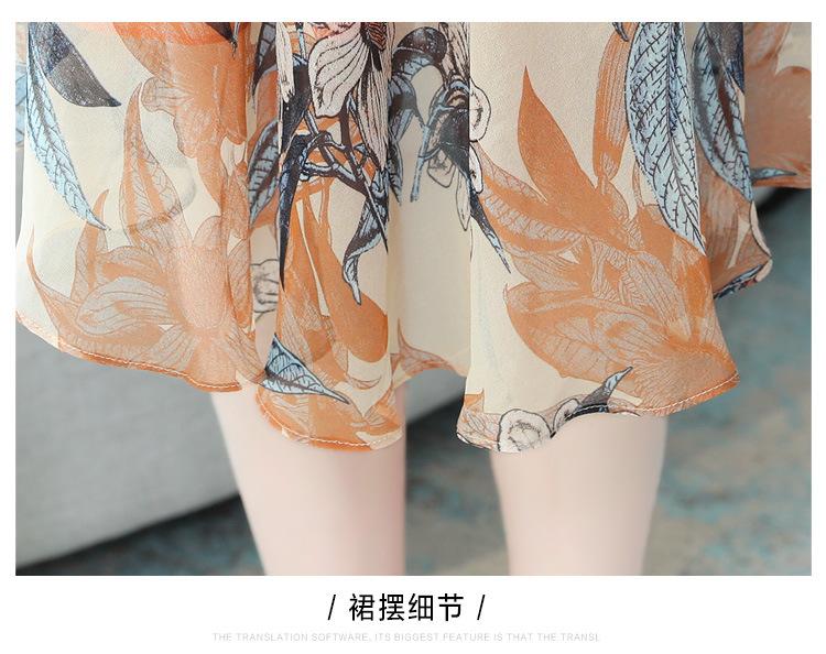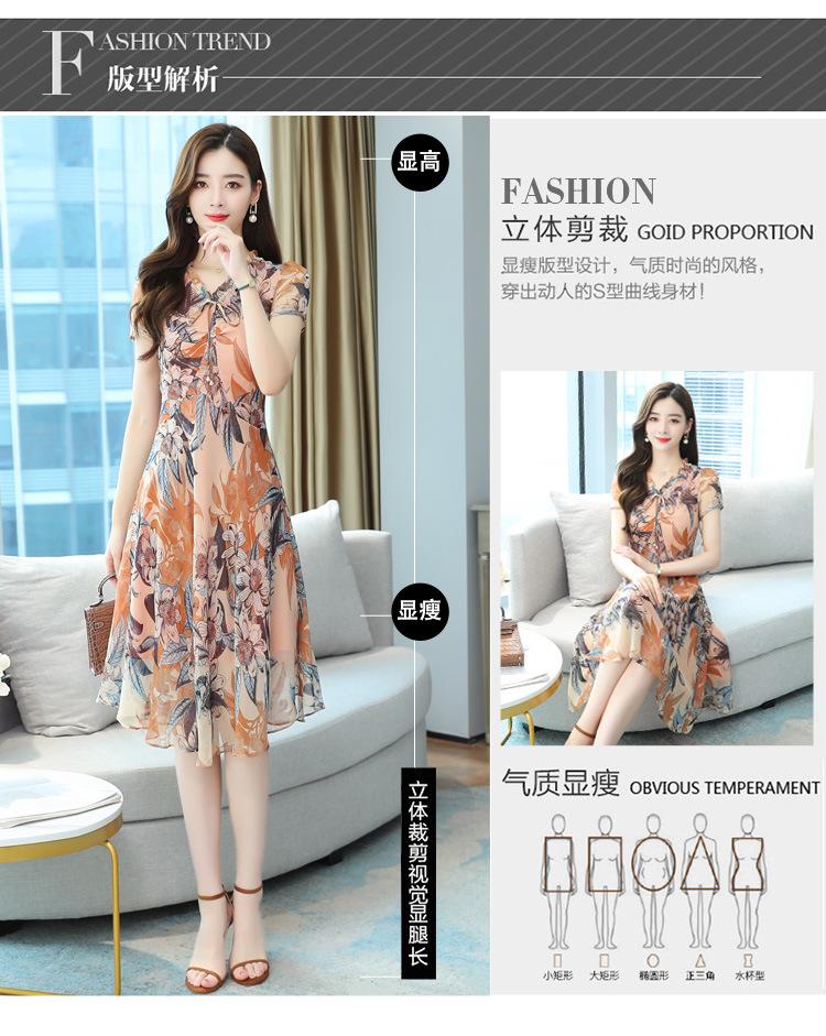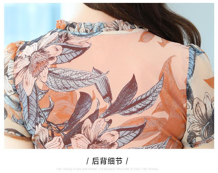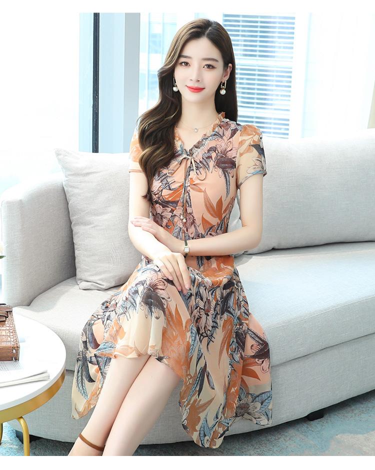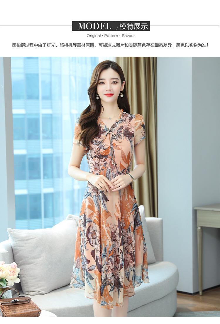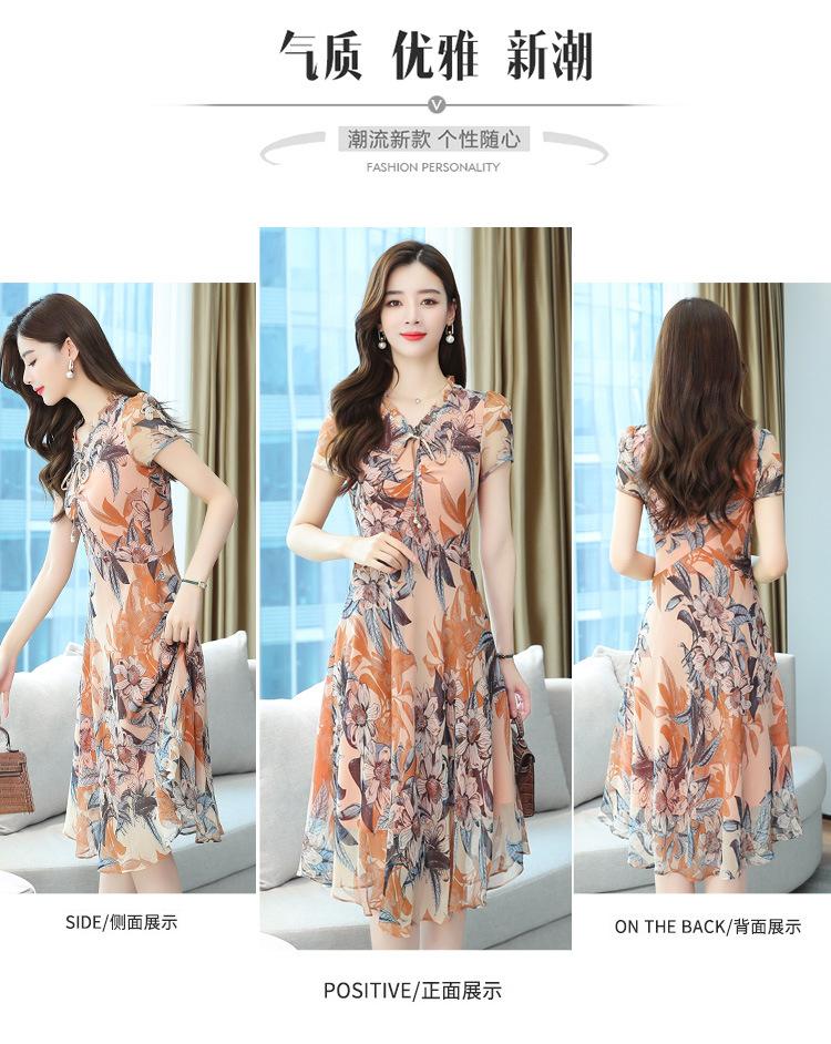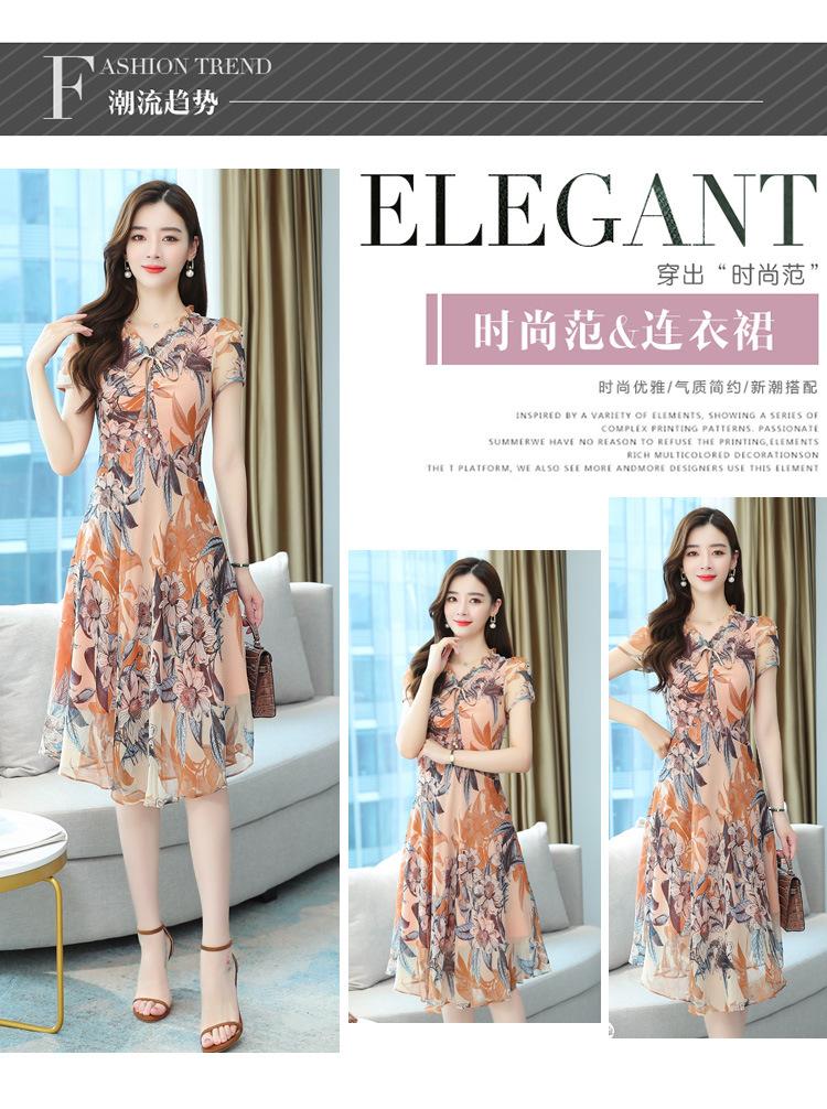 Vestido de Gasa Floral de Verano Nuevo Estilo para Madres de Mediana Edad Que Cubre el Vientre y Luce Adelgazante