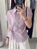 Camisa Morada 2025 Nueva Verano Estilo Coreano Camisa de Manga Corta con Cuello Polo Holgada Protección Solar Top Súper Bonita para Mujer