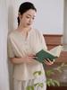 Algodón y lino para mujer 2025 verano nueva camiseta de manga corta para mujer nuevo cáñamo chino cuello en V chaqueta estilo nacional una generación de cabello