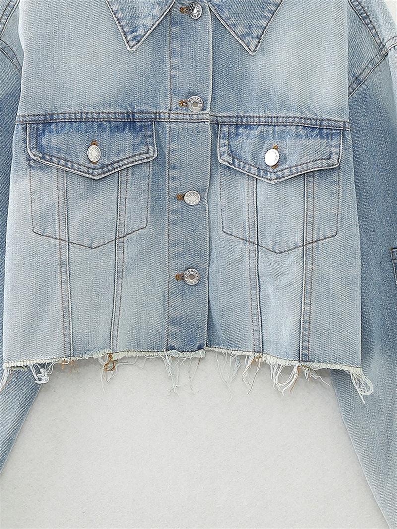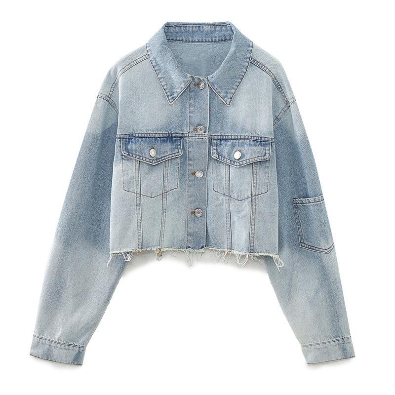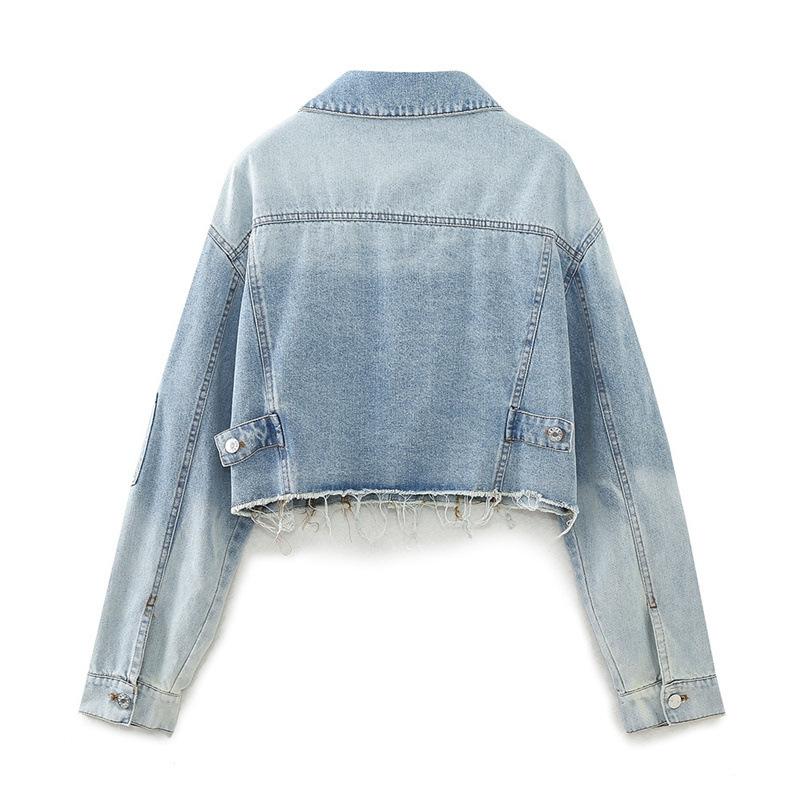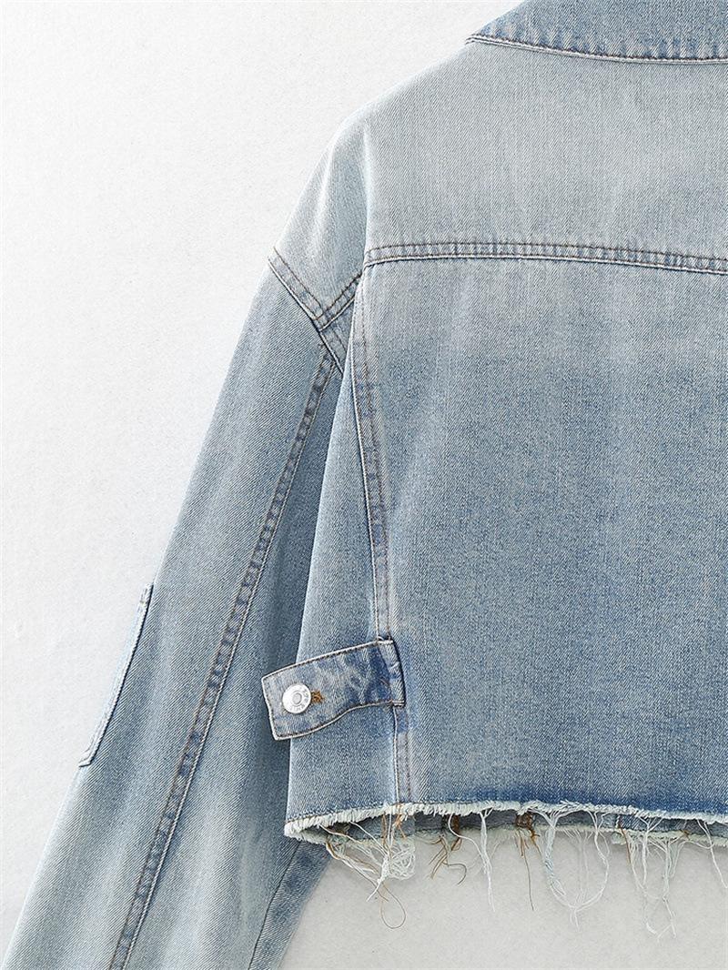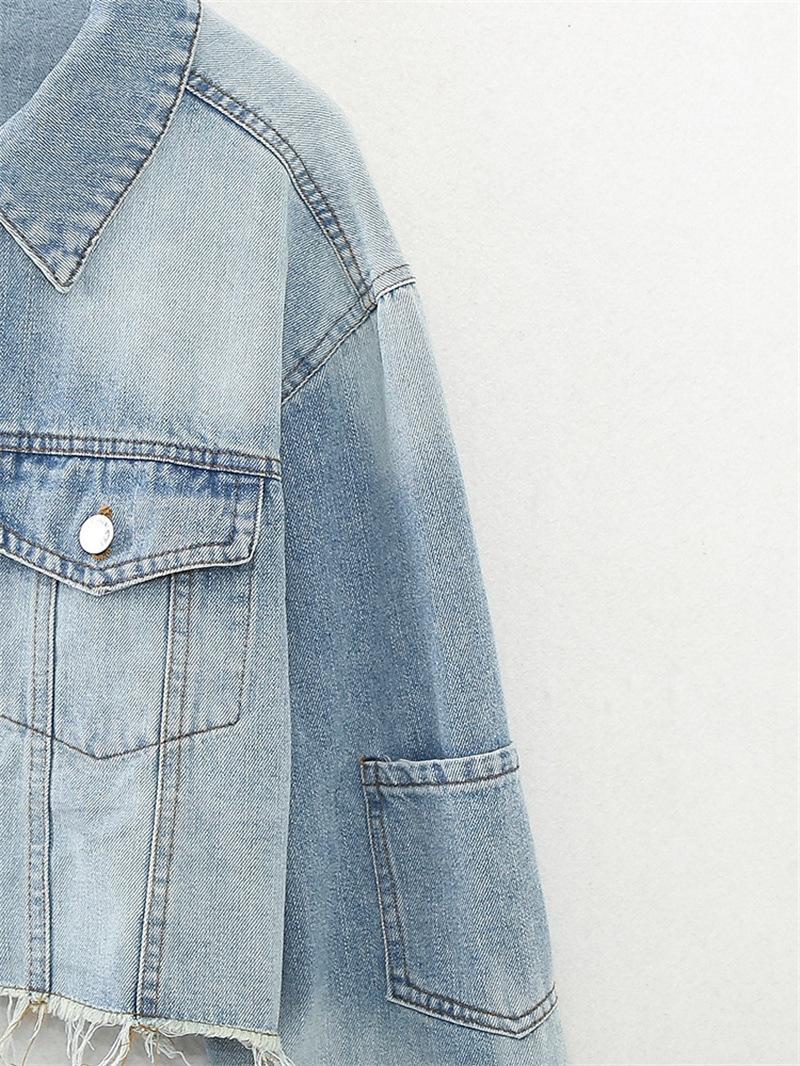 Chaqueta de Mezclilla Corta de Moda Estilo Europeo y Americano Street Trendy con Dobladillo Crudo Primavera y Otoño Chaqueta de Mezclilla Holgada 8197257