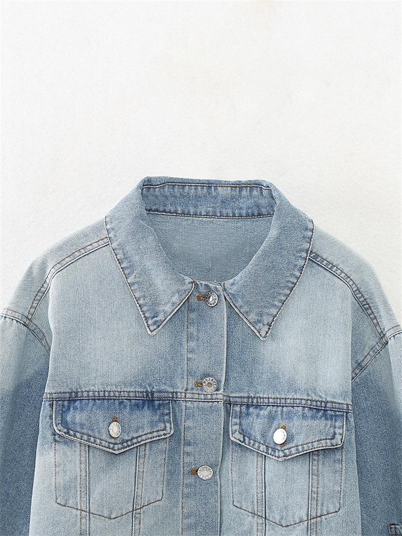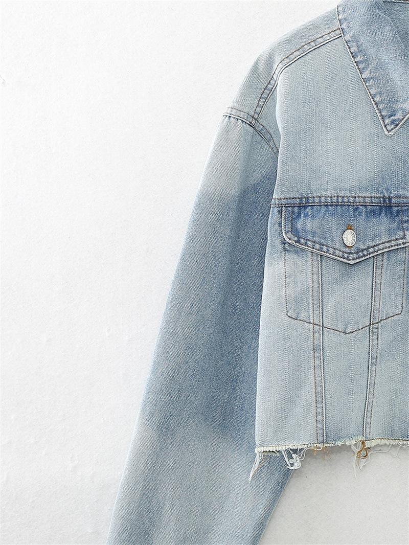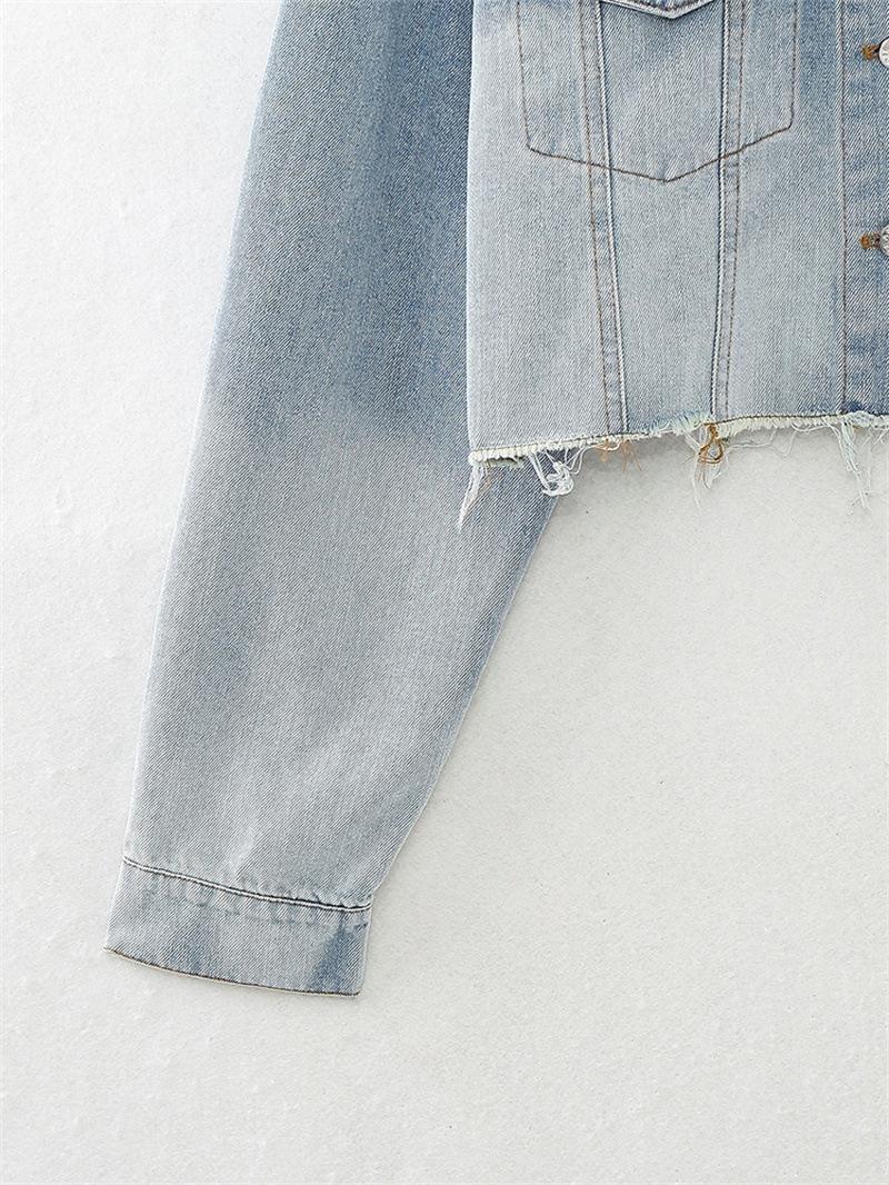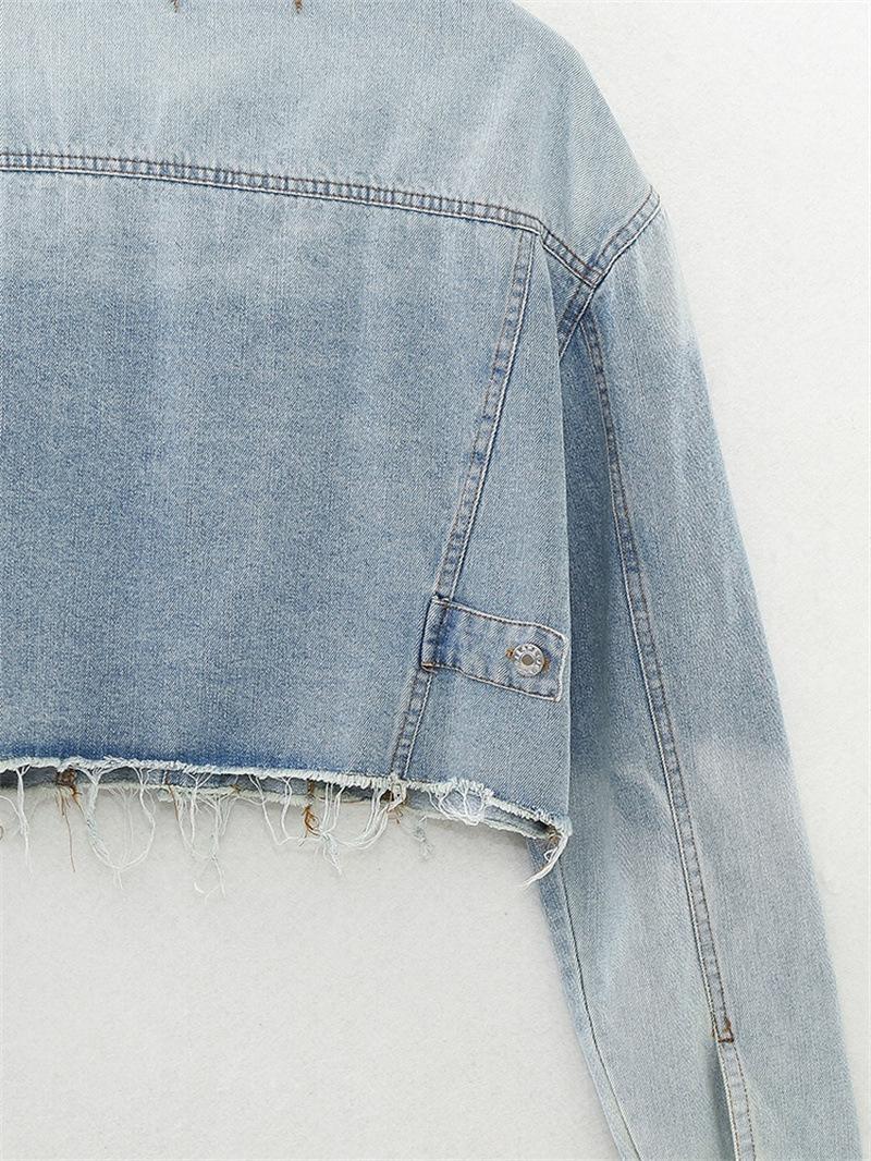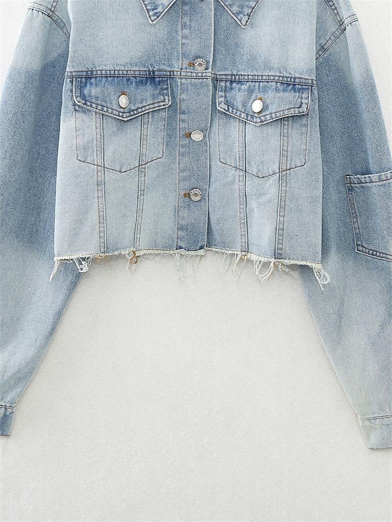 Chaqueta de Mezclilla Corta de Moda Estilo Europeo y Americano Street Trendy con Dobladillo Crudo Primavera y Otoño Chaqueta de Mezclilla Holgada 8197257