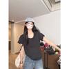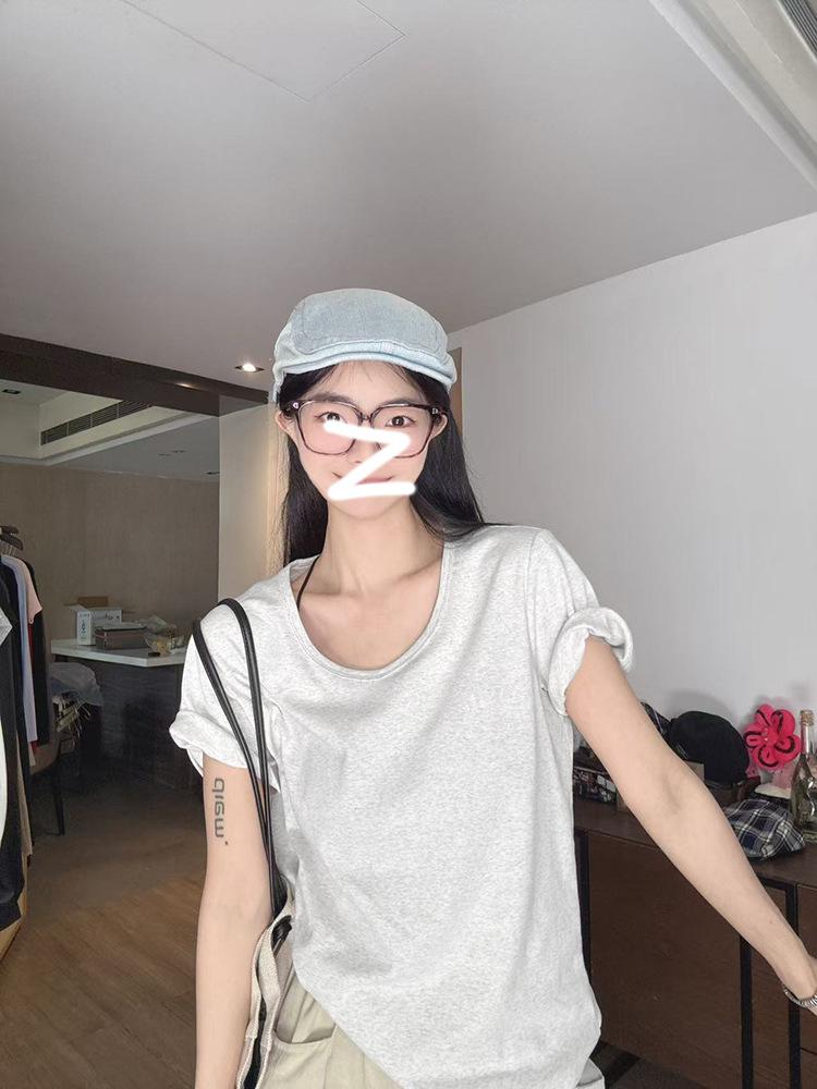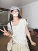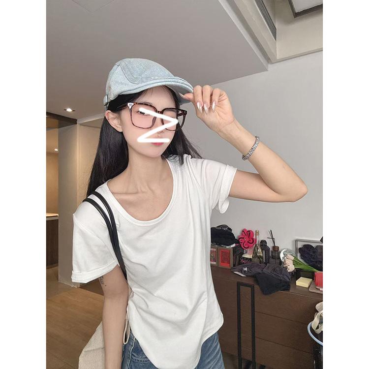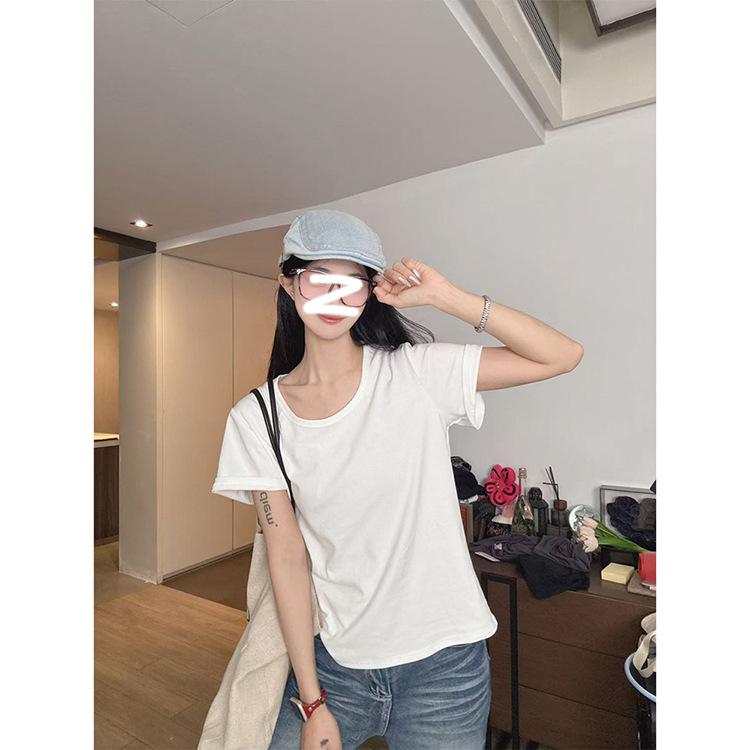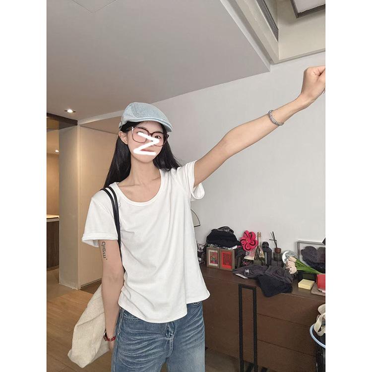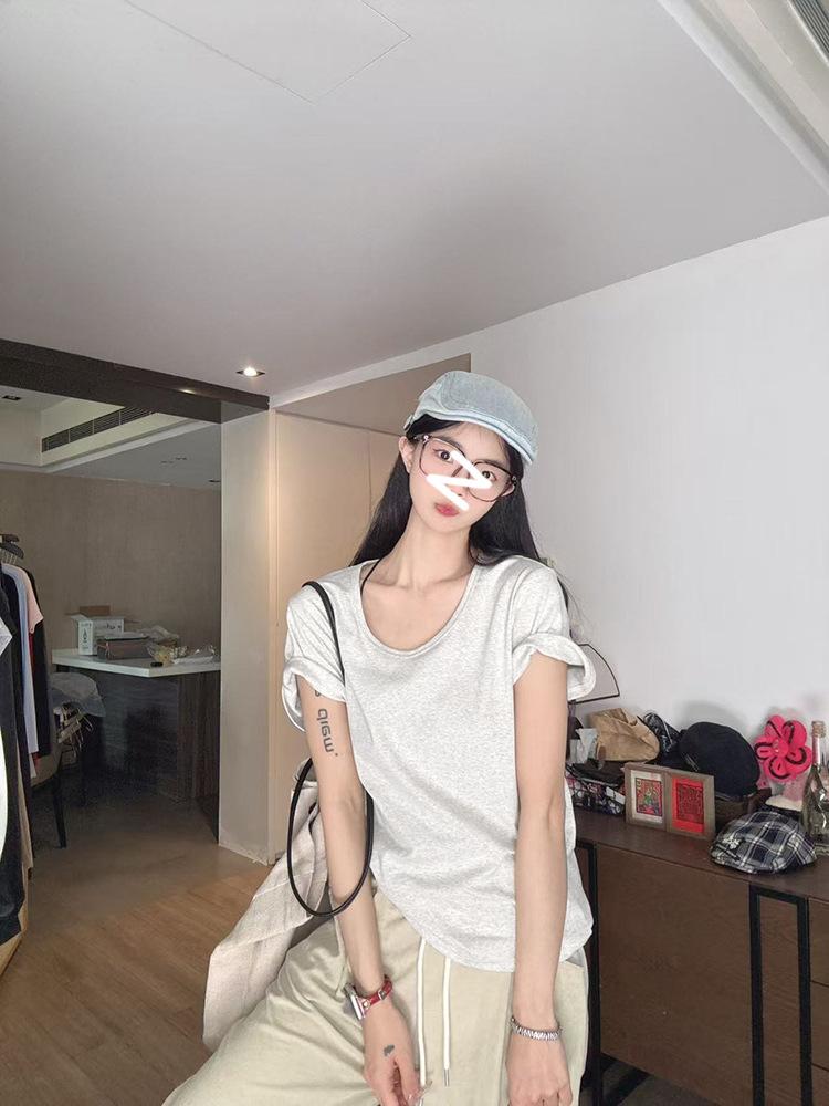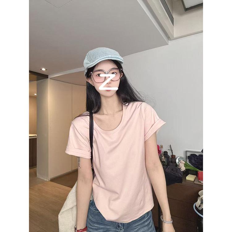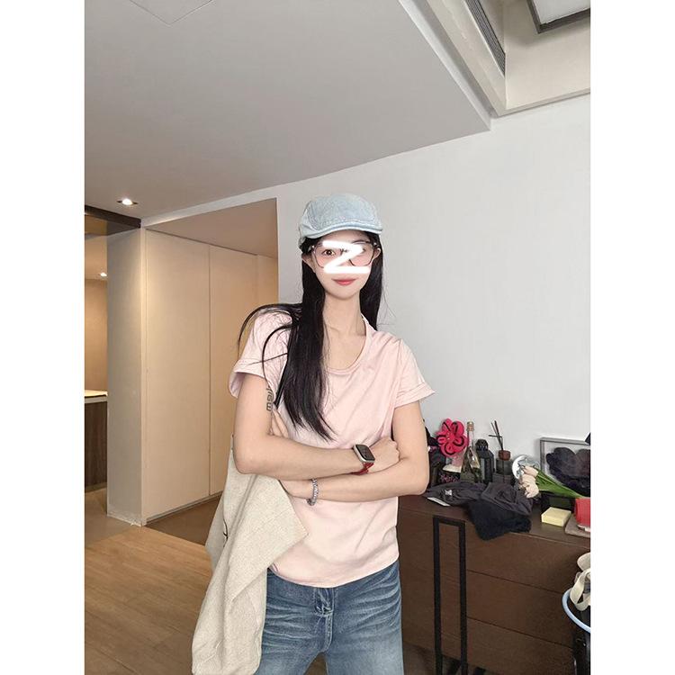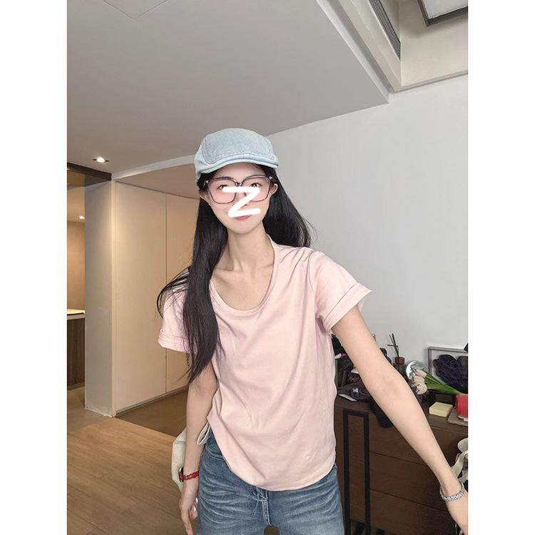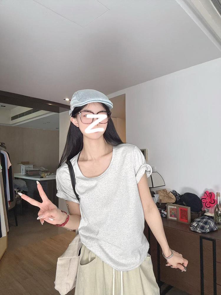Playera de Manga Corta con Cuello en U para Mujer Verano 2025 Nueva Talla Grande Top Cubre Carnes Sencillo y Versátil Casual Playera de Color Puro