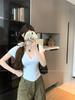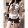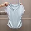 Azul Leche Cuello en V Manga Corta Mujer 2025 Nuevo Sexy Hombro Derecho Camiseta Verano Look Adelgazante Nicho Top Plisado