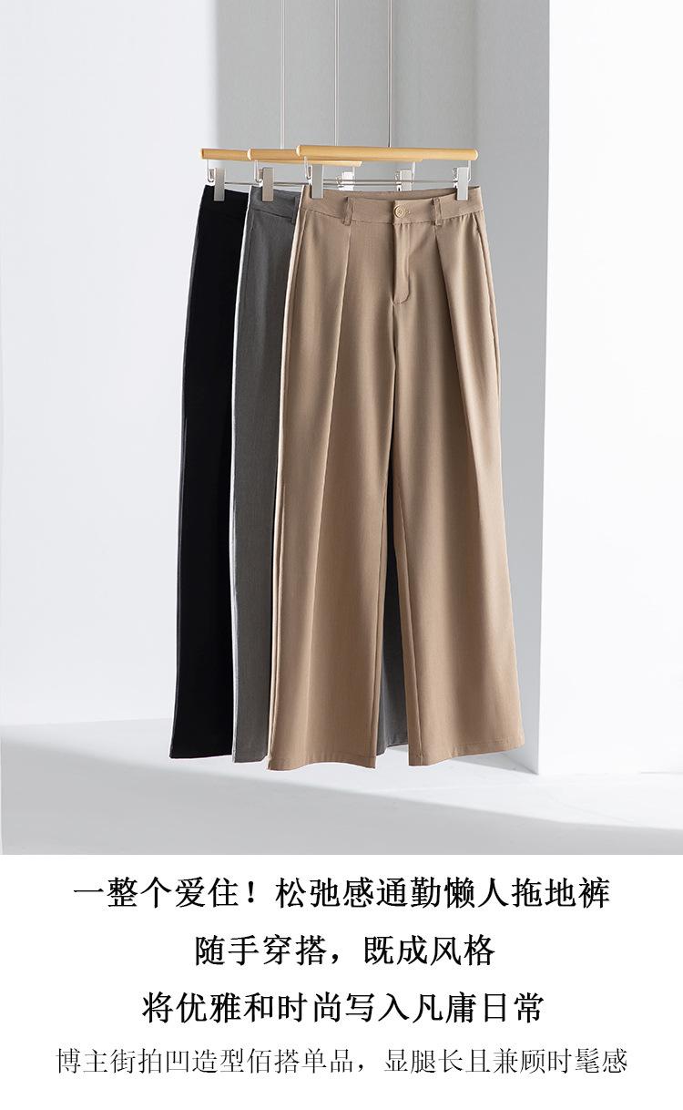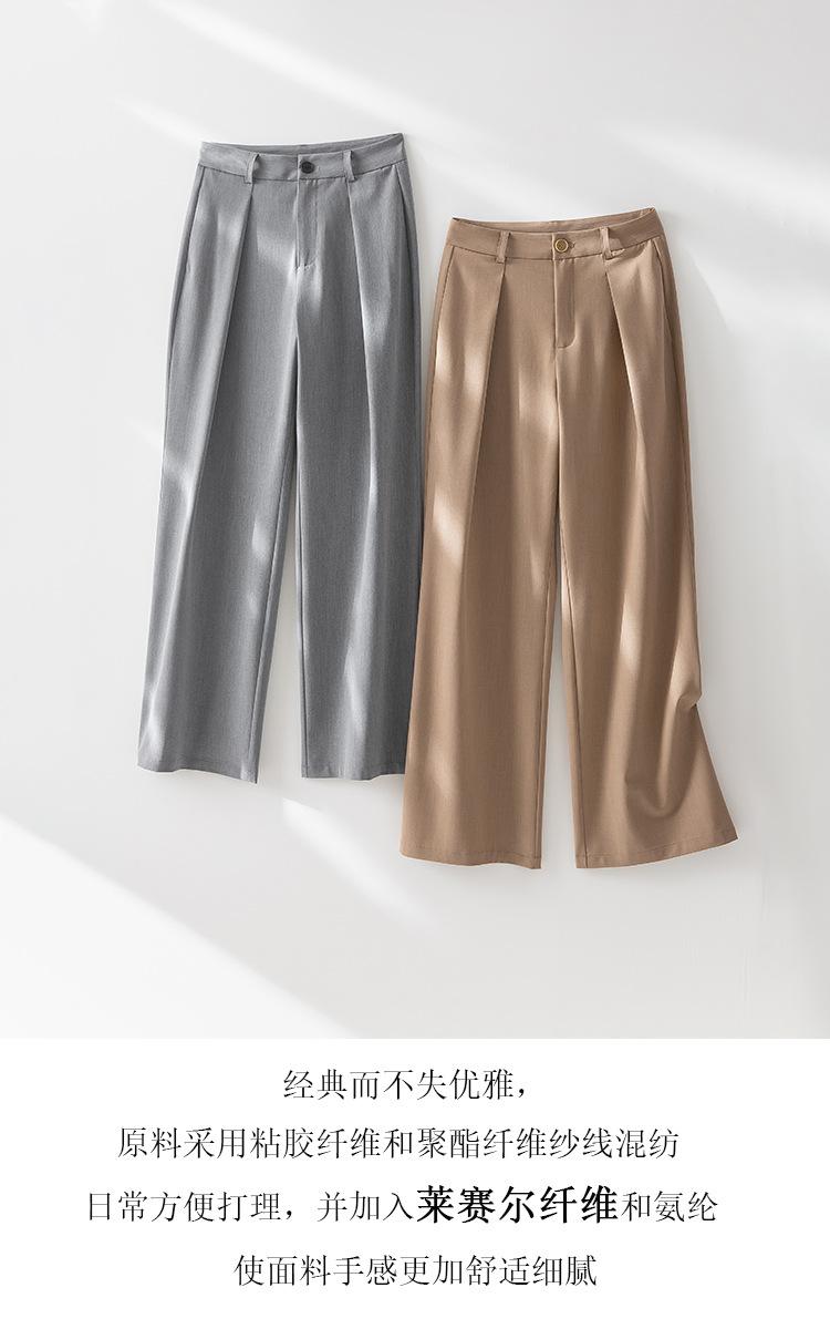 [Pantalones de Pierna Ajustada] Pantalones Rectos de Cintura Alta con Pliegues Tridimensionales en Tono de Moda para Mujer, Verano Nuevo, Pantalones Casuales Slim