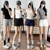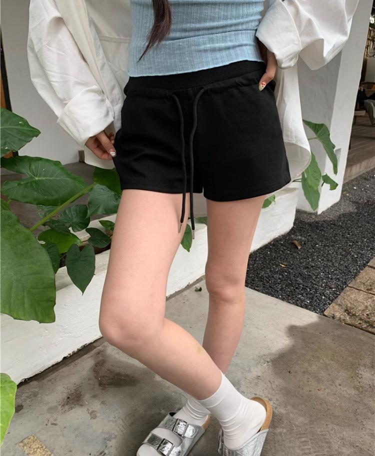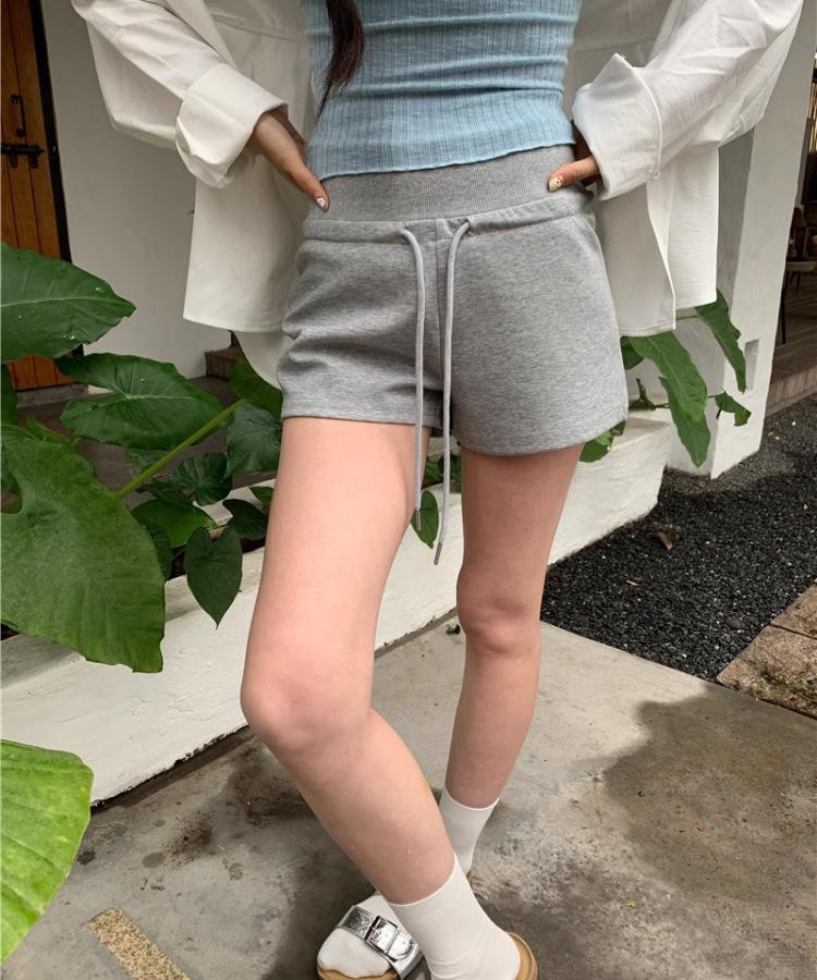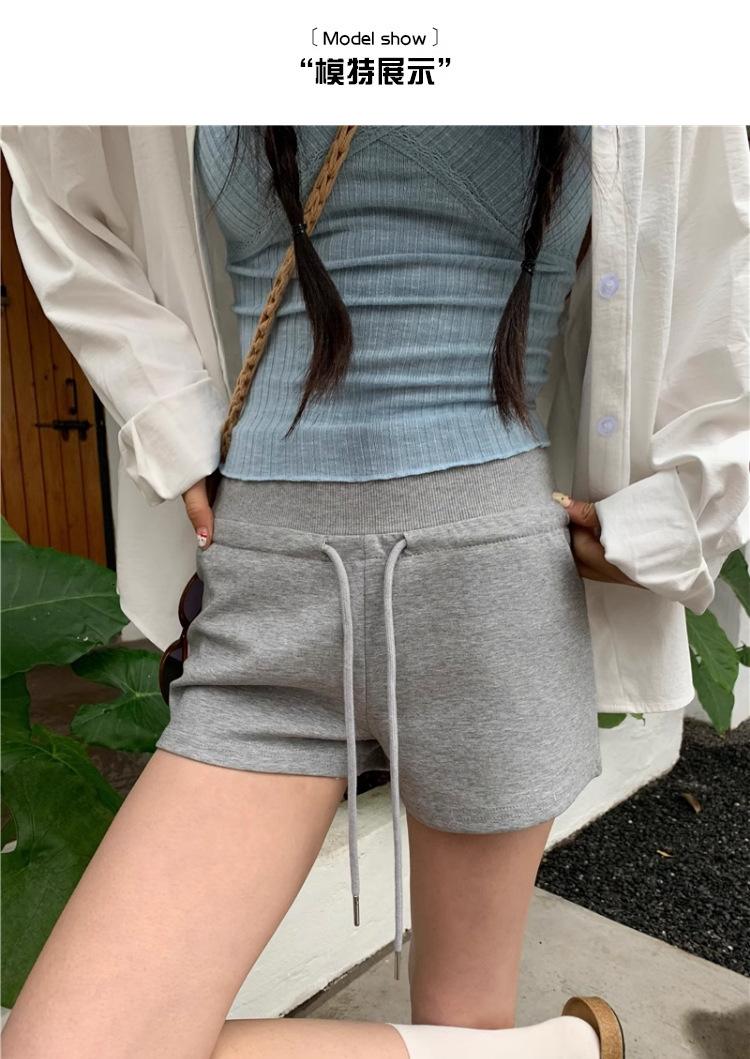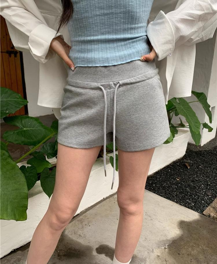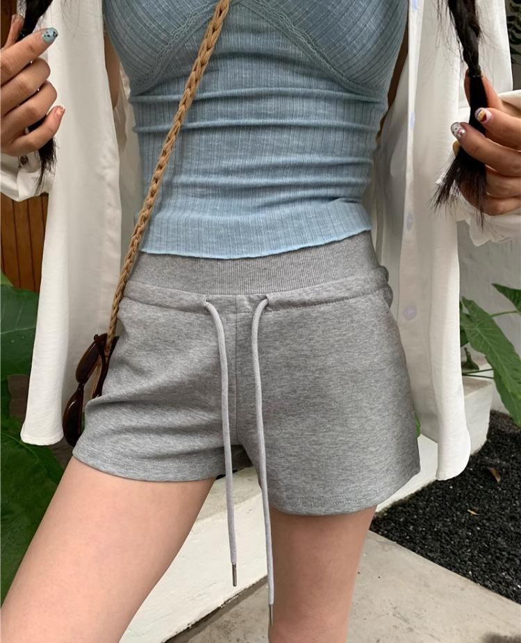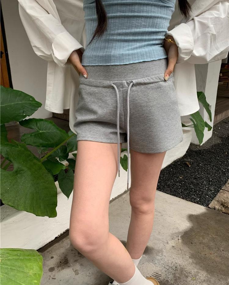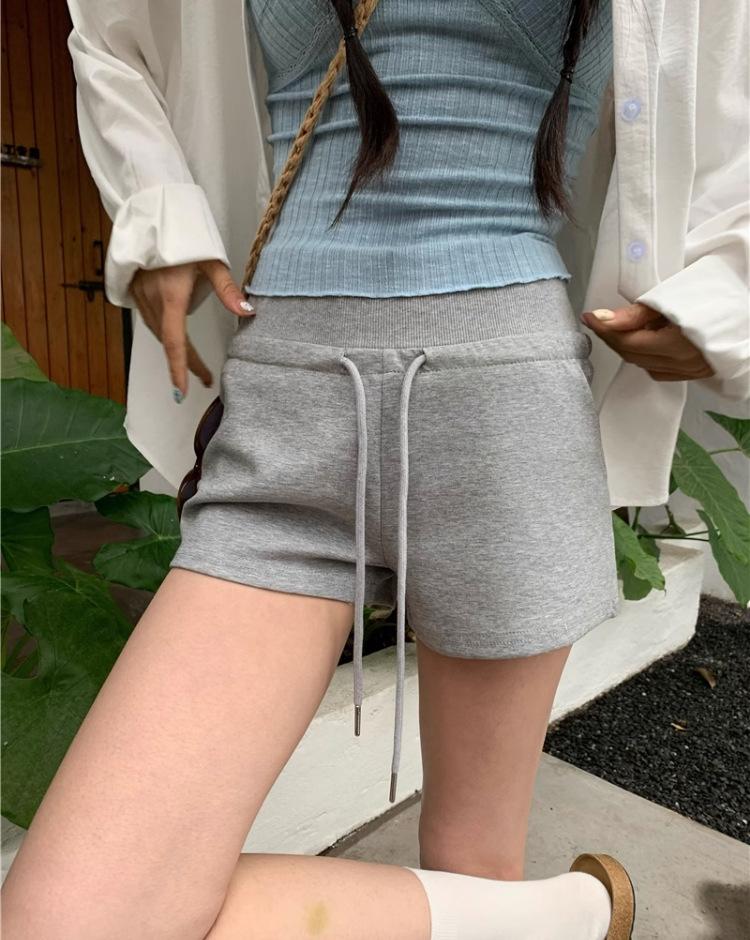 Pantalones cortos deportivos de estilo americano para chica guapa, de cintura media con cordón, de verano, corte ajustado, para uso exterior, grises, adelgazantes de cadera, casuales, hot pants