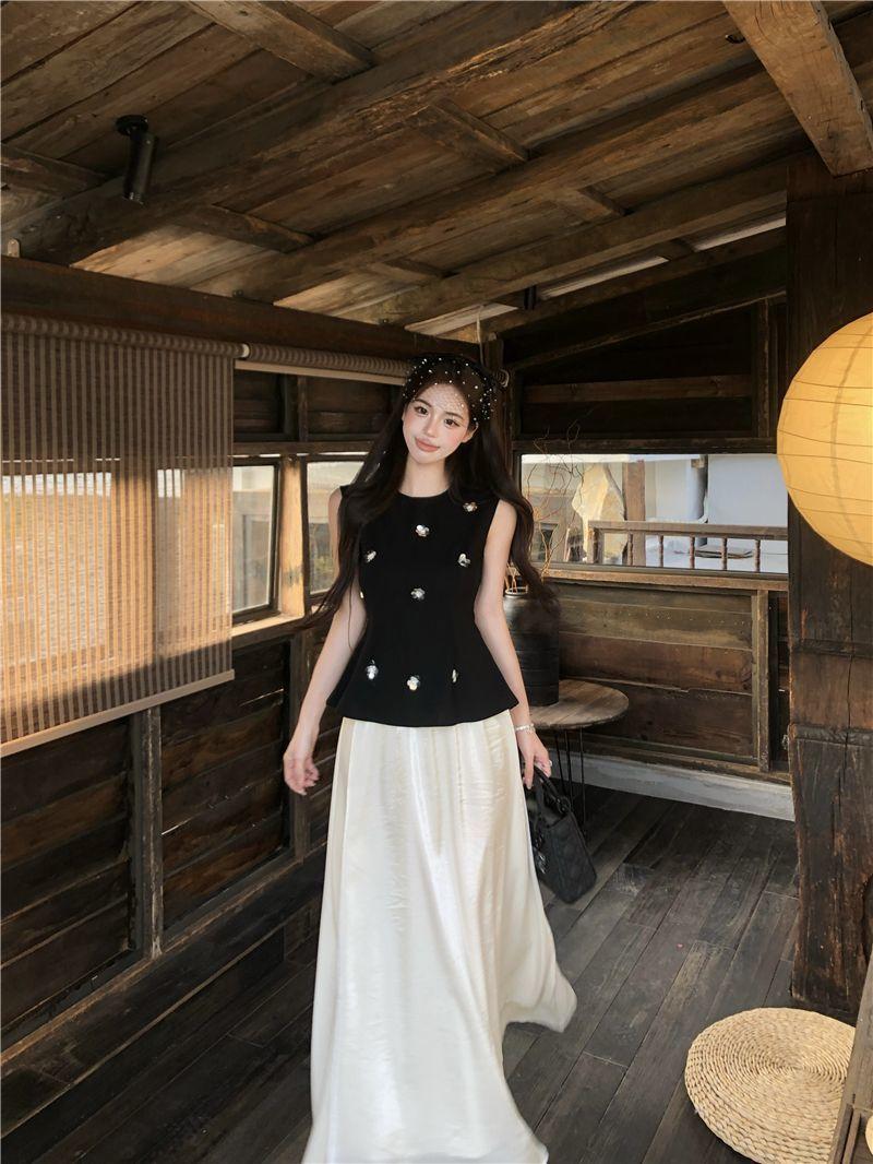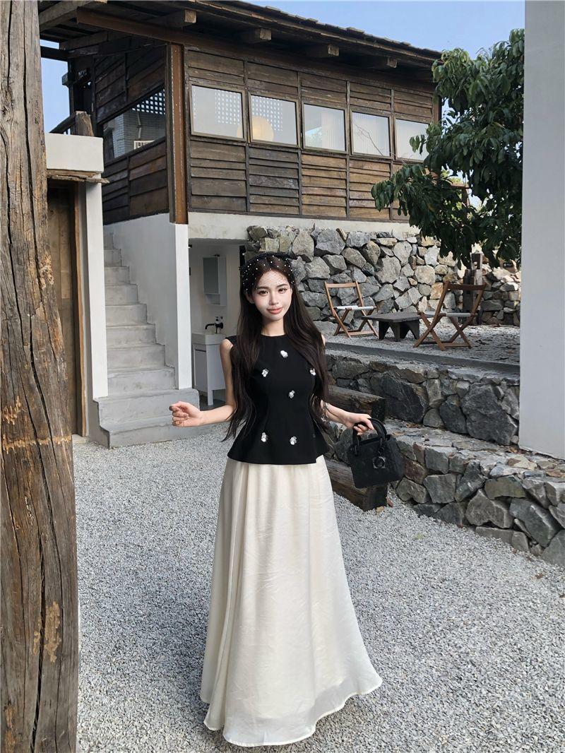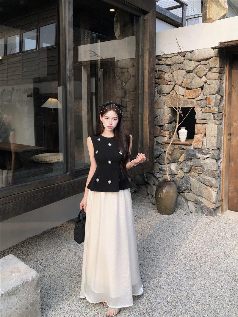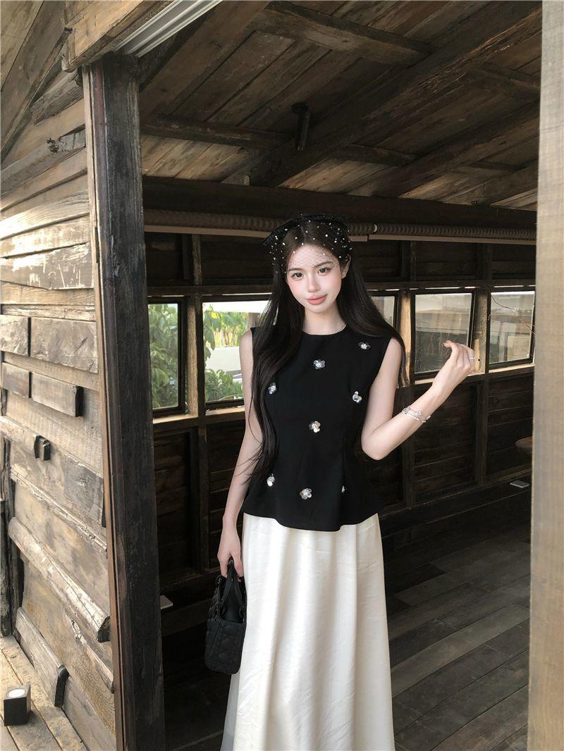 Tops [huaduoduo selection], White skirt [huaduoduo selection], Top + white skirt [two-piece set]