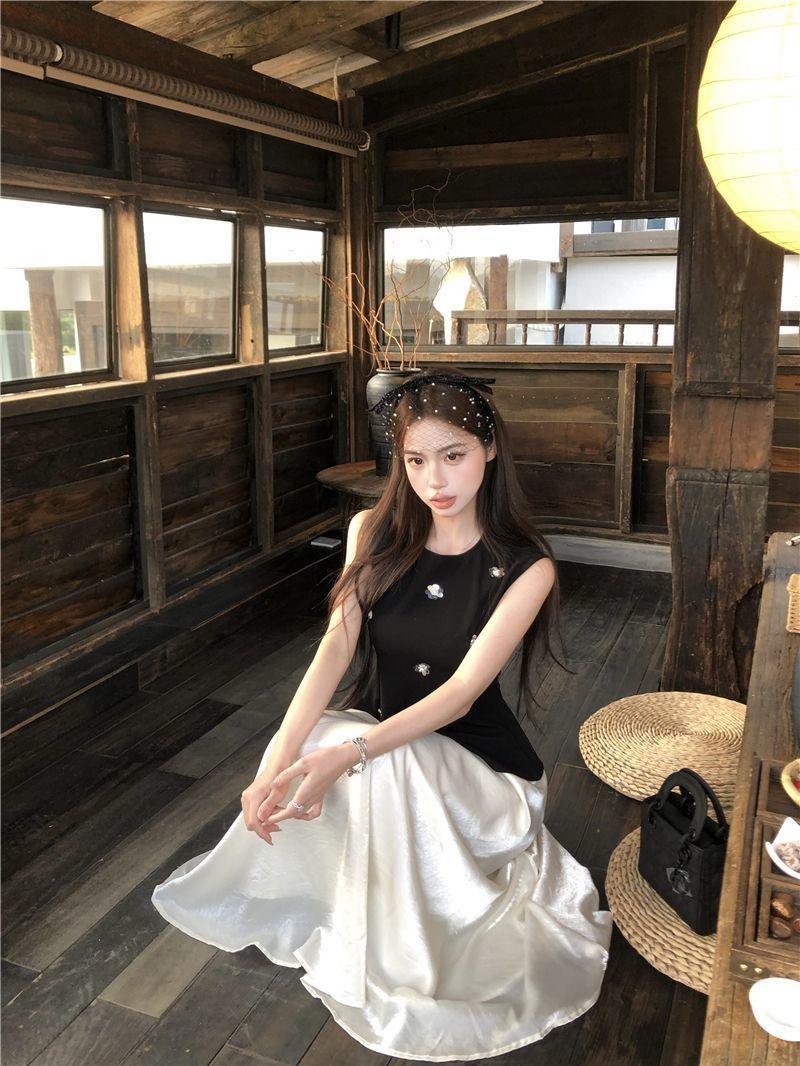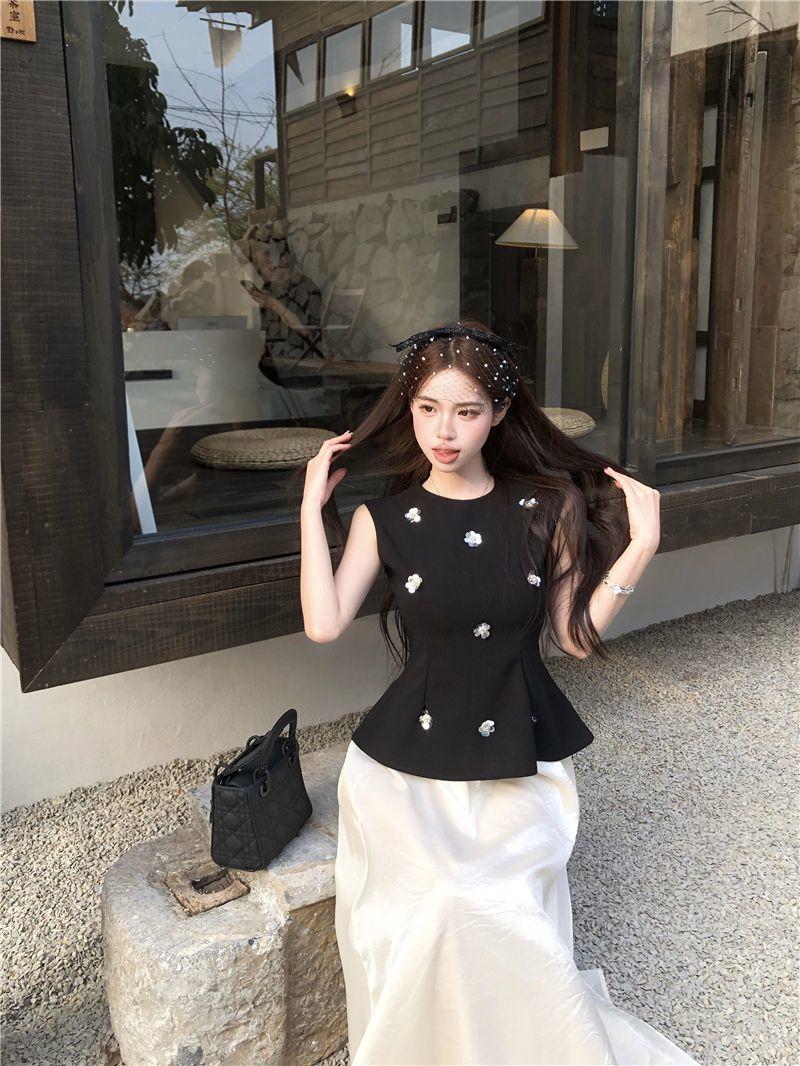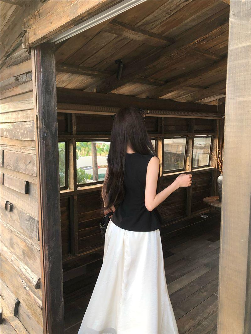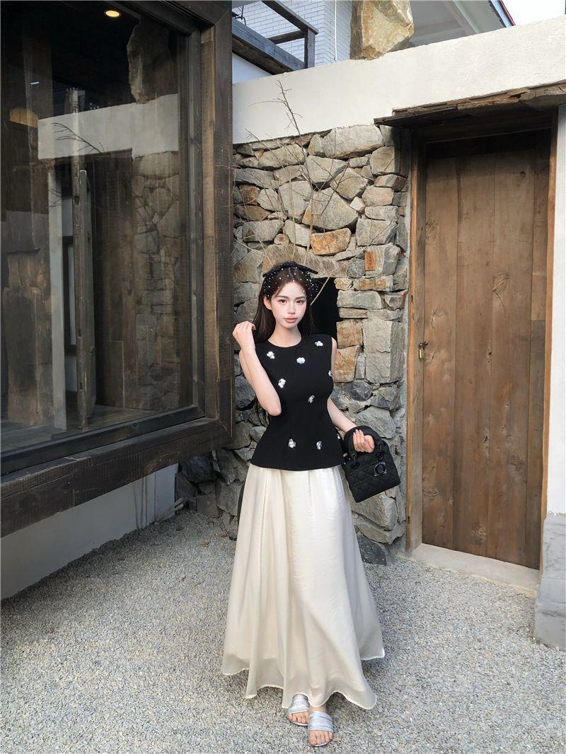 Tops [huaduoduo selection], White skirt [huaduoduo selection], Top + white skirt [two-piece set]