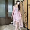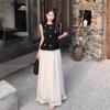 Traje de moda Camisola de flores tridimensionales para mujer 2025 Verano Nuevo Falda de cintura alta Falda línea A Conjunto de dos piezas