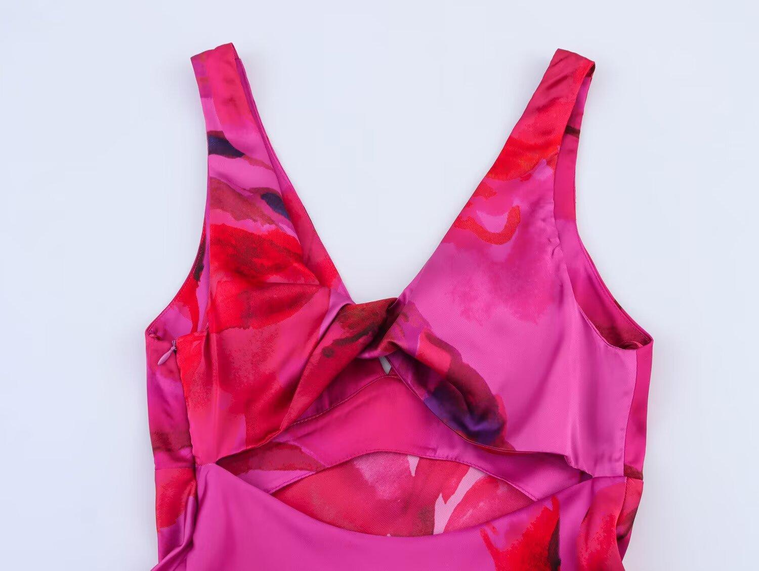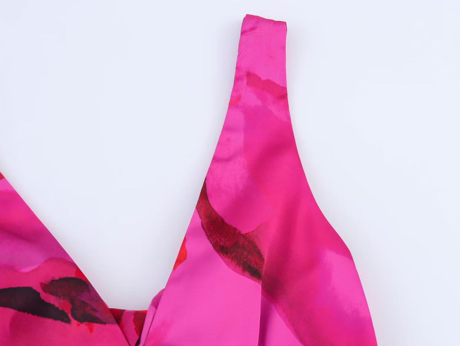 Exportación Transfronteriza Ropa de Mujer Primavera y Verano 2025 Vestido de Tirantes Estampado Plisado sin Espalda con Cuello en V Europeo y Americano para Mujer D6245539