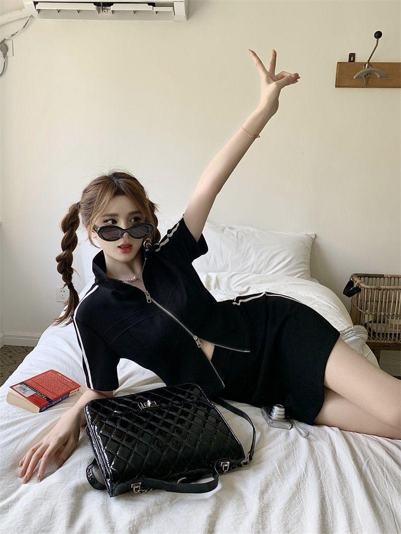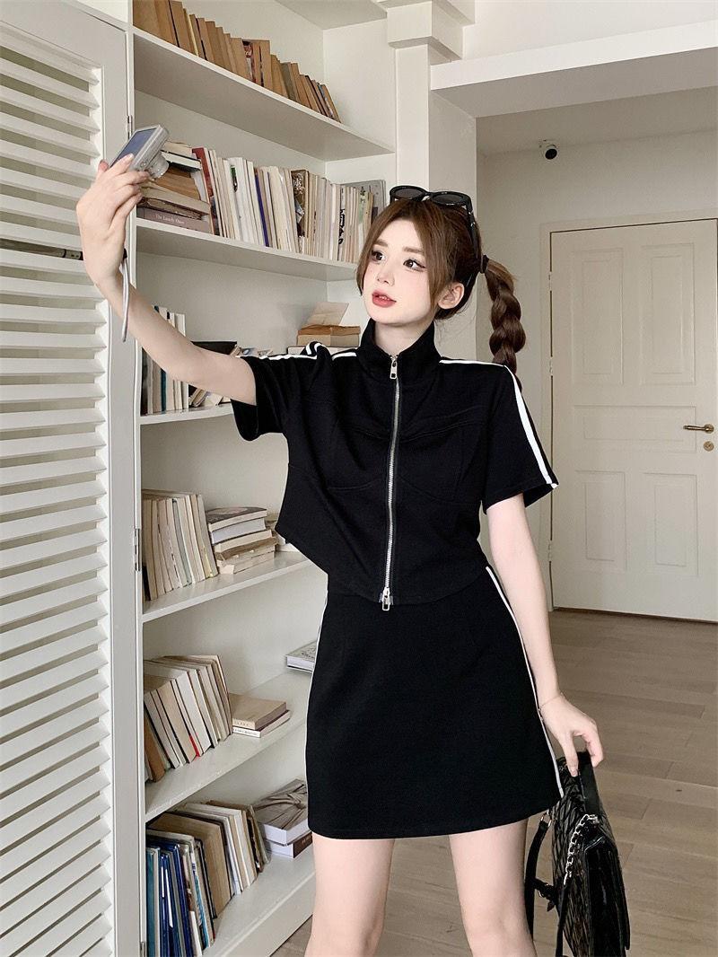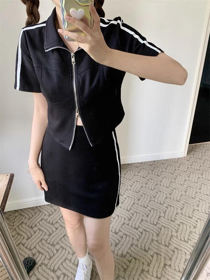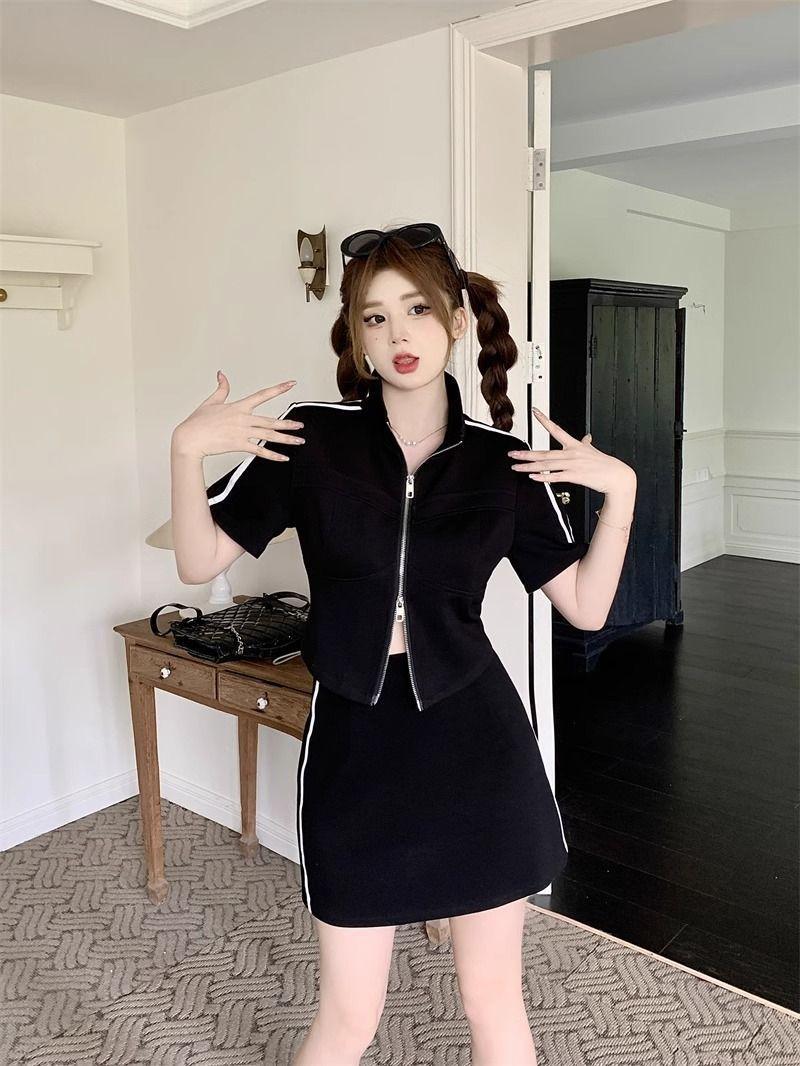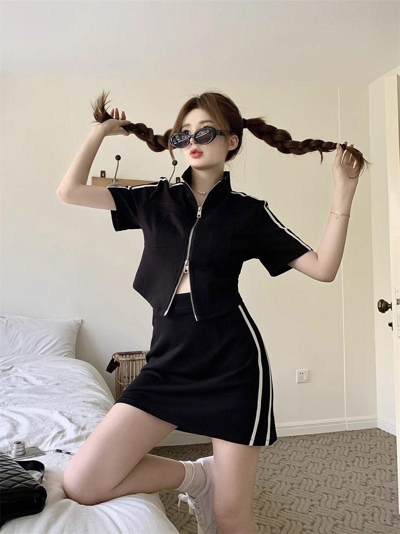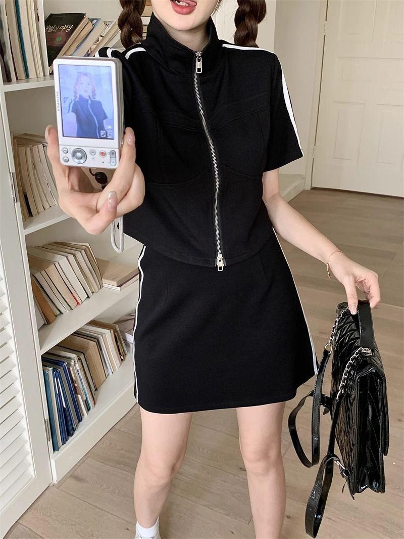 2025 Nuevo Verano Nuevo Estilo Cremallera Estilo Coreano Sentido del Diseño Falda Corta Moda Casual Top Dos Piezas Trendy